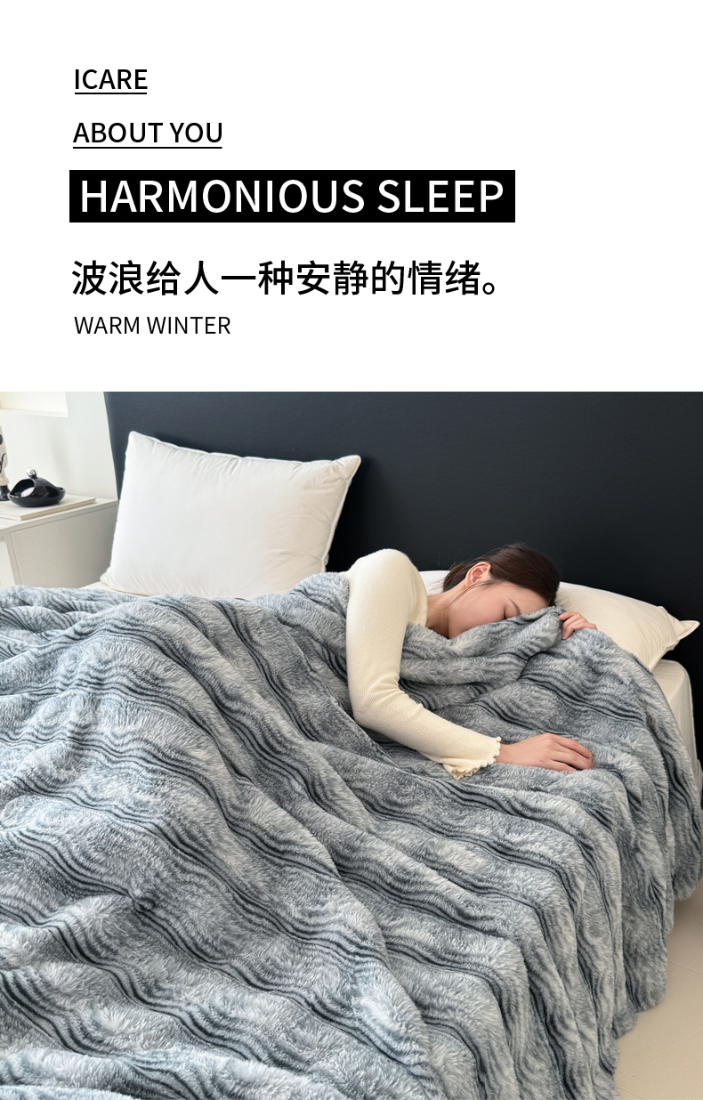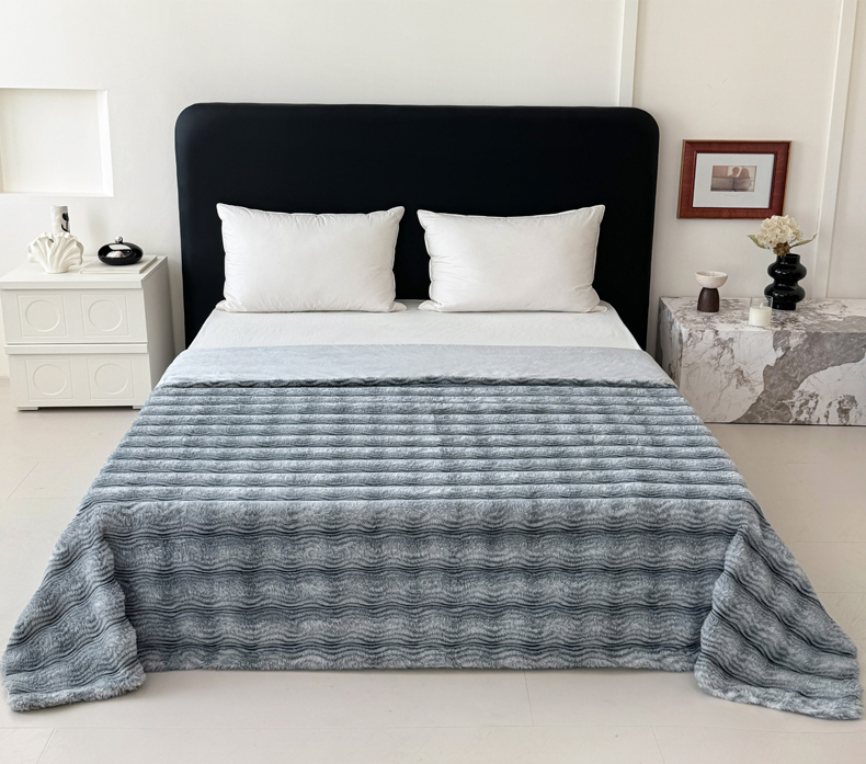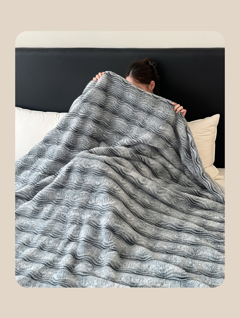 丹本家纺 2025新款加厚大兔毛牛奶绒多功能盖毯毛毯毯子 波浪-银灰