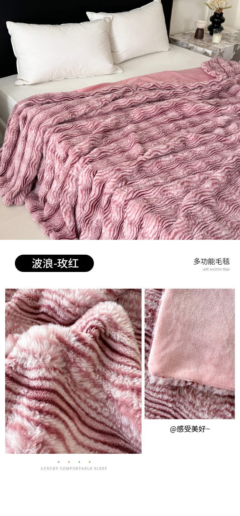 (总)丹本家纺 2025新款加厚大兔毛牛奶绒多功能盖毯毛毯毯子,波浪-灰,波浪-咖,波浪-玫红,波浪-驼,波浪-银灰,组合