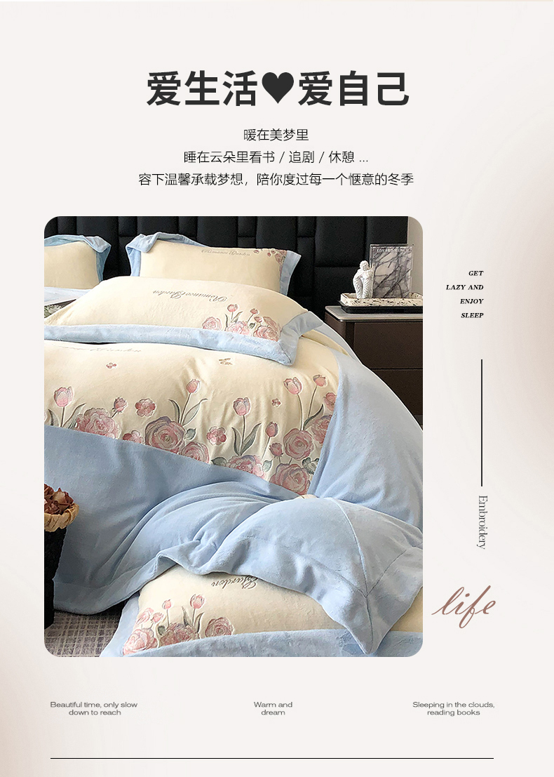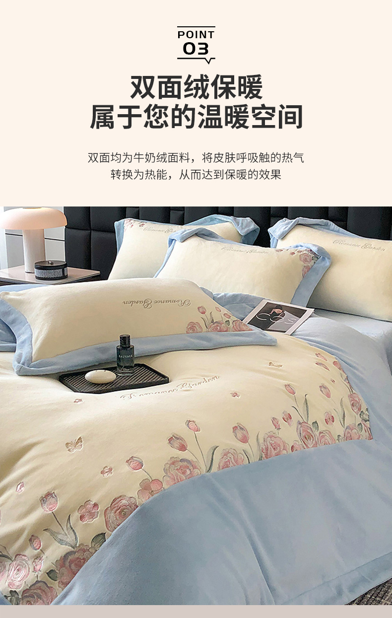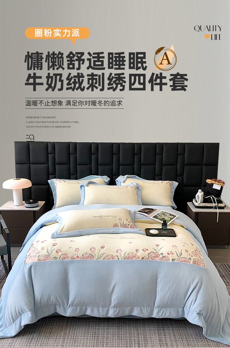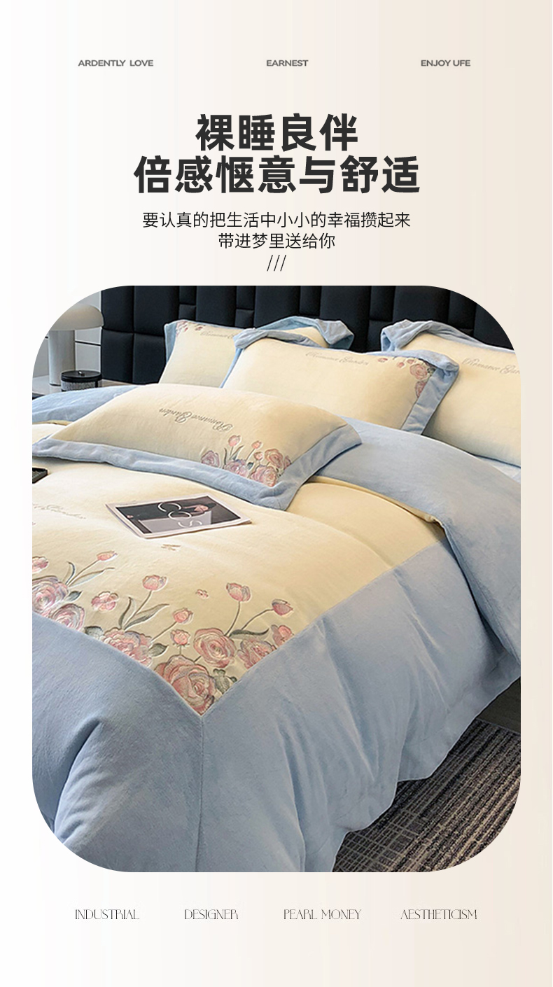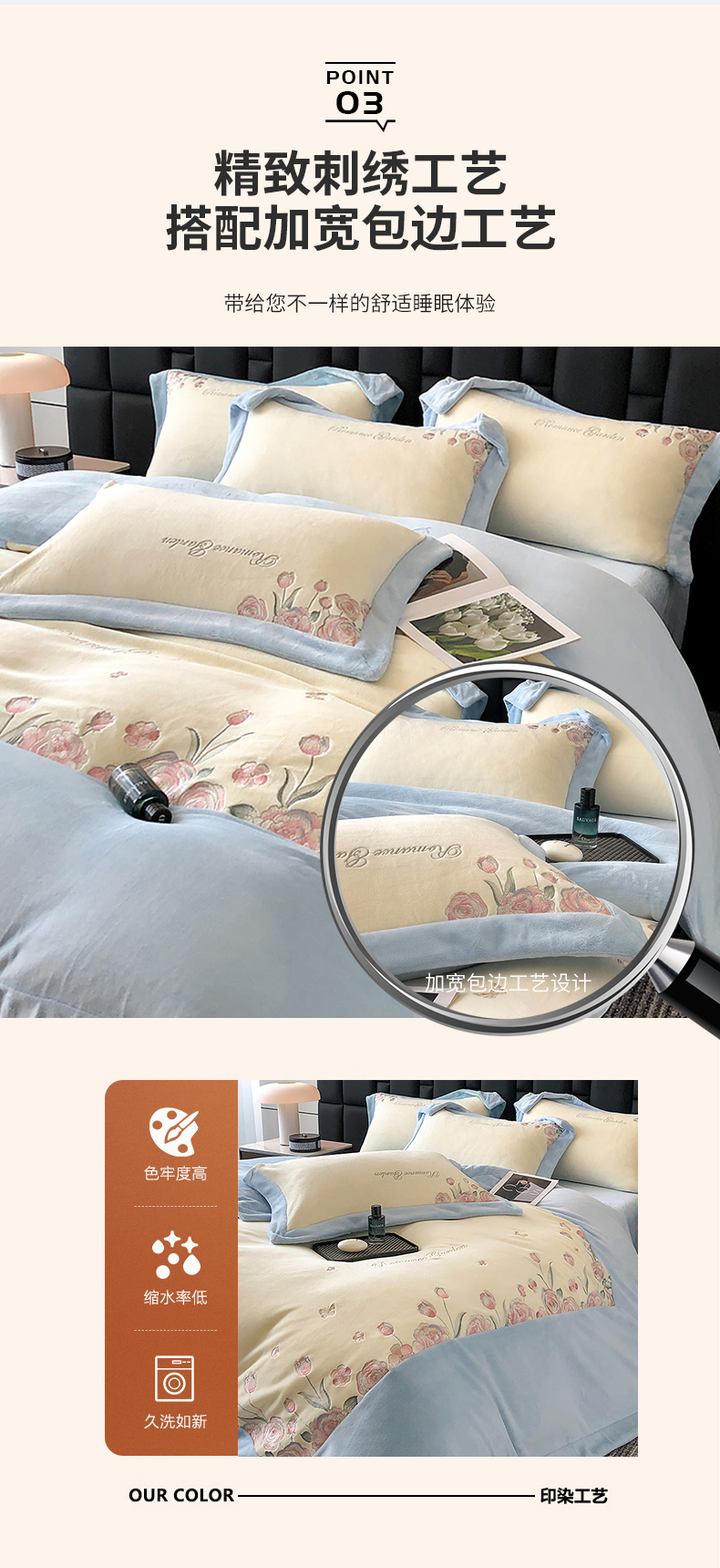 (总)家居1号家纺 2025新款230克A类牛奶绒双拼刺绣四件套-兰黛(控价券后不得低于238元 会员优惠10元),兰黛-浅绿,兰黛-少女粉,兰黛-温馨蓝,兰黛-紫豆沙