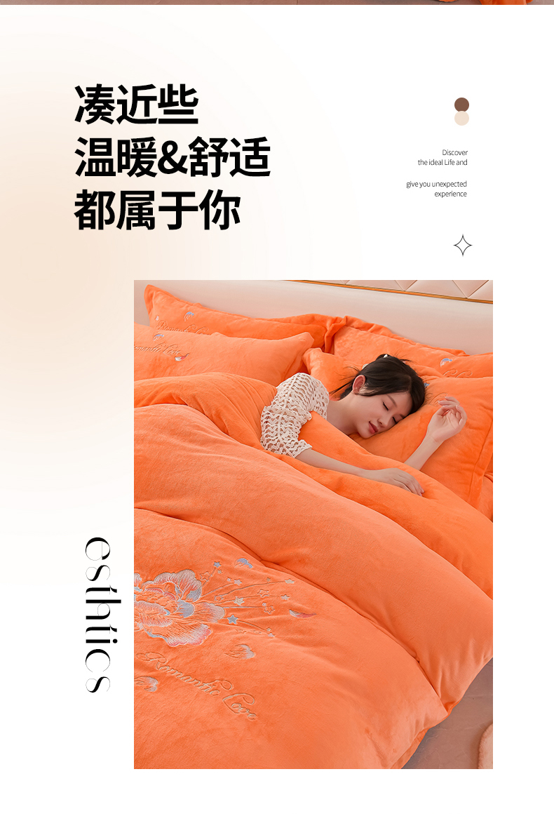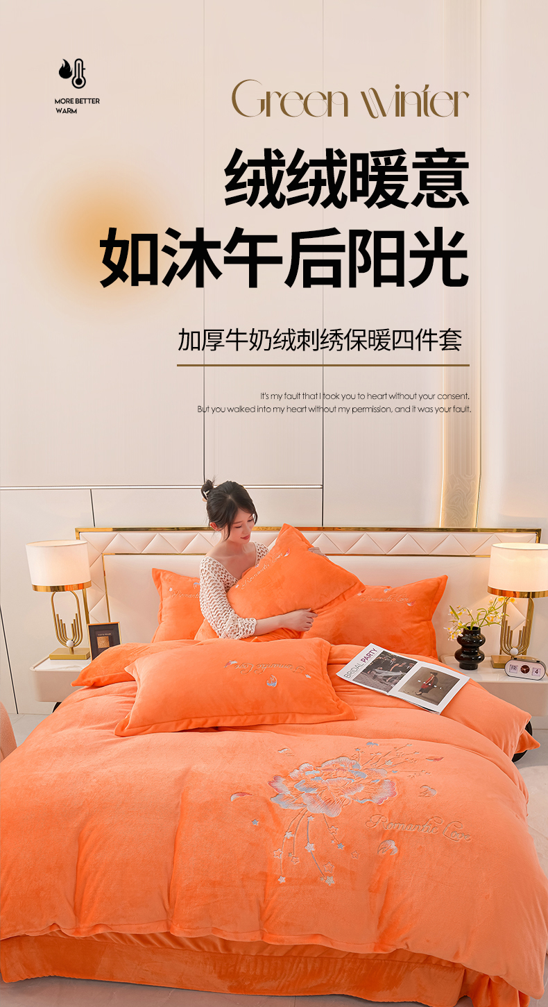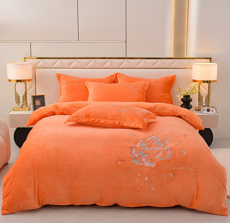 商品名称:绒小宣 2025新款加厚牛奶绒刺绣花保暖四件套-花开富贵提供买家秀 花开富贵-橙色