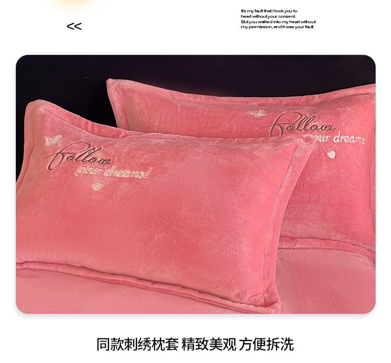 绒小宣 2025新款高克重牛奶绒刺绣四件套 蝶恋花粉,蝶恋花-粉