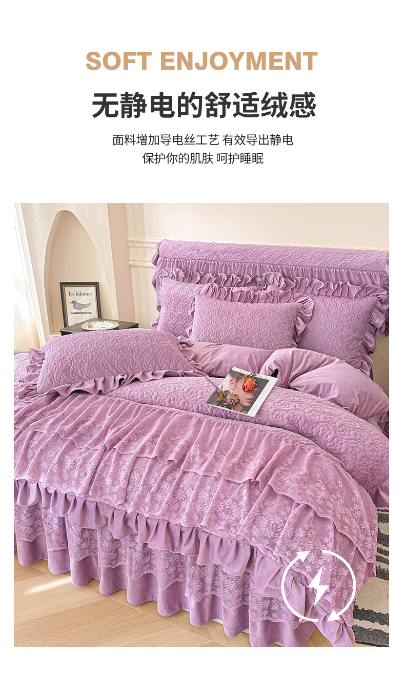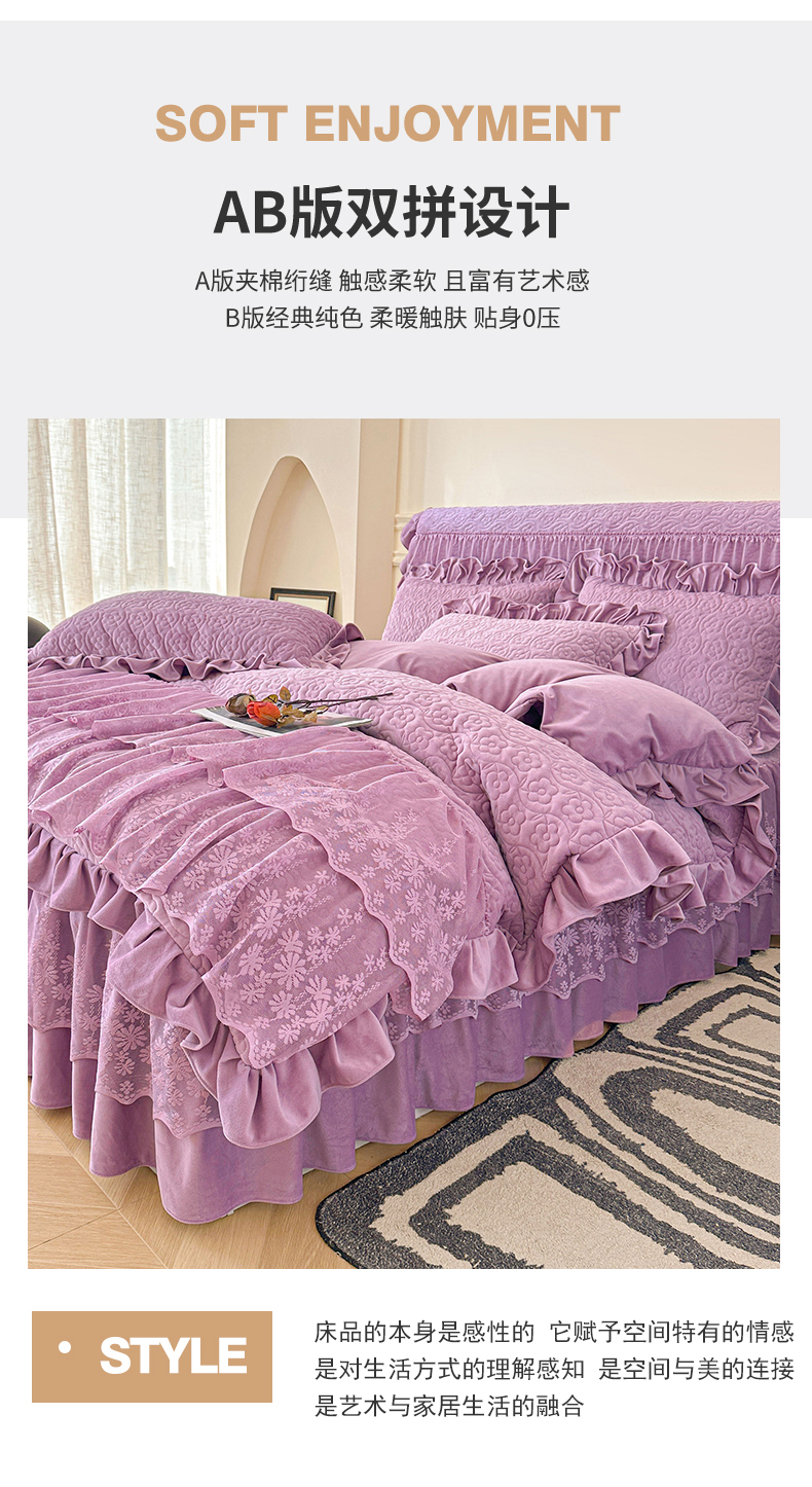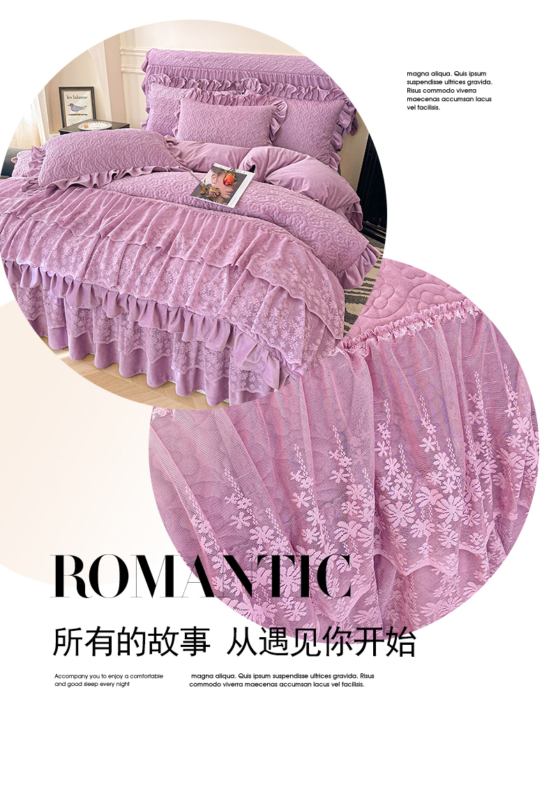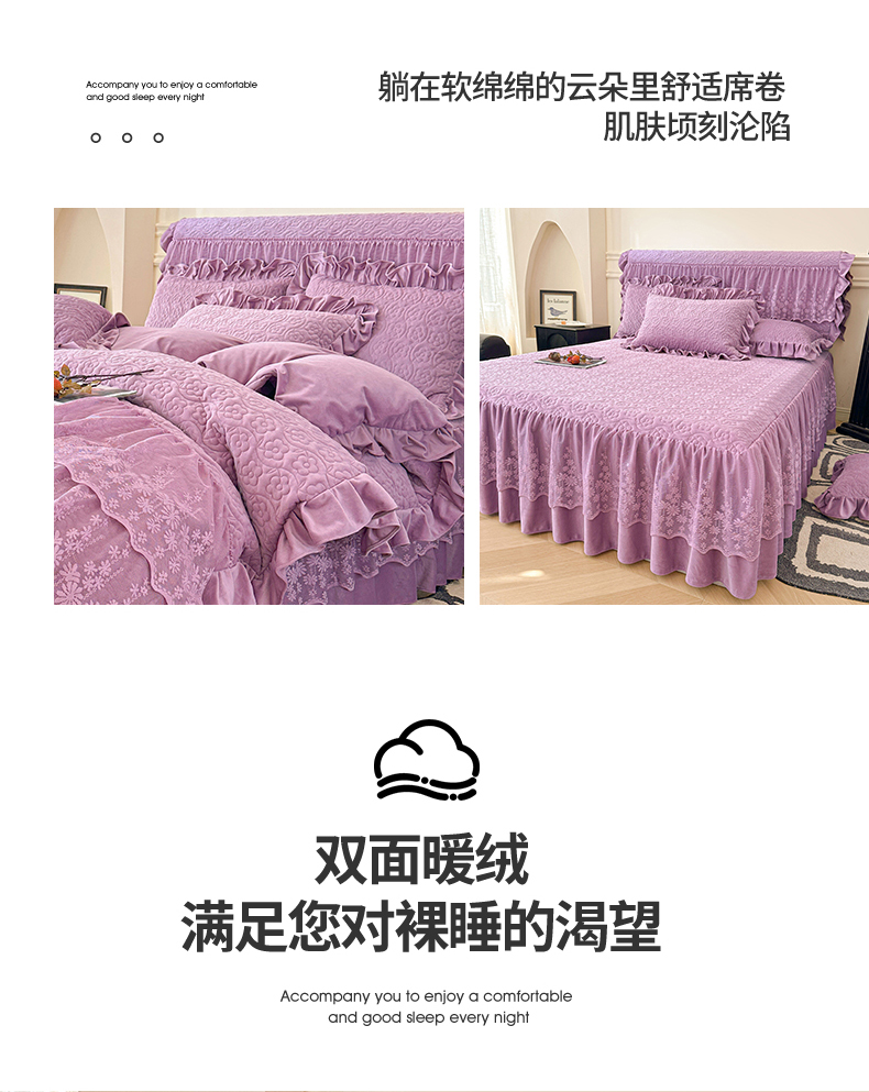 当前位置: 91家纺网 > 商品网购 > 床品套件 > 四件套 > 其它四件套 > 情恒家纺 2025新款宝宝绒夹棉床裙三四五件套-玫瑰盛典 玫瑰盛典 优雅紫