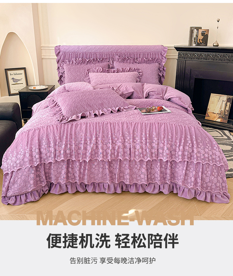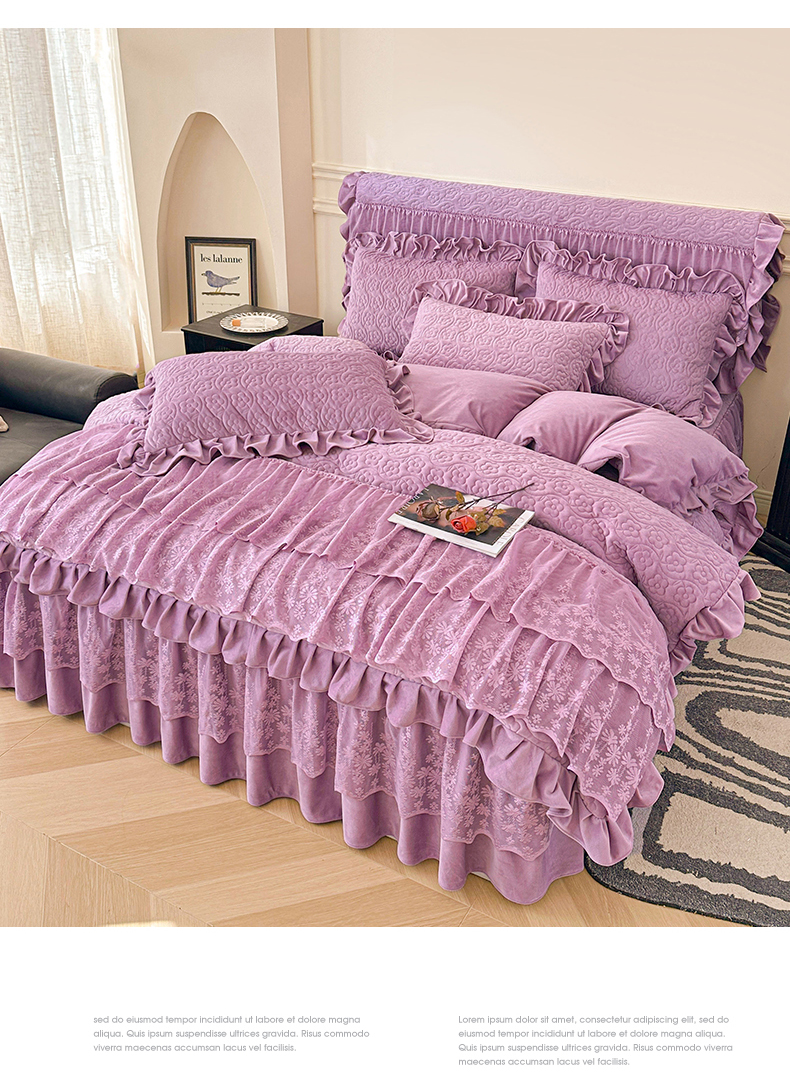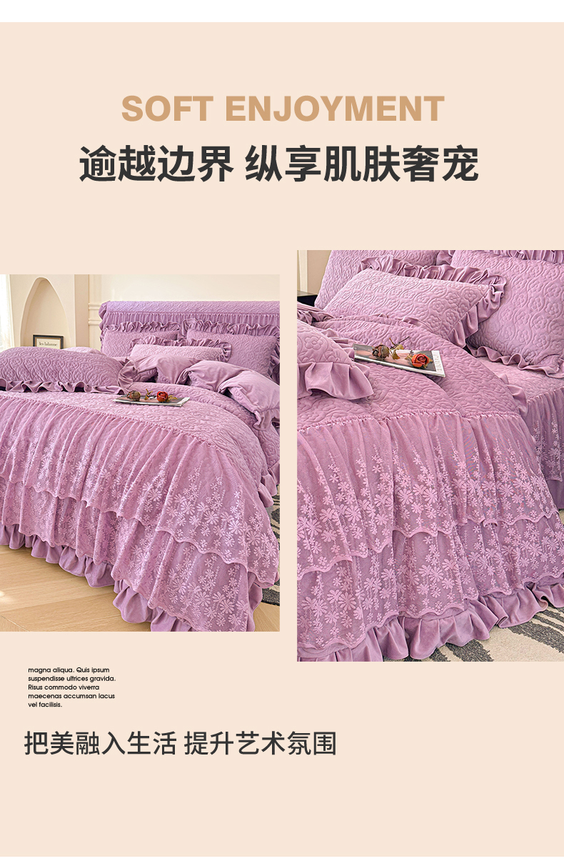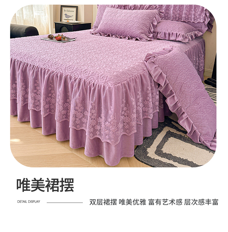 当前位置: 91家纺网 > 商品网购 > 床品套件 > 四件套 > 其它四件套 > 情恒家纺 2025新款宝宝绒夹棉床裙三四五件套-玫瑰盛典 玫瑰盛典 优雅紫