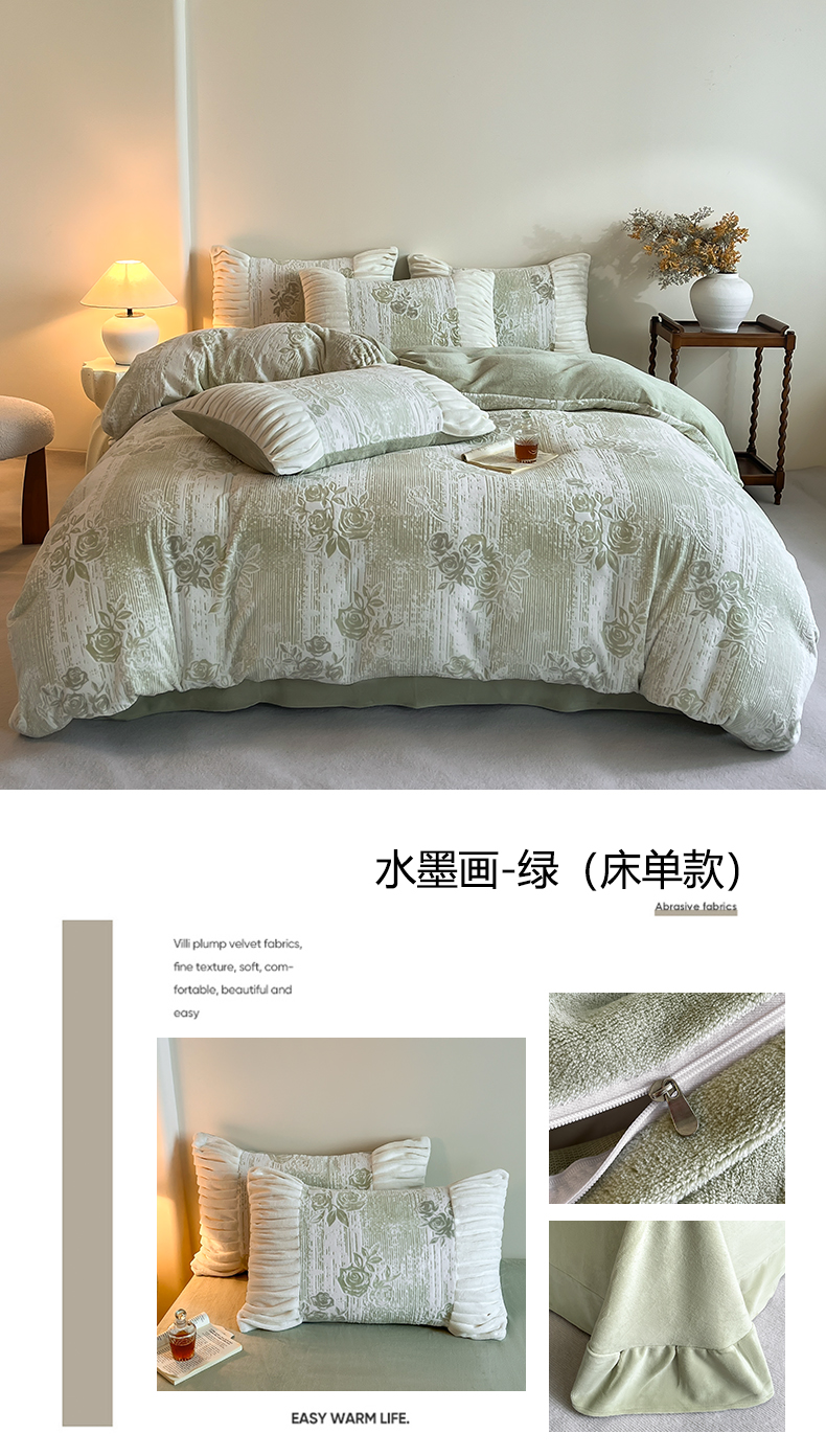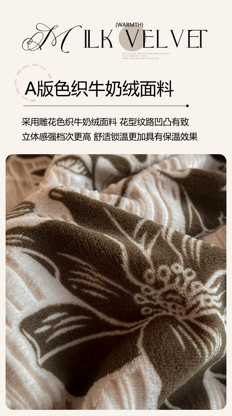 (总)子曰 2025新款雕花加厚牛奶绒宽边工艺款四件套-小香风,小香风-咖,小香风-粉,小香风-绿,小香风-米白,小香风-紫