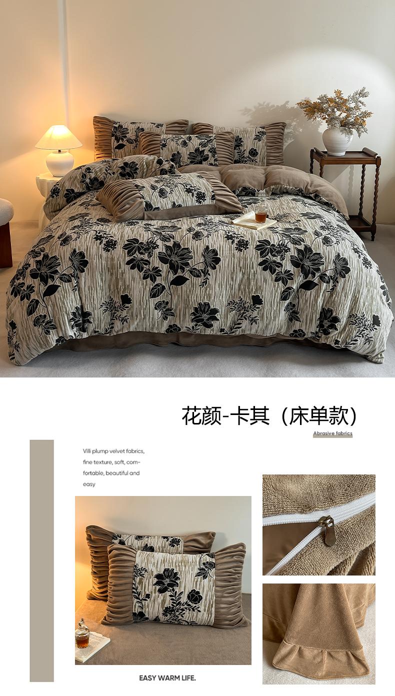 (总)子曰 2025新款浮雕轻法式复古ins小清新风雕花牛奶绒四件套,花颜-棕,花颜-卡其,花韵-兰,梦里蝴蝶-卡其,水墨画-绿,樱桃之恋-粉,樱桃之恋-兰,醉蝴蝶-粉,醉蝴蝶-灰,醉蝴蝶-咖