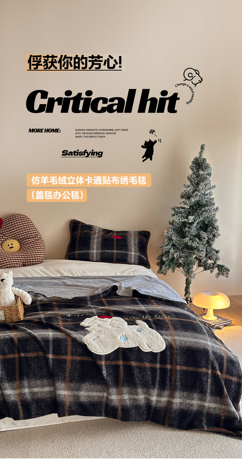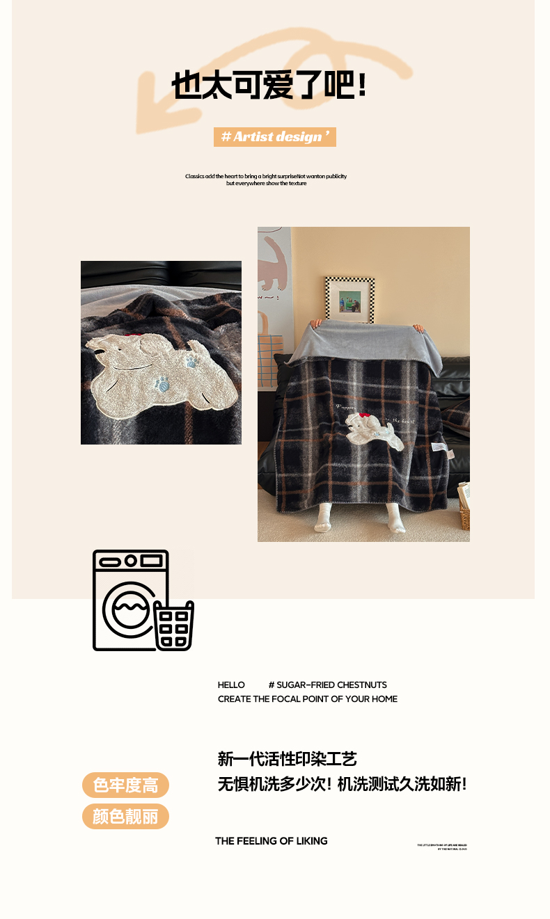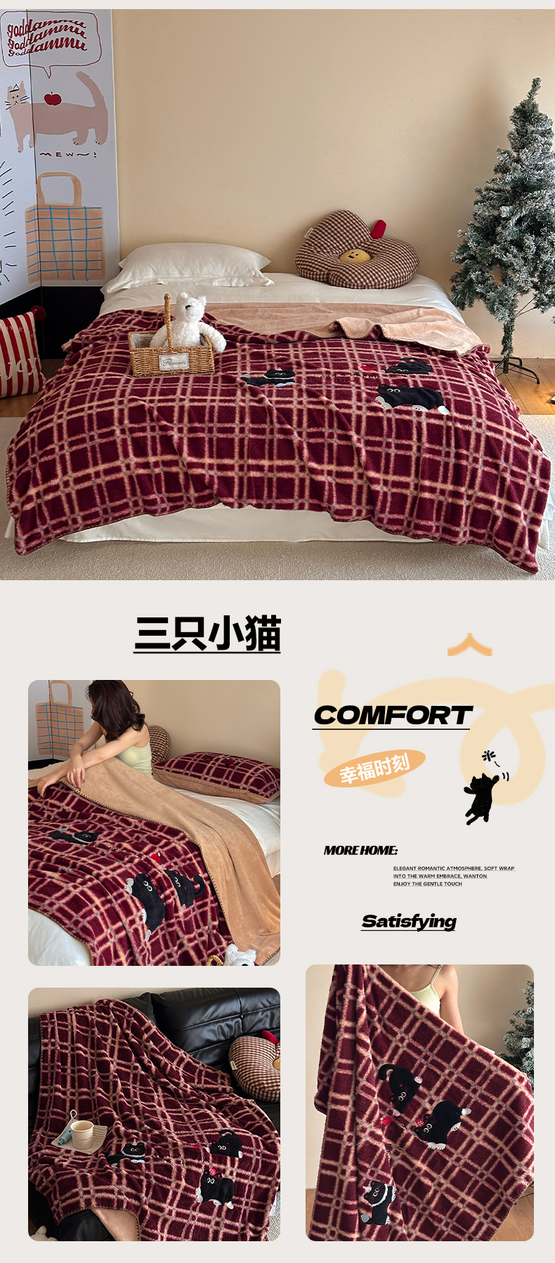 (总)宇航家纺 2025新款美拉德色系仿羊毛绒牛奶绒毛毯盖毯办公毯,盖毯-煤球小猫,盖毯-呆萌猫咪,盖毯-福宝小狗,盖毯-三只小猫