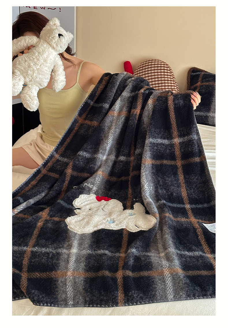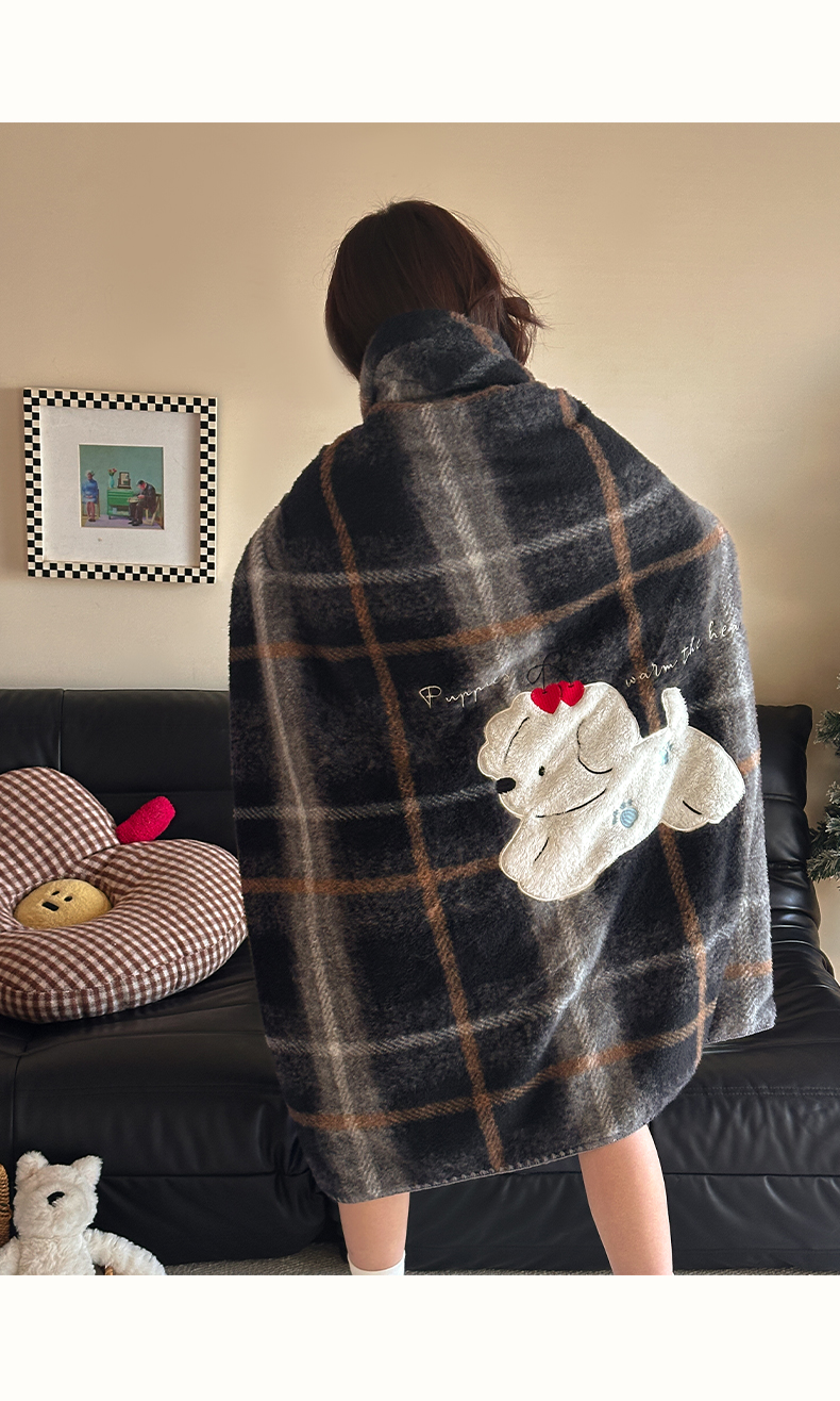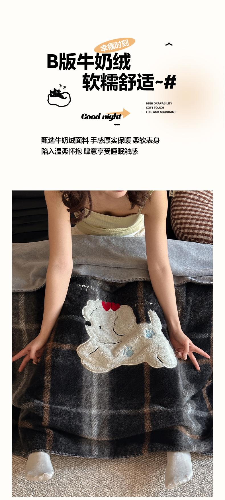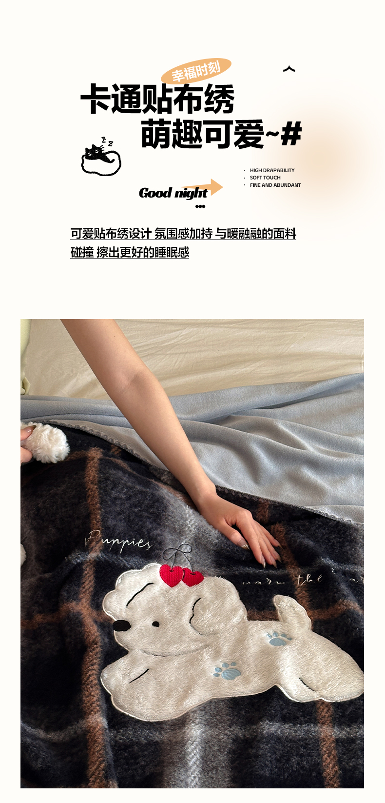 宇航家纺 2025新款美拉德色系仿羊毛绒牛奶绒毛毯盖毯办公毯 盖毯-福宝小狗