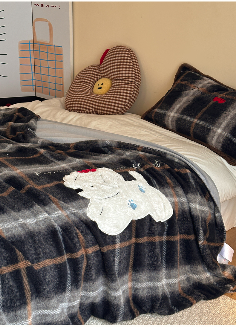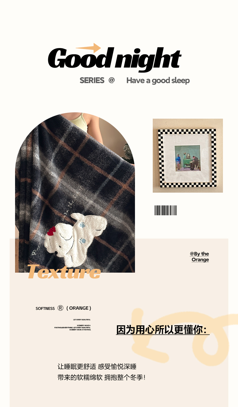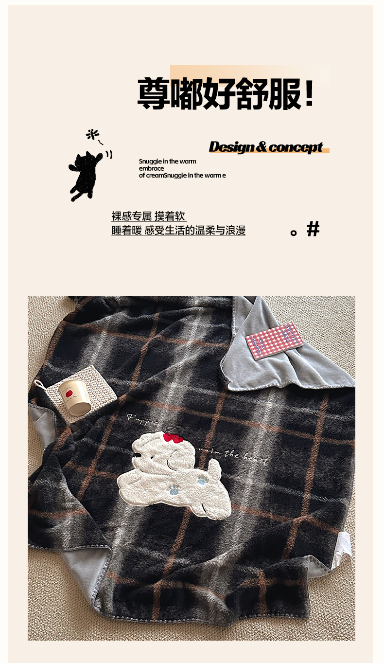 商品名称:宇航家纺 2025新款美拉德色系仿羊毛绒牛奶绒毛毯盖毯办公毯 盖毯-福宝小狗