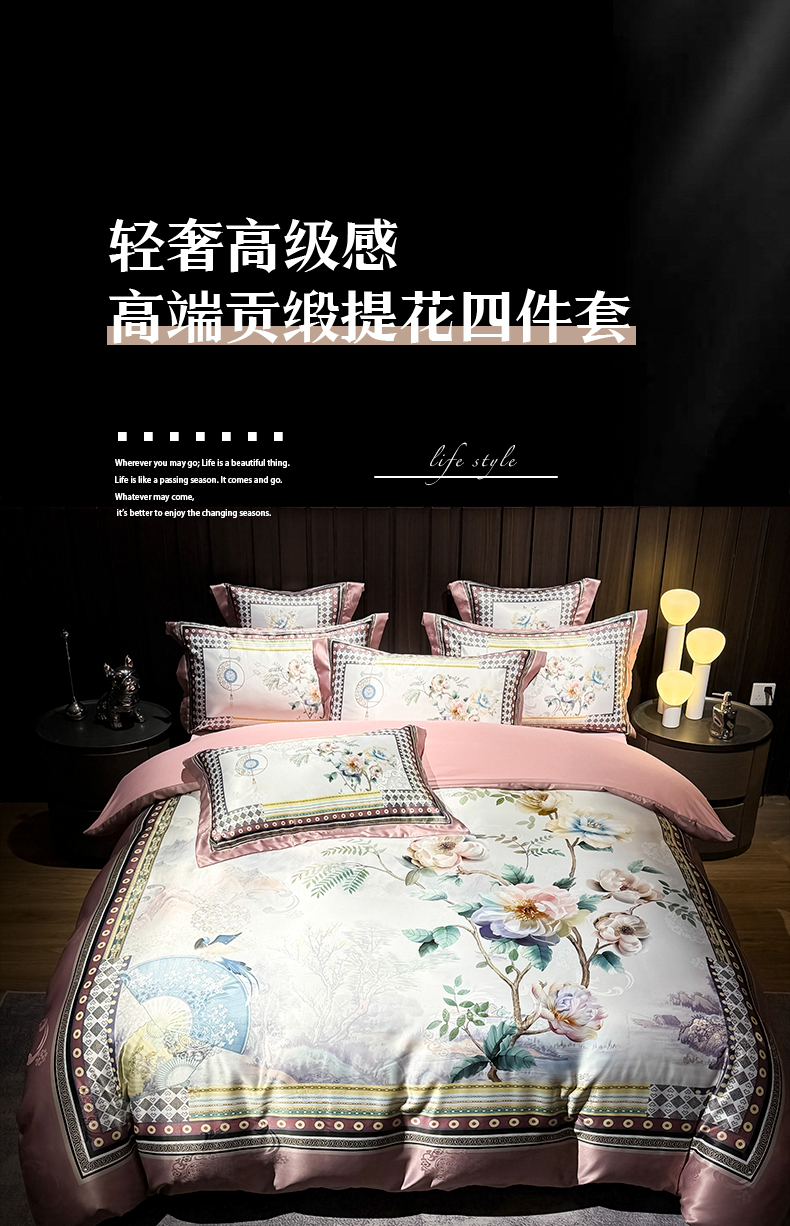 (总)七夜居 2025新款直播爆款欧式轻奢贡缎提花加数码印花磨毛提花四件套(价格咨询商家),爱丽丝,繁花梦,花开满园,花漾海,满庭芳,墨染花韵,盛世花颜,水墨江南,晓荷意境,雅典娜,呦呦鹿鸣,羽花共舞,郁香花园,琉璃幻境,琉璃幻境-粉,繁花似锦
