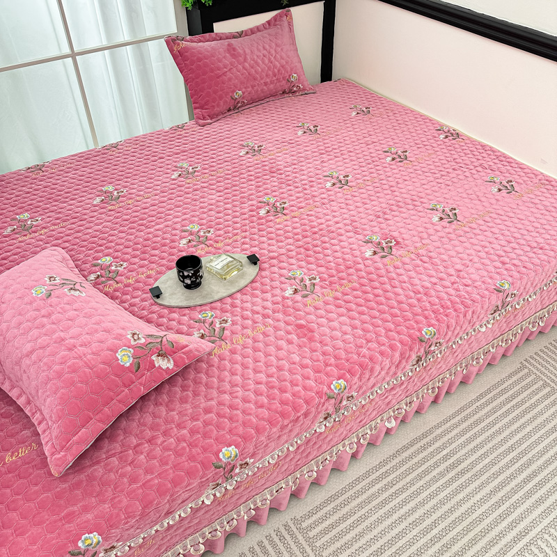 (总)手艺人家纺 2025新款绗缝绣花HLK02-03炕床盖,HLK02粉,HLK02红,HLK02蓝,HLK02绿,HLK03粉,HLK03红,HLK03蓝,HLK03绿