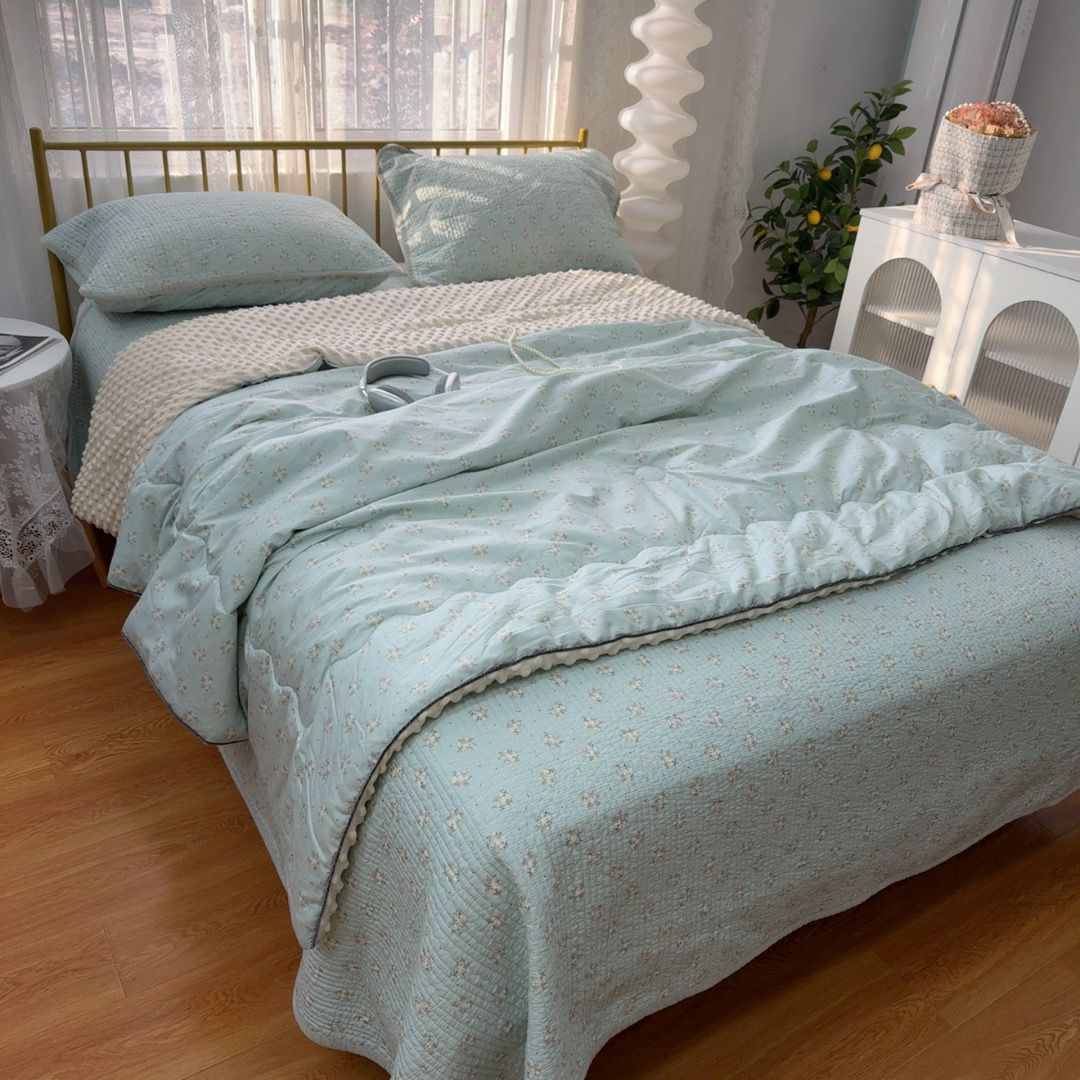 暖居 2026新款一面纯棉一面绒床盖+同款纯棉豆豆被跑量 森系绿野