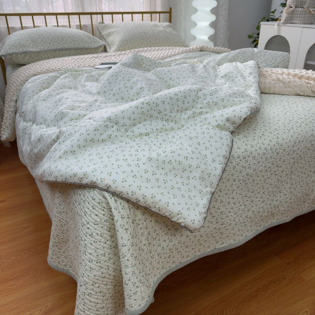 (总)暖居 2026新款一面纯棉一面绒床盖+同款纯棉豆豆被跑量,兰意,冰淇淋,绿芽,奶油波罗,森系绿野,疏影,樱桃密果,黑巧豹纹,小花,星月