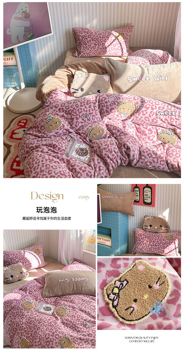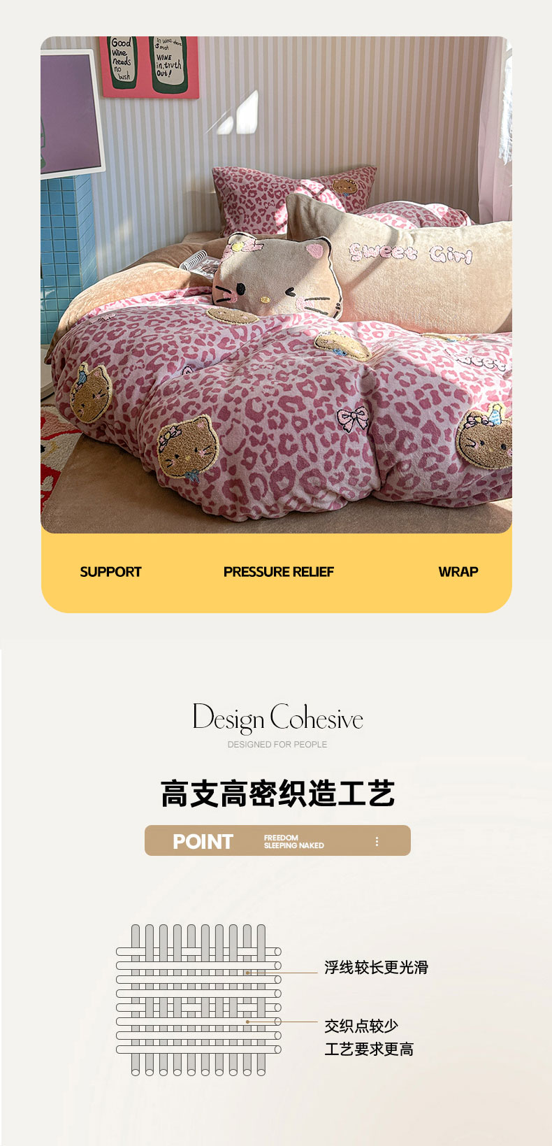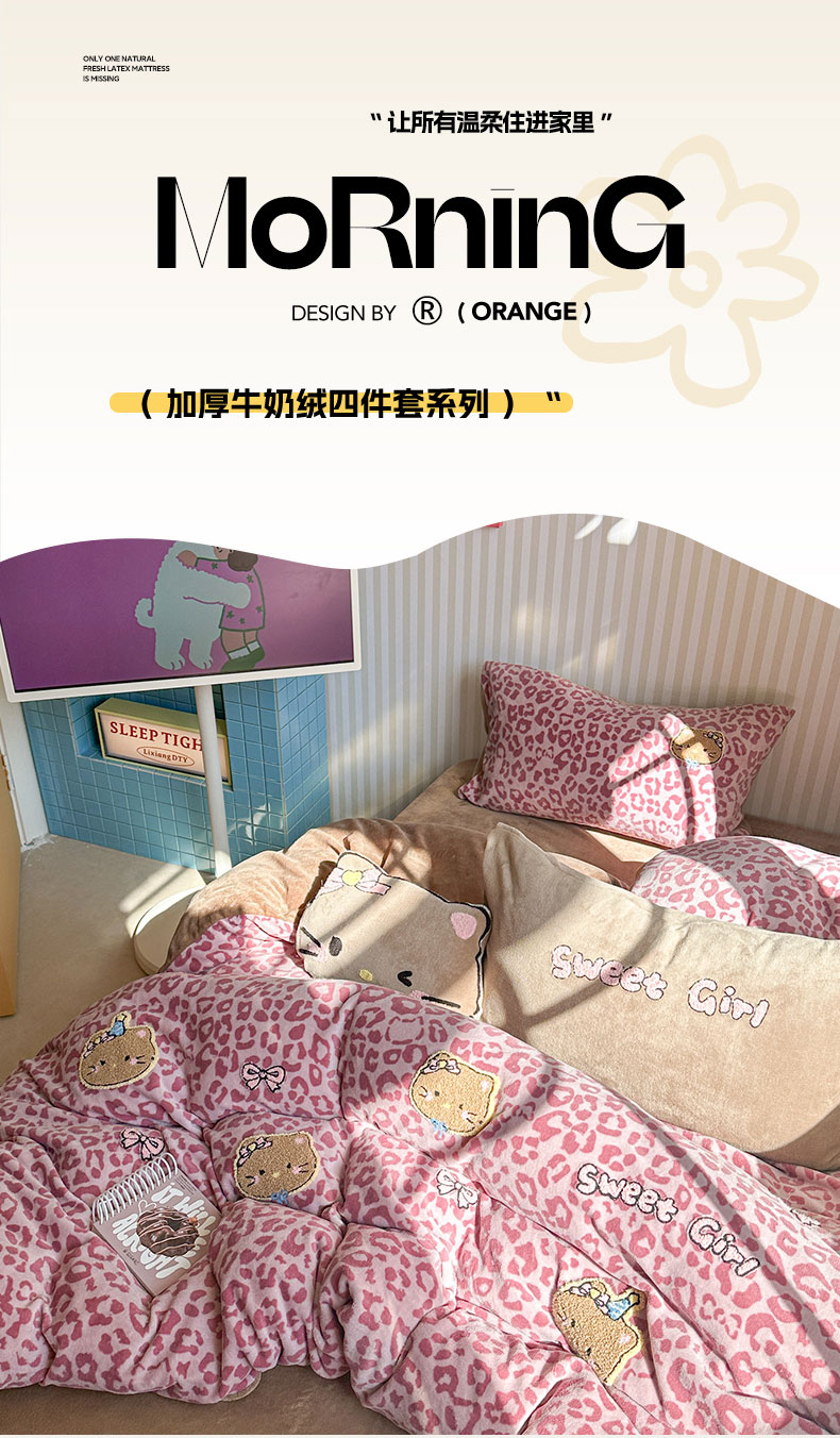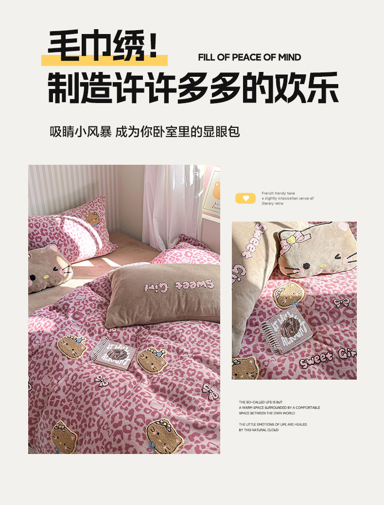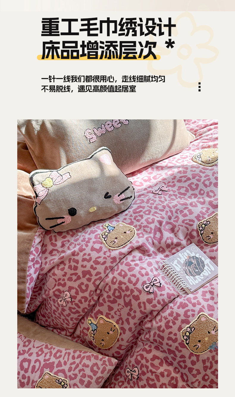 当前位置: 91家纺网 > 商品网购 > 床品套件 > 四件套 > 牛奶绒四件套 > 眠屿家纺 2025新款加厚牛奶绒毛巾绣蝴蝶猫四件套 猫咪多多-粉