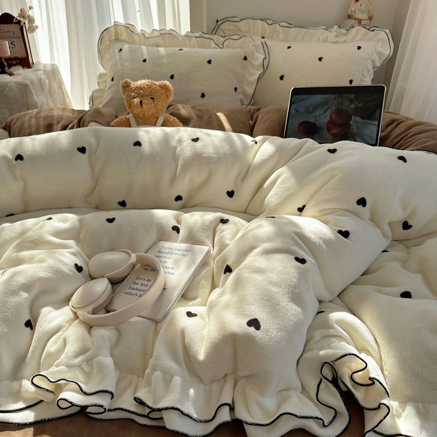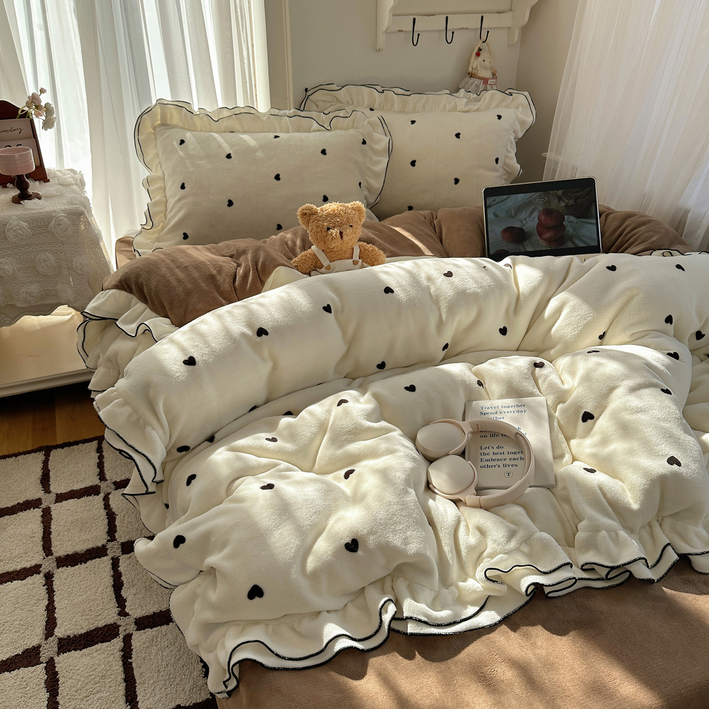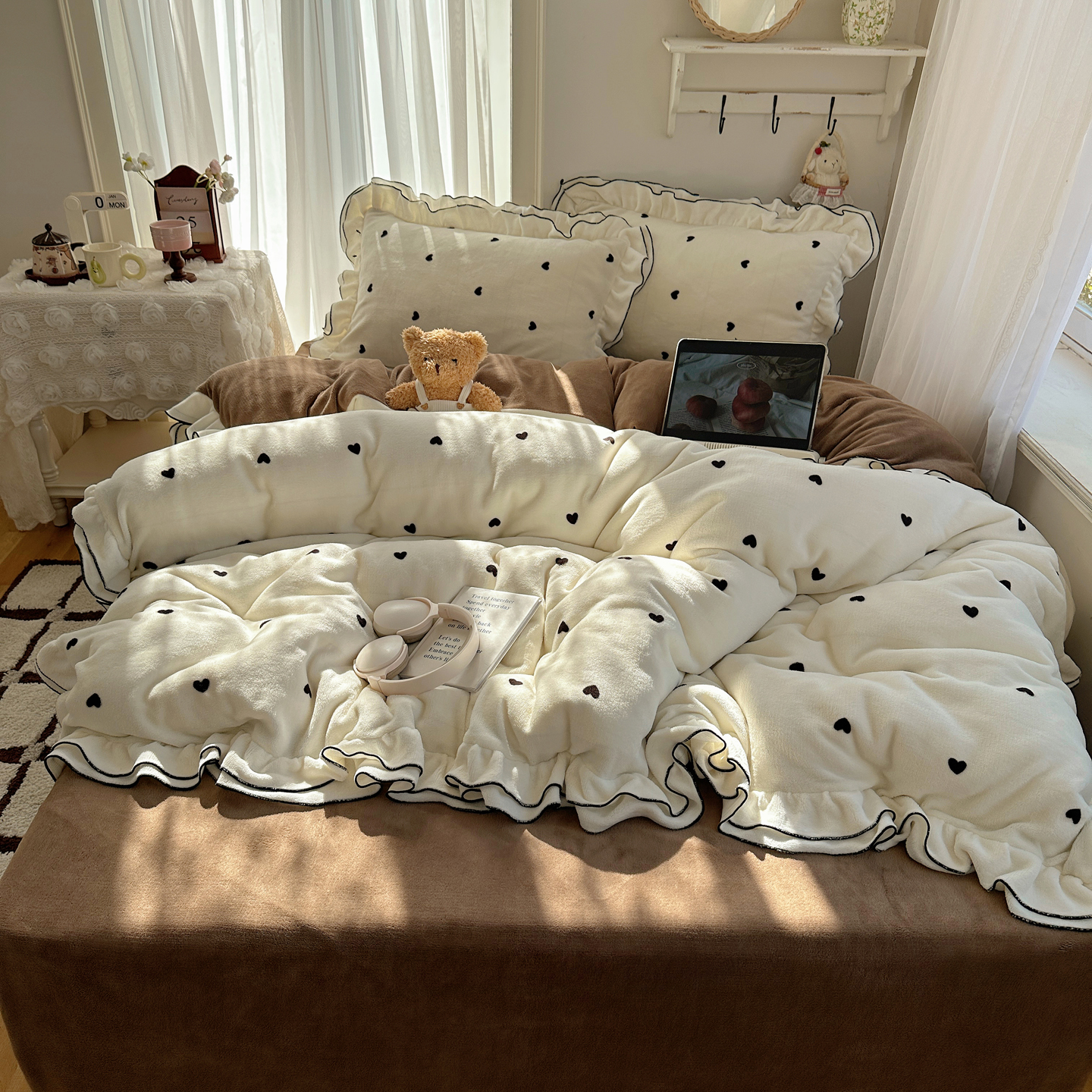 当前位置: 91家纺网 > 商品网购 > 床品套件 > 四件套 > 牛奶绒四件套 > 觅糖家纺 2025新款牛奶绒荷叶边小小系列四件套 小小爱心白