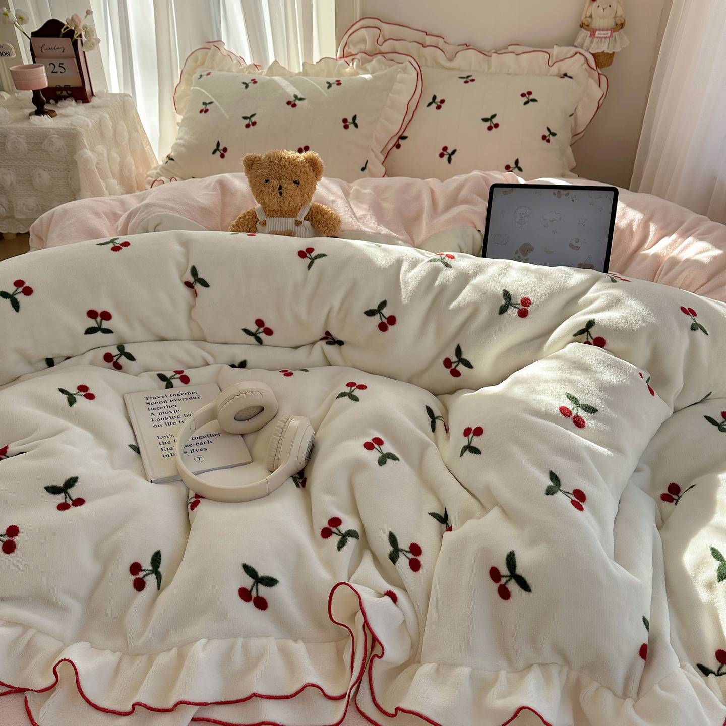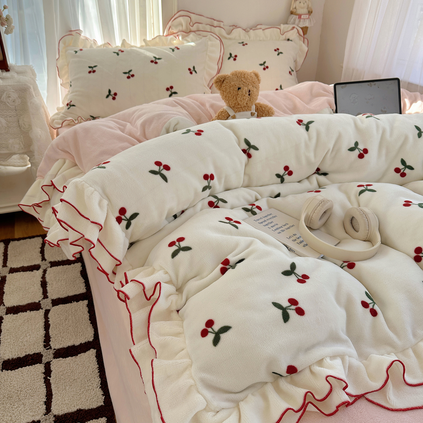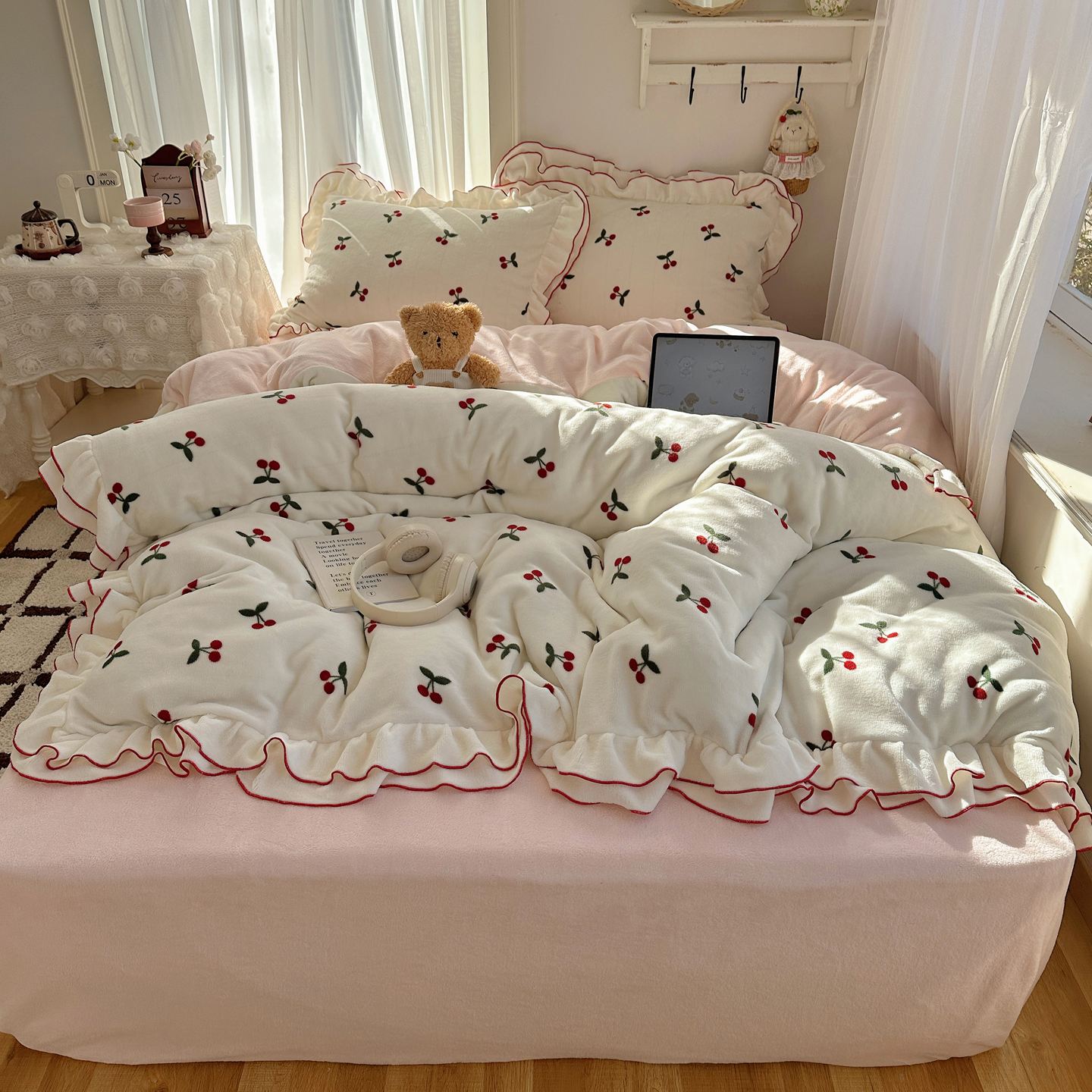 当前位置: 91家纺网 > 商品网购 > 床品套件 > 四件套 > 牛奶绒四件套 > 觅糖家纺 2025新款牛奶绒荷叶边小小系列四件套 小小爱心白