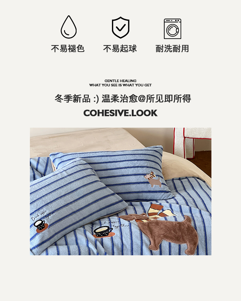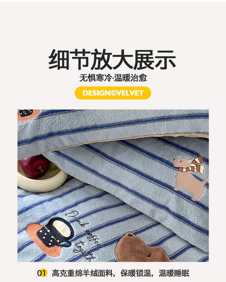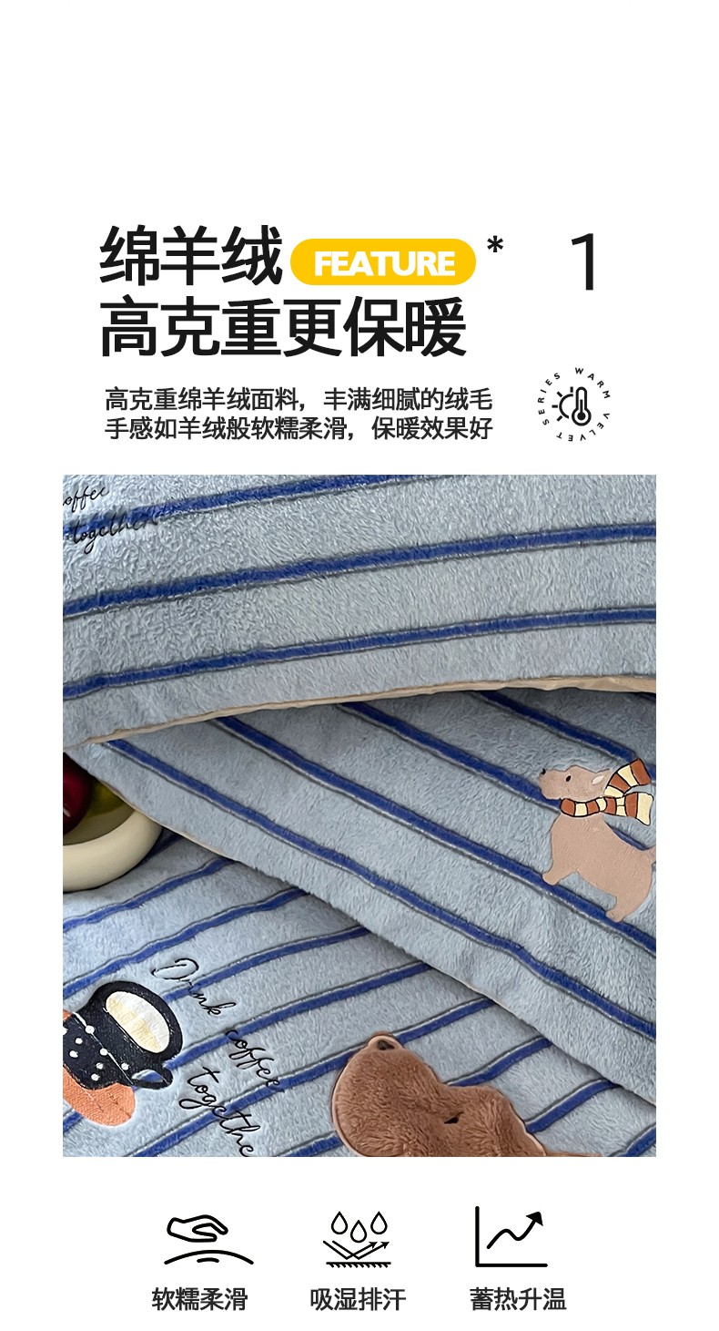 (总)桃子家居 2025新款A类高级仿生绵羊绒兔毛贴布绣刺绣工艺卡通少女加厚牛奶绒系列四件套,绵羊绒-冬日熊,绵羊绒-狗狗伙伴,绵羊绒-蓝条咖啡狗,绵羊绒-毛球猫咪,绵羊绒-圣诞小狗,绵羊绒-星星人