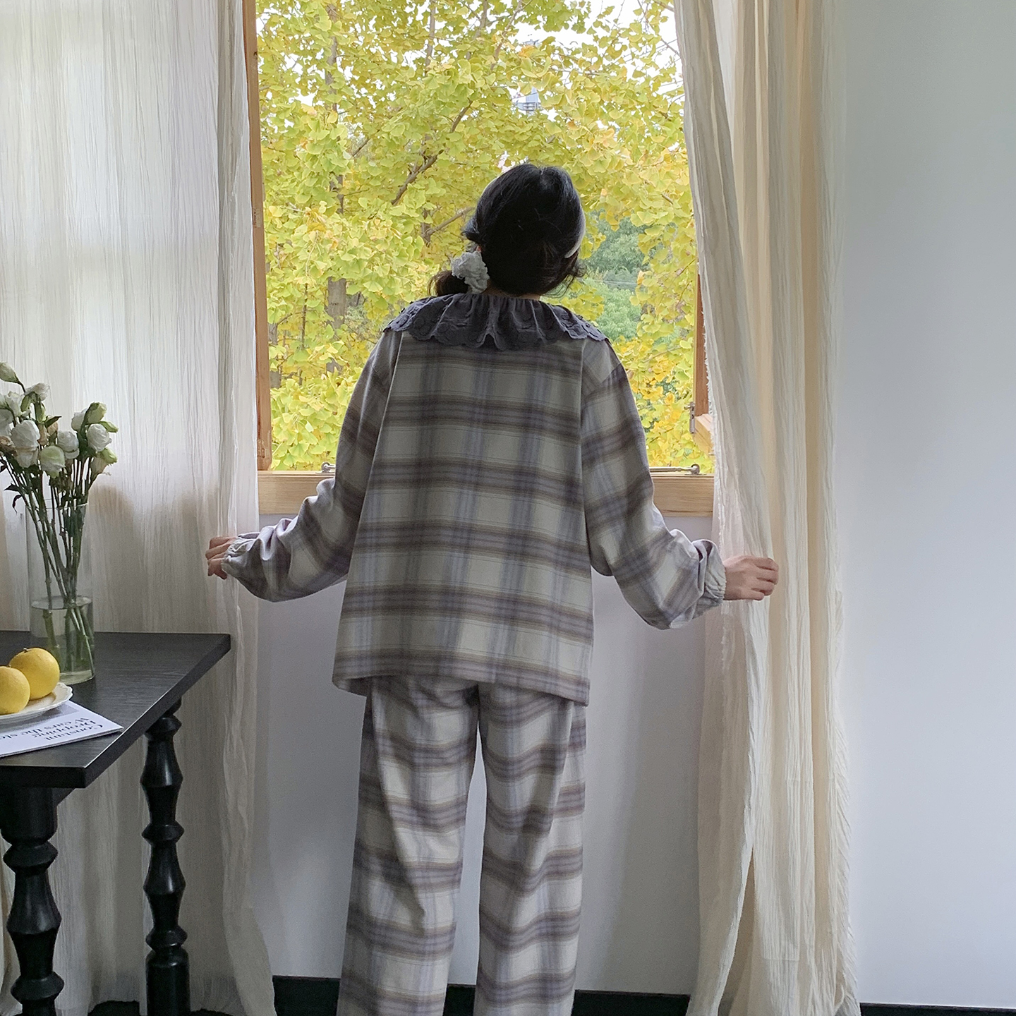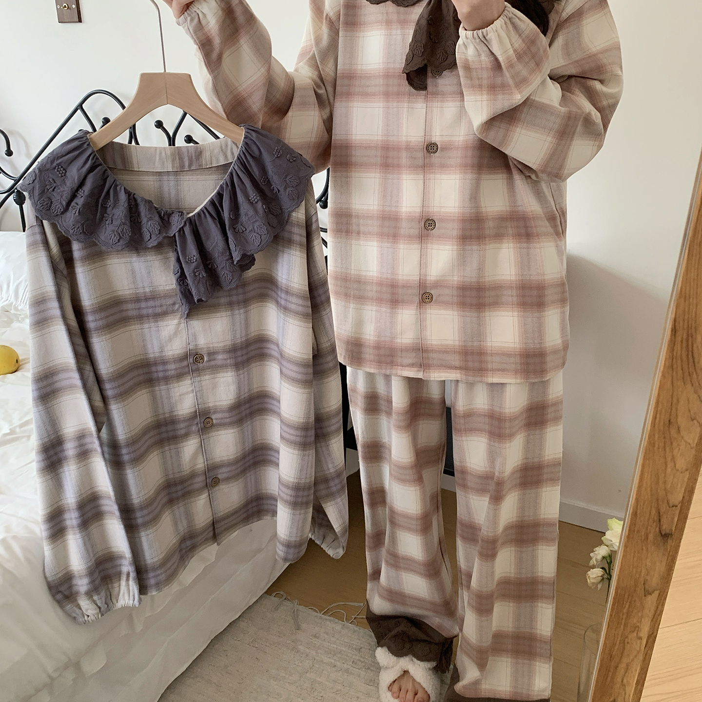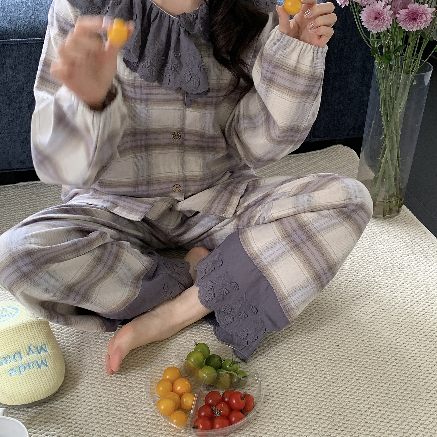 商品名称:多乐娜 2025新款纯棉色织法兰绒睡衣家居服双股纱线双面抓剪毛磨毛工艺 (定制定染面料非普货) 晴空色