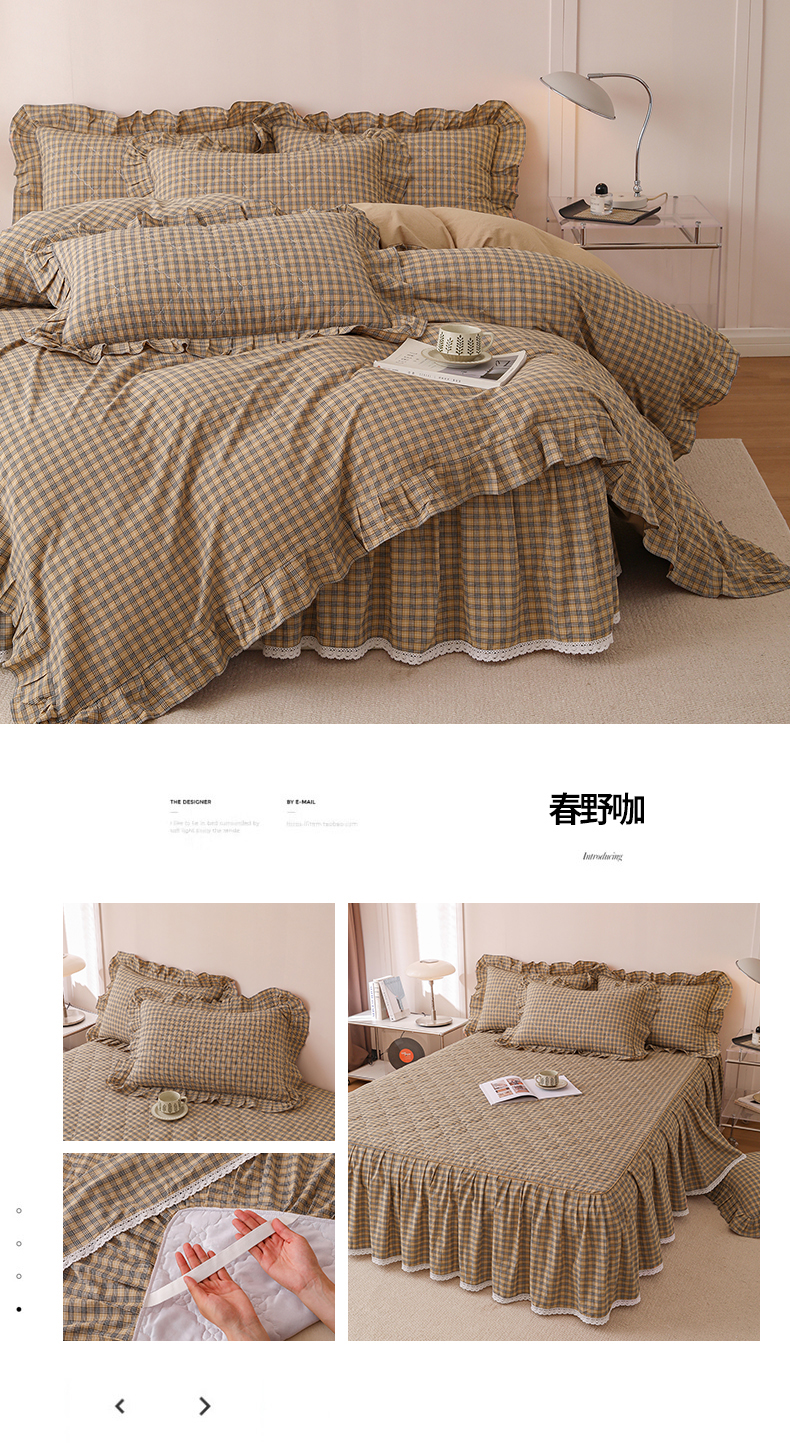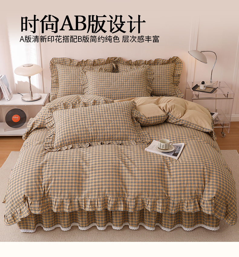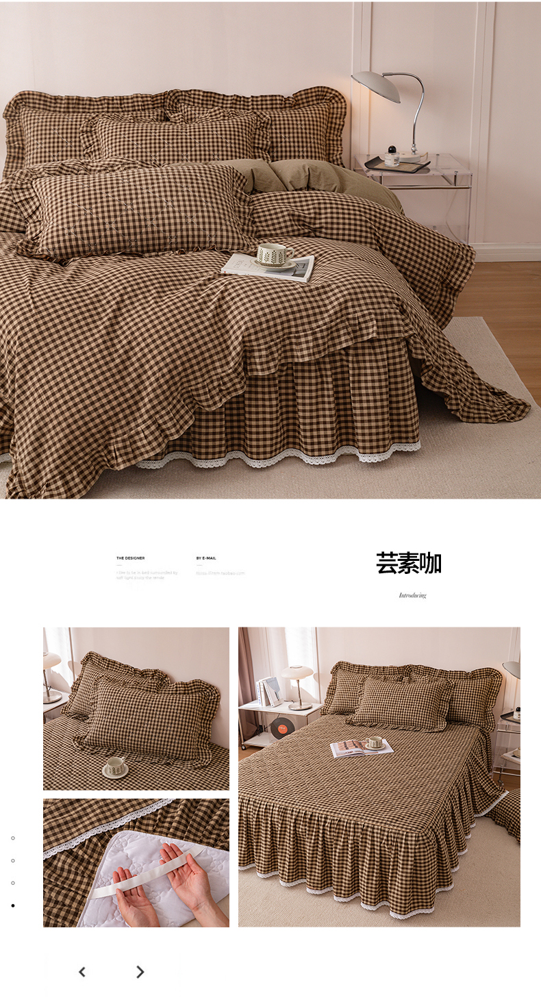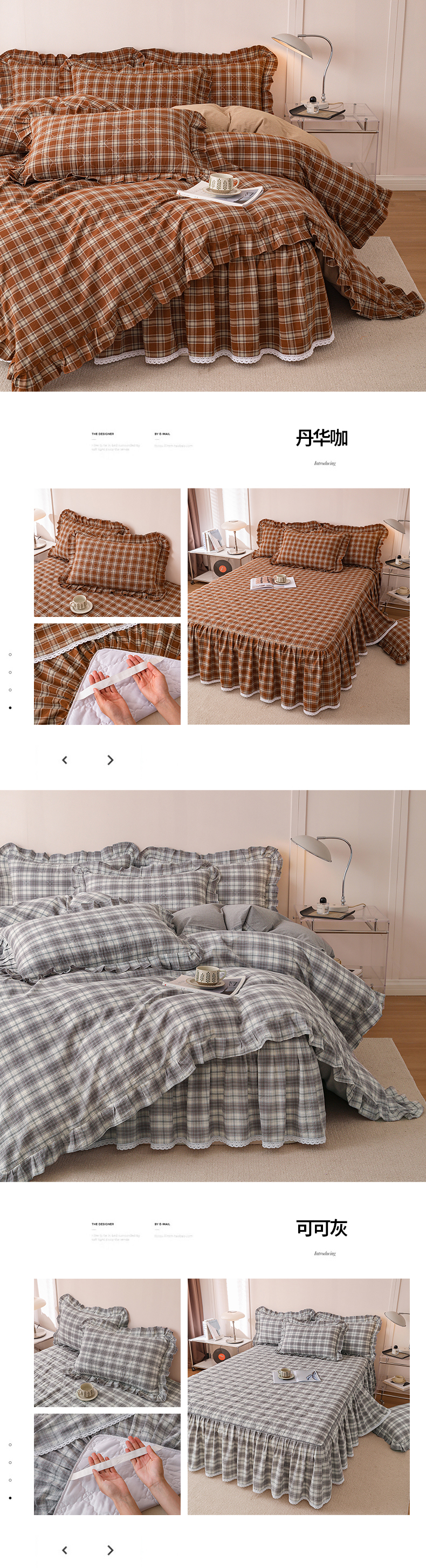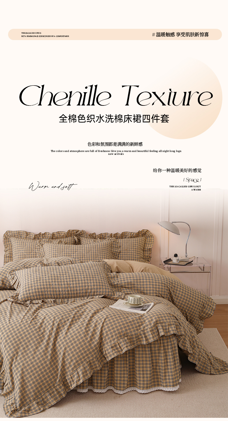 (总)依蔓羽 2026新款全棉纯棉色织水洗米床裙三件套单品床裙单件床裙,春野咖,丹华咖,粉咖大格,灰咖大格,橘简格,可可灰,木槿黑,沐风粉,沐风米,英伦橙,映像格灰,映像格蓝,映像格绿,芸素红,芸素咖