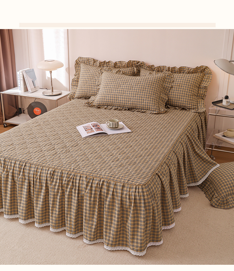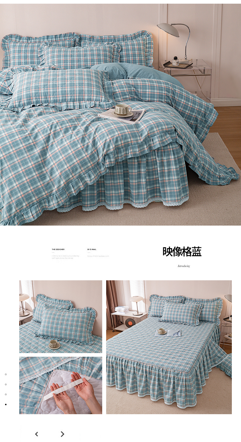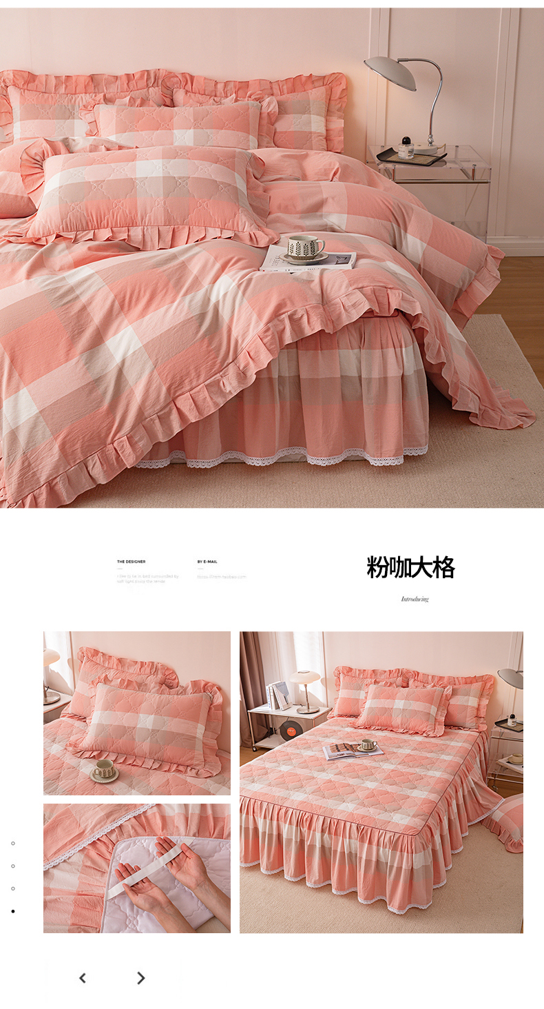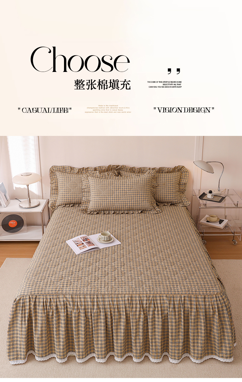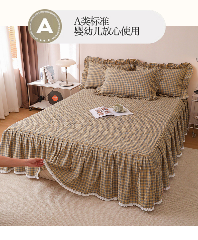 商品名称:(总)依蔓羽 2026年新款A类全棉色织水洗棉夹棉绗缝床裙四件套米朵【专注面料品质和做工】 100%全棉精梳紧密纺色织水洗棉面料,柔软舒适,退货率低(并非市面上粗糙气流纺面 料)