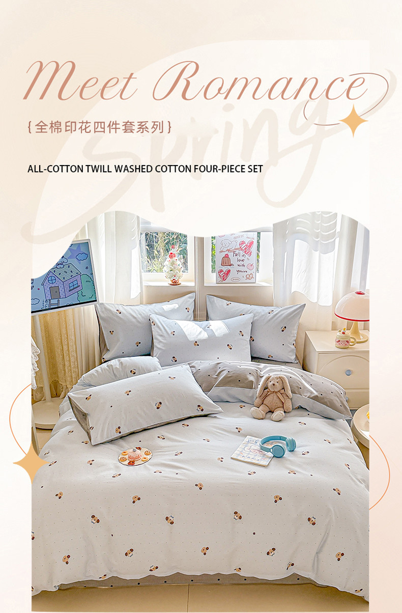 (总)曼之夏 2025新款原棉加厚磨毛印花四件套,比心,布鲁兔,春风十里,大都会,简兮,麦琪熊,麦语-灰,梦游记,眠时光,奇想,轻奢生活,塔维尔(米),甜心小熊,威斯丁,闲趣时光,意林(兰)