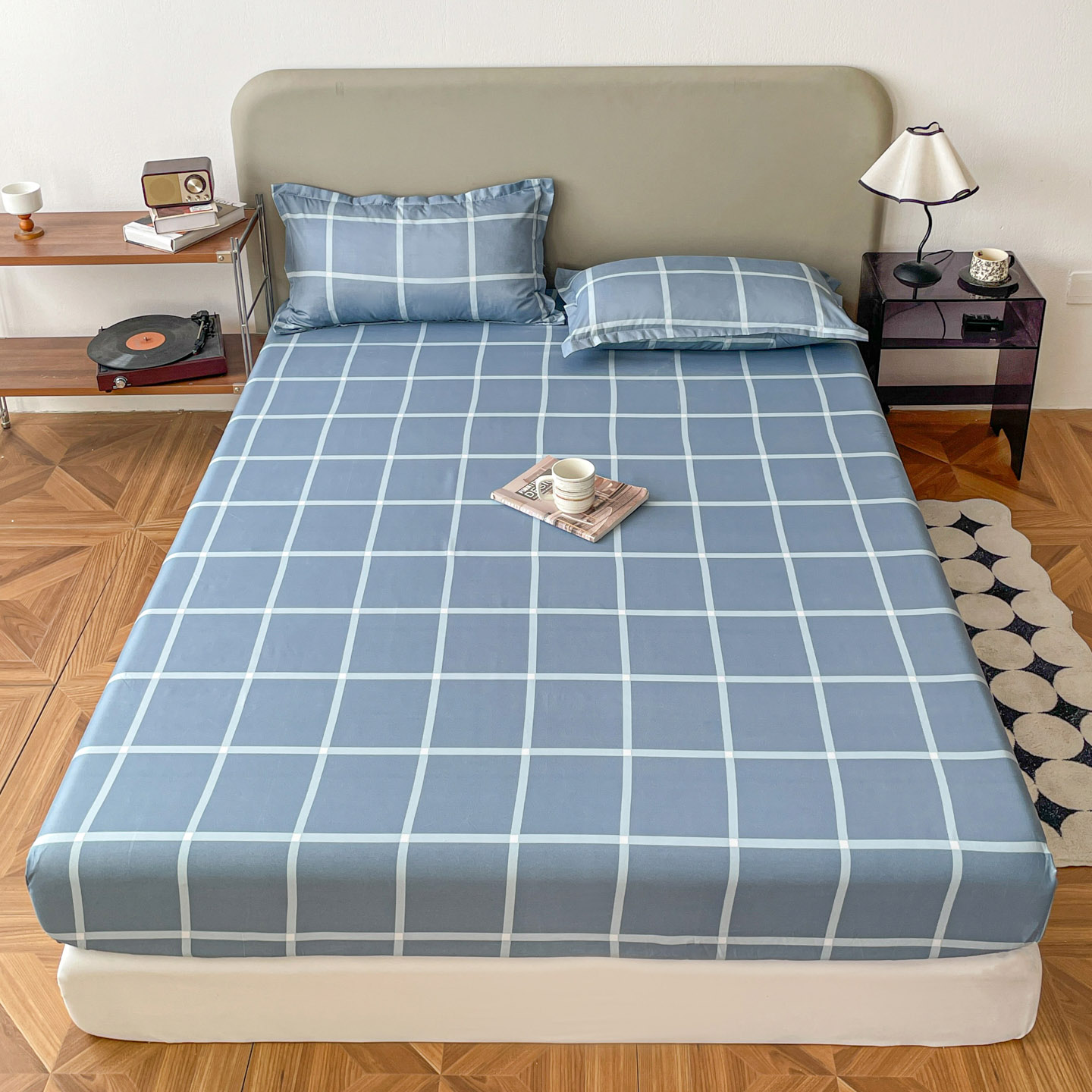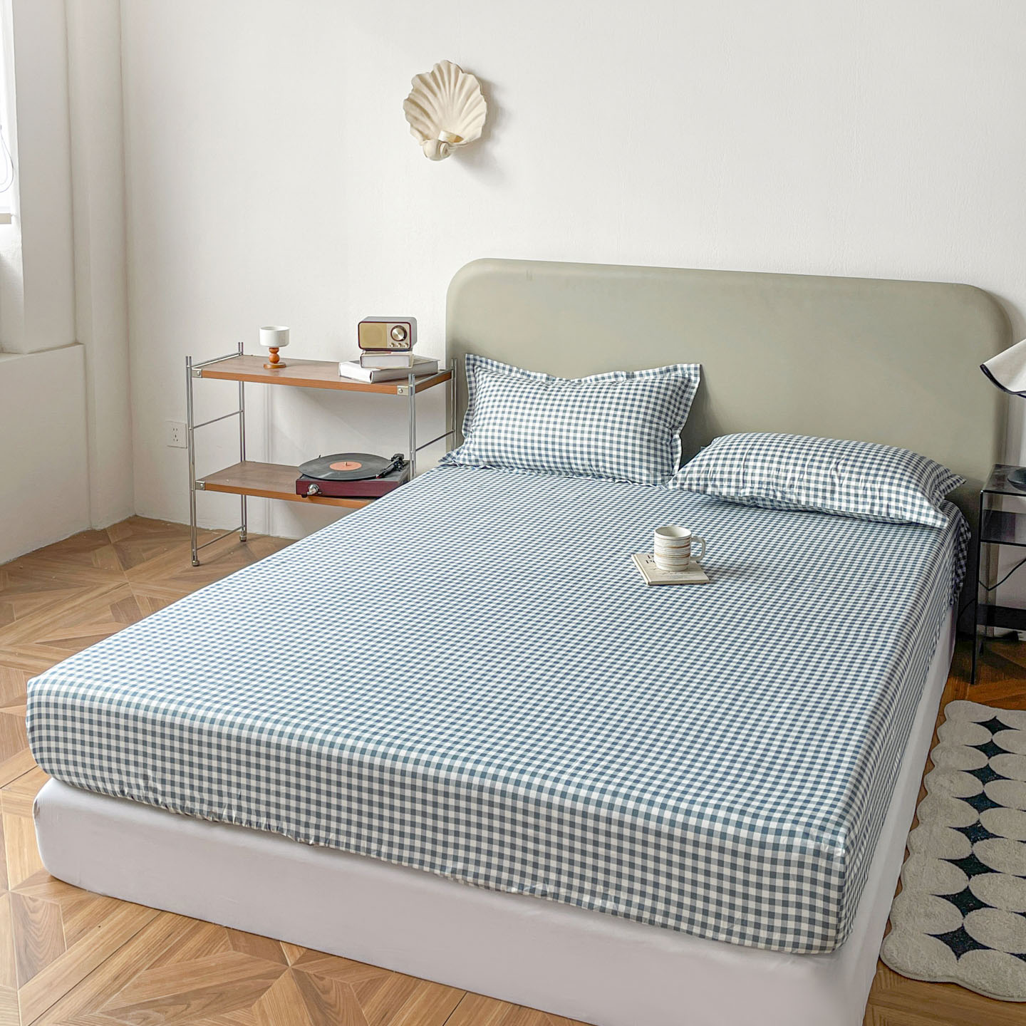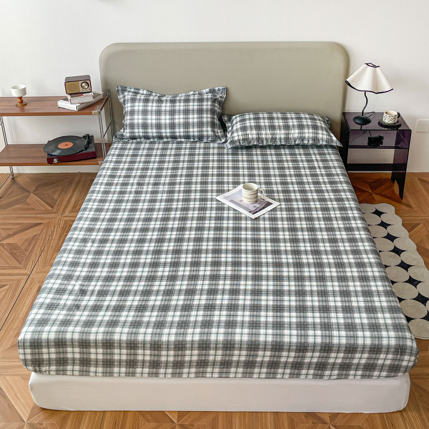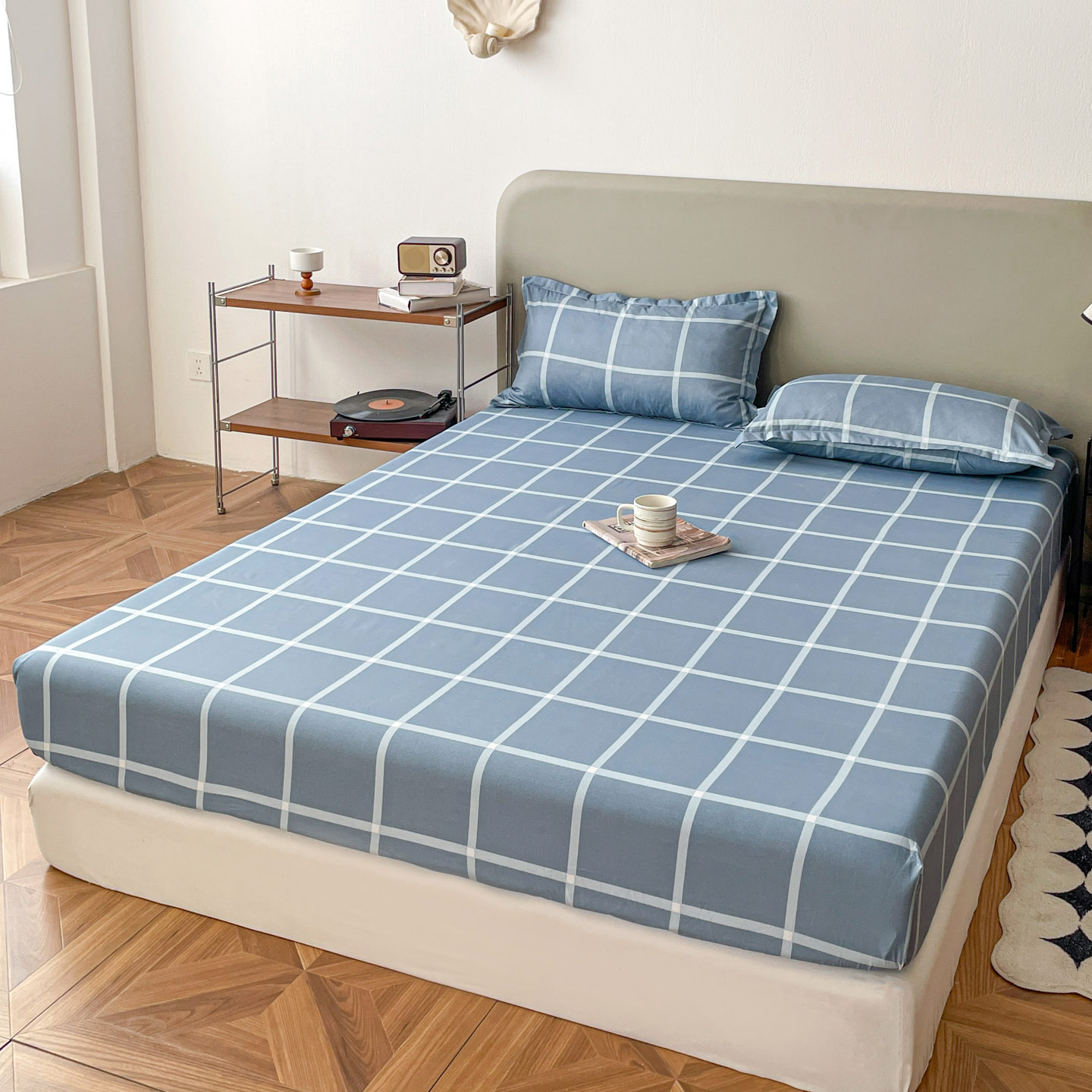 (总)楠沐家纺 2026新款无印风单层床笠床垫保护套,布丁格蓝,粉色波点,海蓝大格,蓝大格,勒夫,洛可可灰,炫彩蓝格