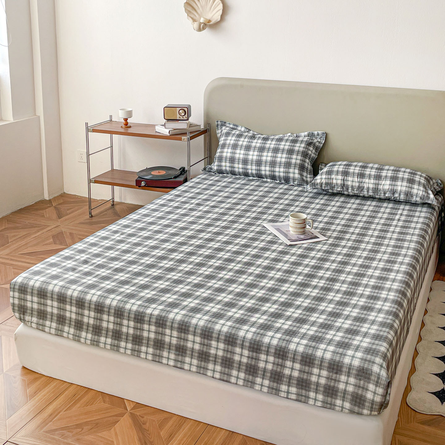 (总)楠沐家纺 2025年新款无印风学生印花四件套芦荟棉水洗棉,彩色波点,觅遇,晴空蓝格,亚麻灰格,烟雾灰格,英伦蓝格