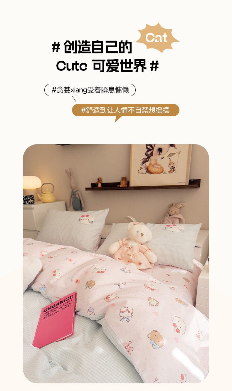 (总)雅居纺家纺 2022新款13070全棉印花四件套,草莓蝴蝶结,俄罗斯方块,黑白蝴蝶结,很嗨兔,可爱小兔,快乐花海,牛奶纹,胖胖鸭,棋盘格,日月争辉,西部恐龙,小情调,小桃桃