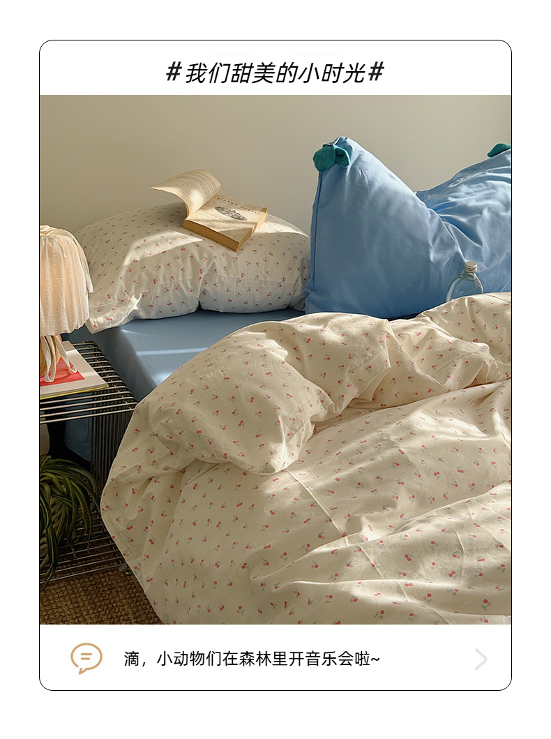 (总)三朵家纺 2026新款水洗棉碎花INS博主风混搭全棉四件套,漫花,莫里,南乔