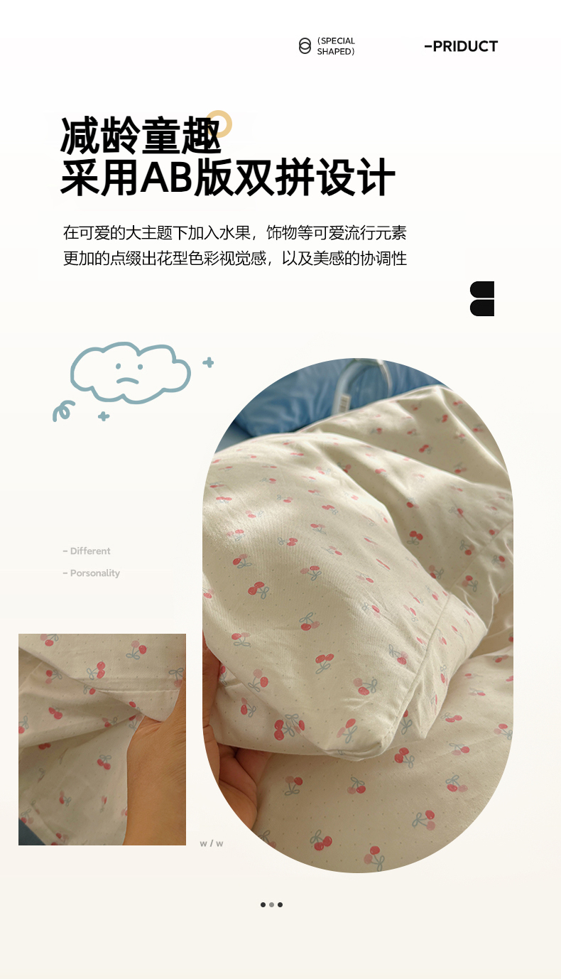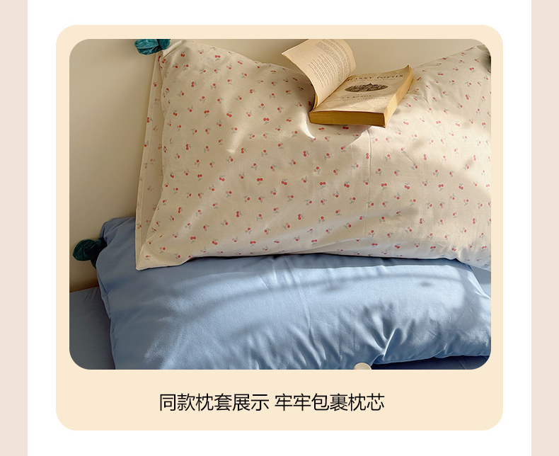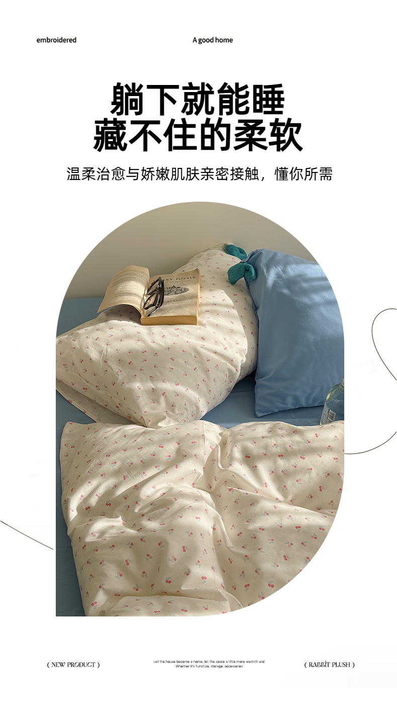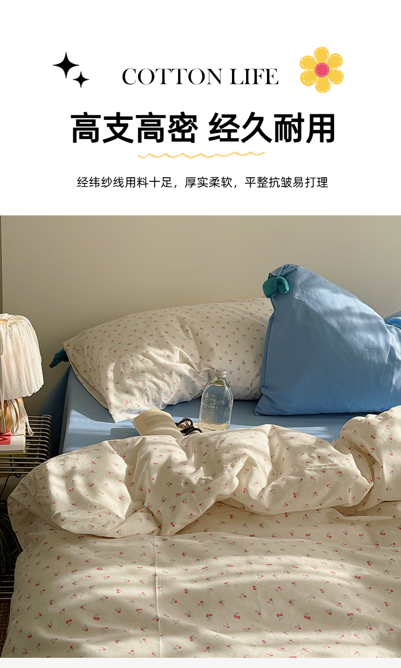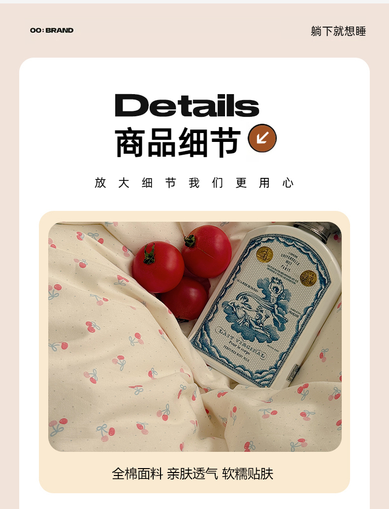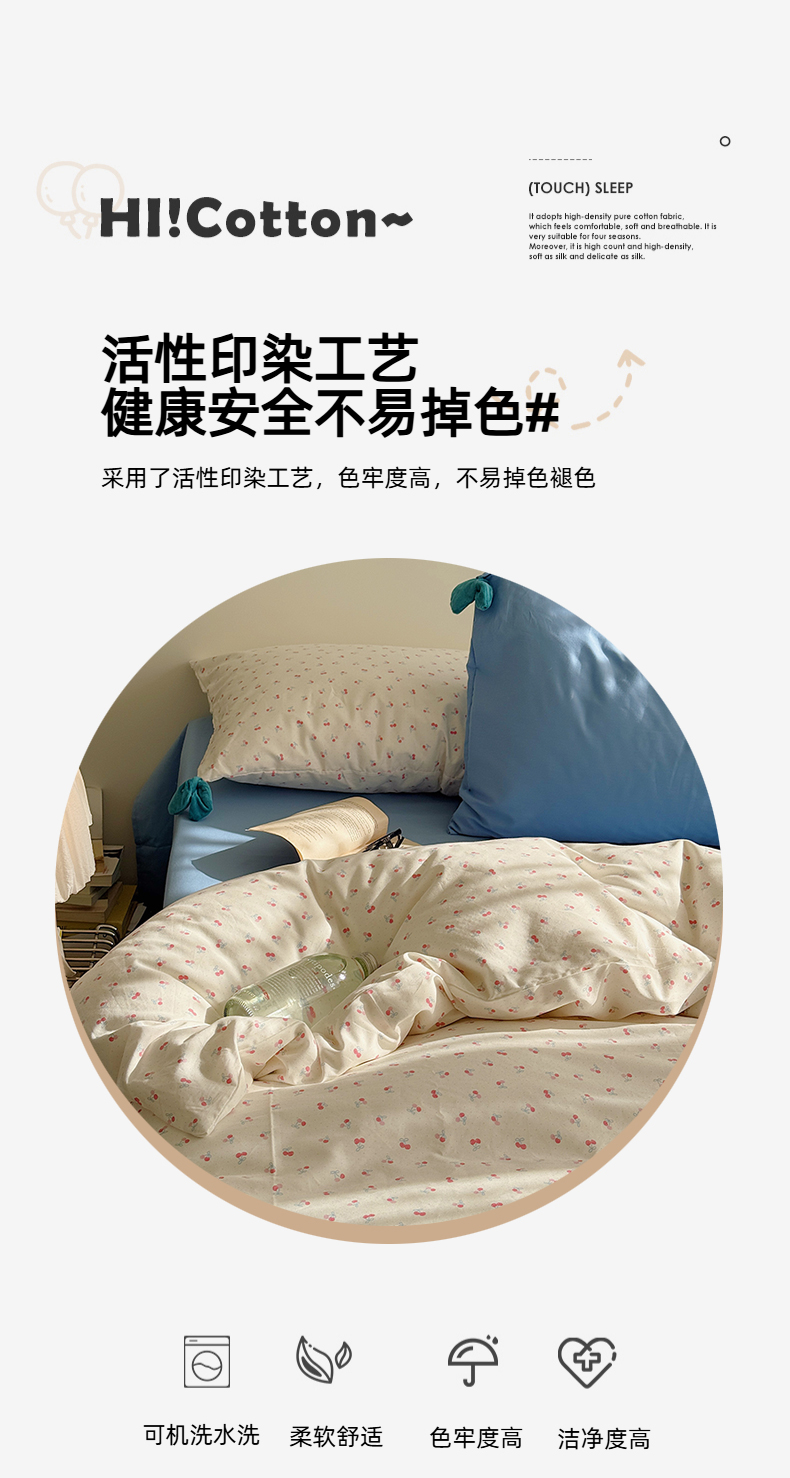 商品名称:三朵家纺 2026新款13070可爱INS风全棉四件套 小樱桃-粉