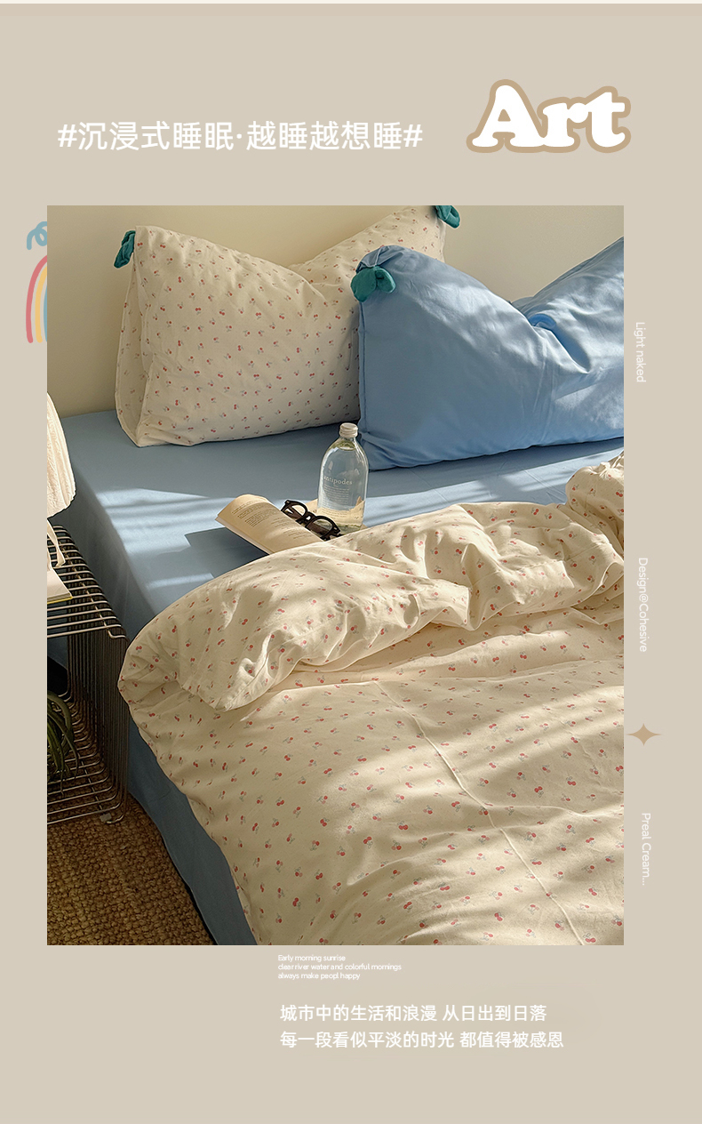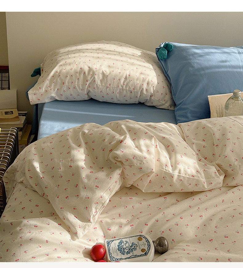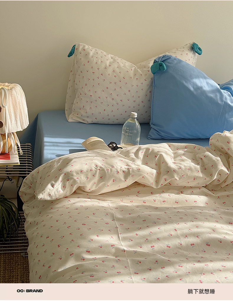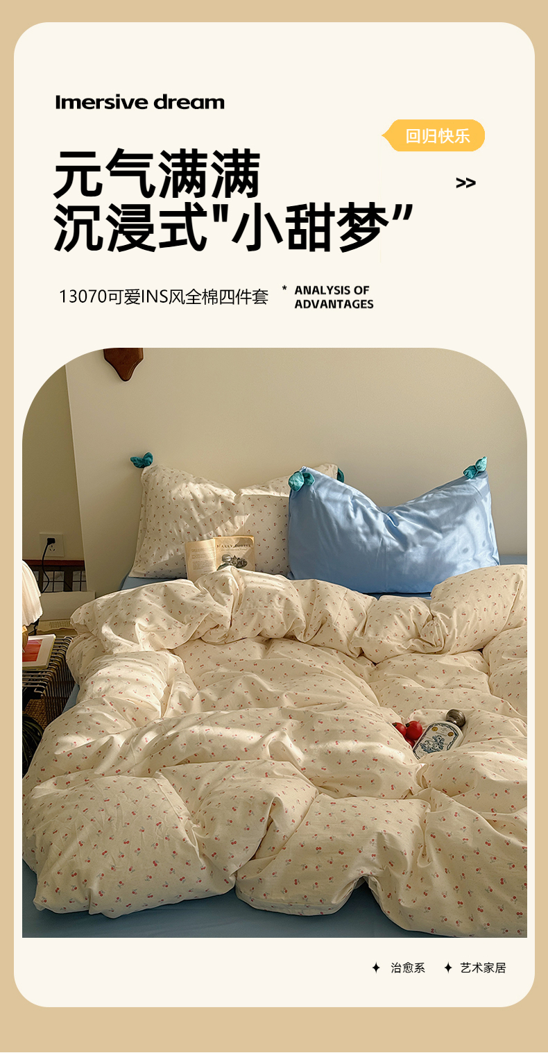 三朵家纺 2026新款13070可爱INS风全棉四件套 小樱桃-粉