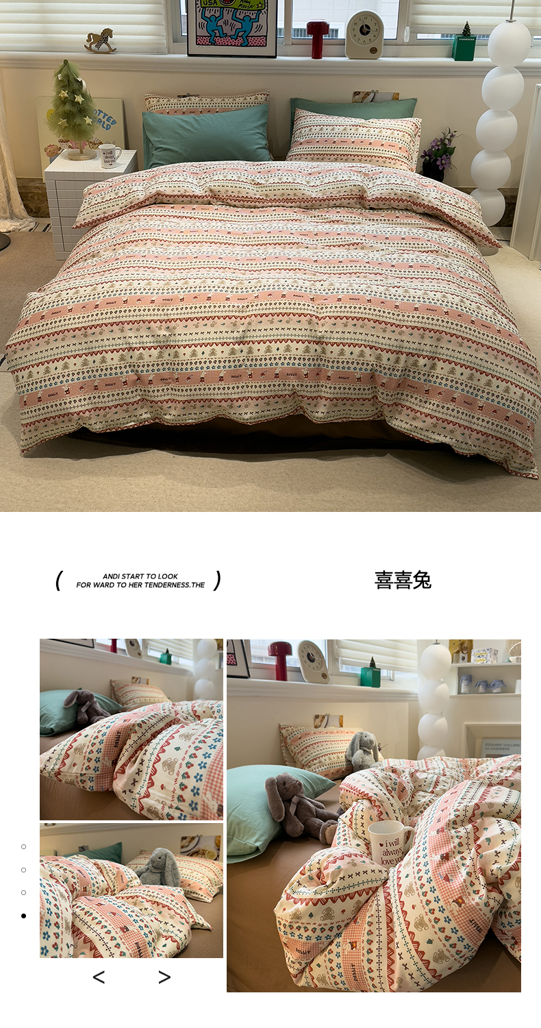(总)呗旺鹿 2026新款全棉40支12868田园卡通小清新系列四件套,雅柔,蓝叶兔,软糖萌宠,三小只,童话乐园,小熊艺语,樱桃小象,H萝卜兔,L红茶兔兔,L欧包小奶兔,L浅糖兔叽