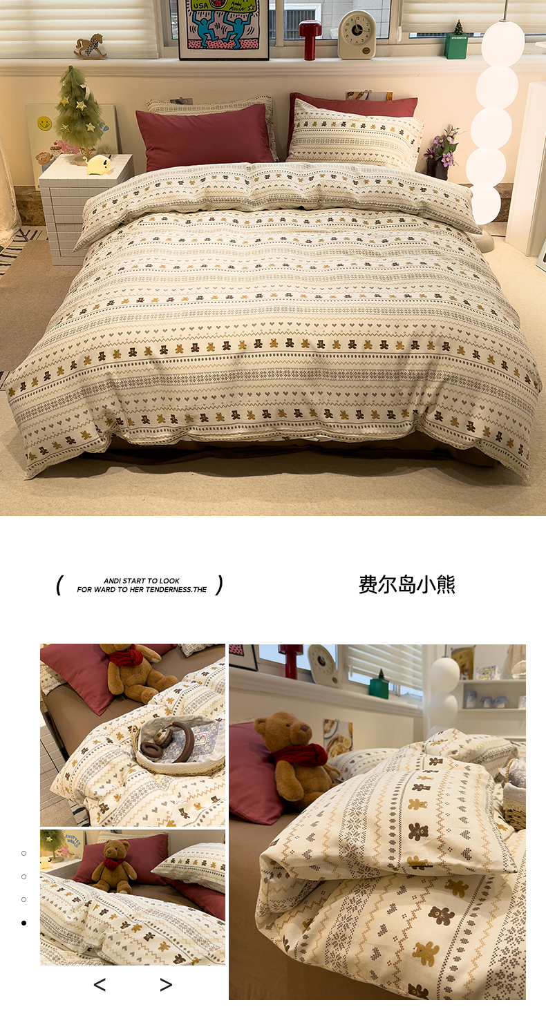 (总)呗旺鹿 2025新款A版全棉B版牛奶绒四件套,冰岛小马,萌星,糖果小马,小狗笔记,费尔岛小熊