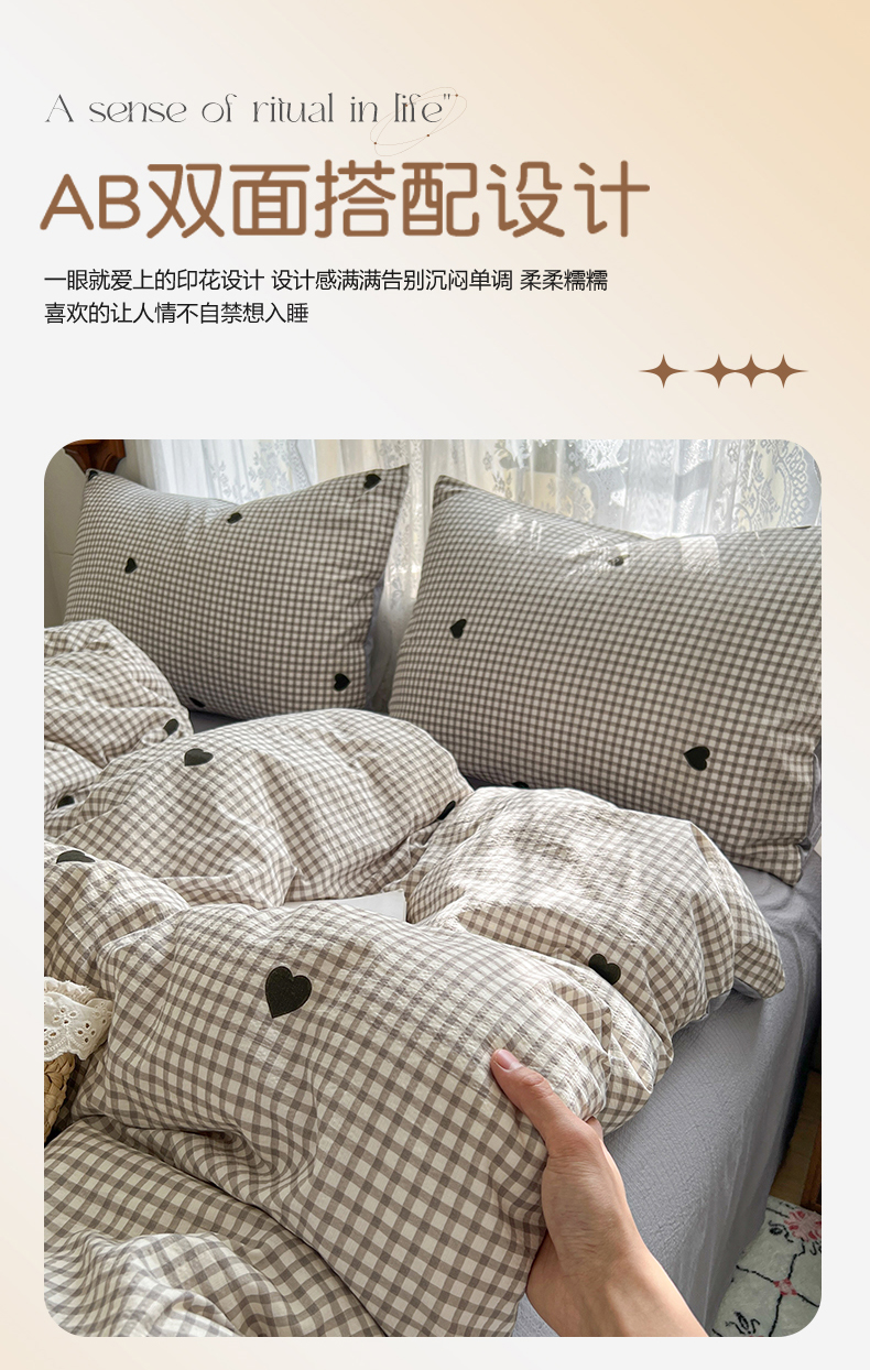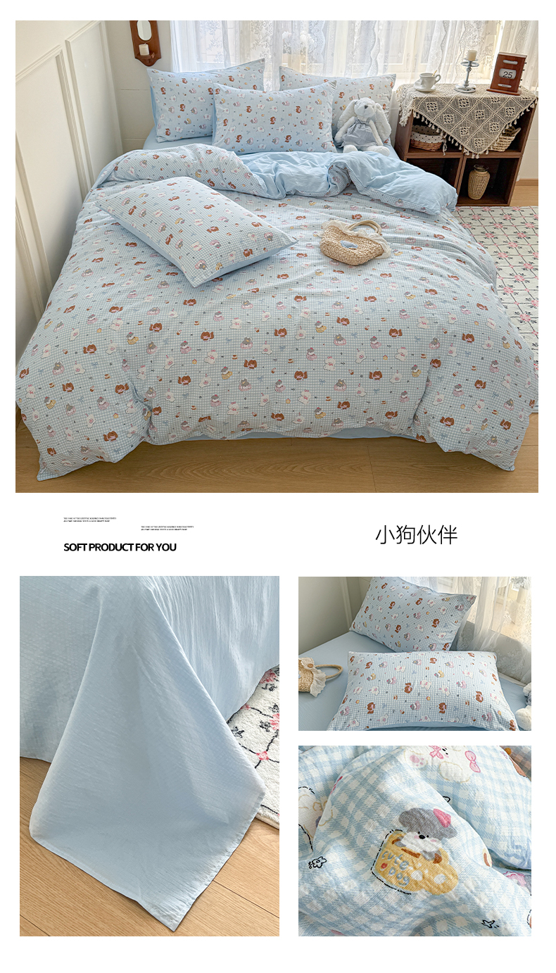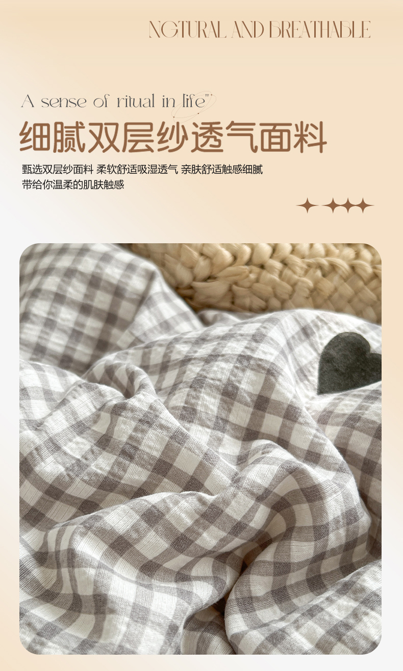 当前位置: 91家纺网 > 商品网购 > 床品套件 > 四件套 > 其它四件套 > 妖妖家纺 2026新款敲可爱的奶呼呼云感双层纱简约四件套系列 格间心心