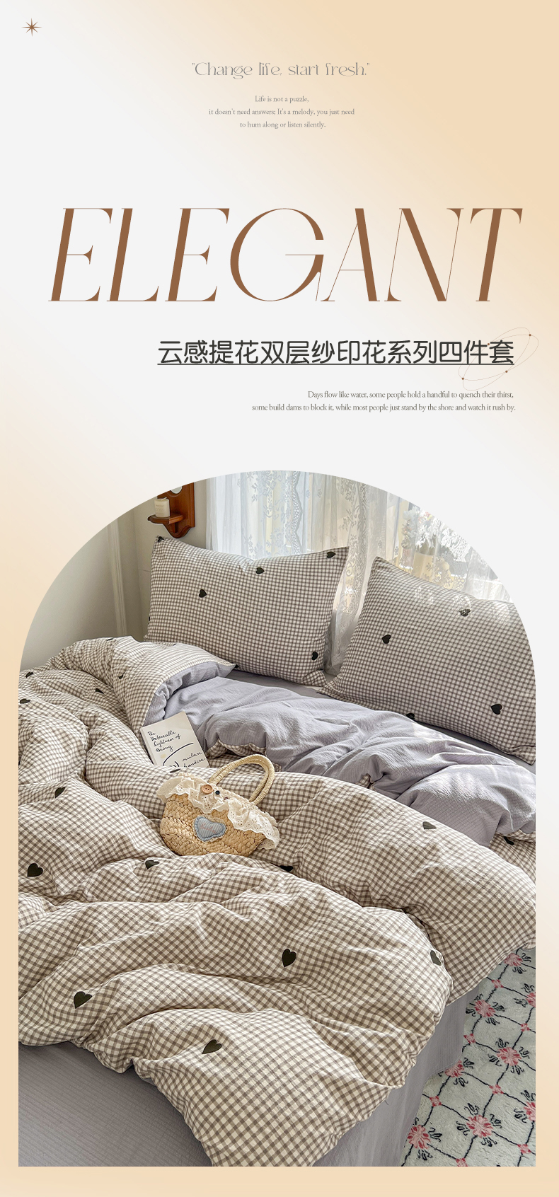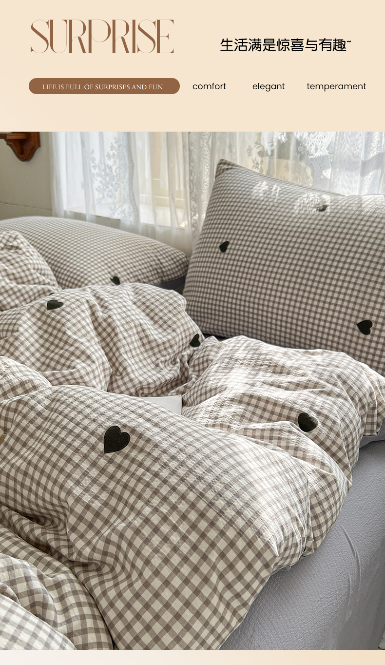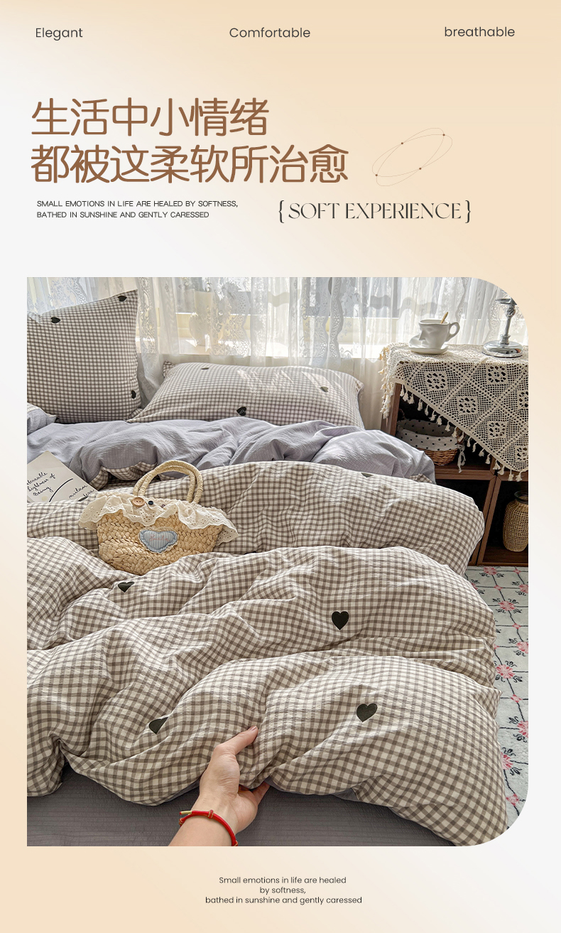 当前位置: 91家纺网 > 商品网购 > 床品套件 > 四件套 > 其它四件套 > 妖妖家纺 2026新款敲可爱的奶呼呼云感双层纱简约四件套系列 格间心心