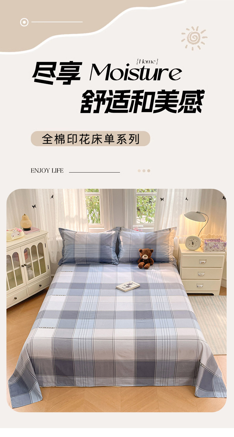 • 91家纺网 家纺一手货源 找家纺 世爵 2026新款全棉纯棉印花小清新单床单单品系列 漫步云端