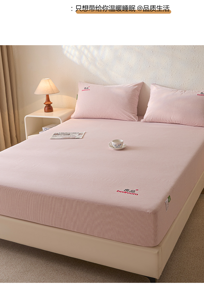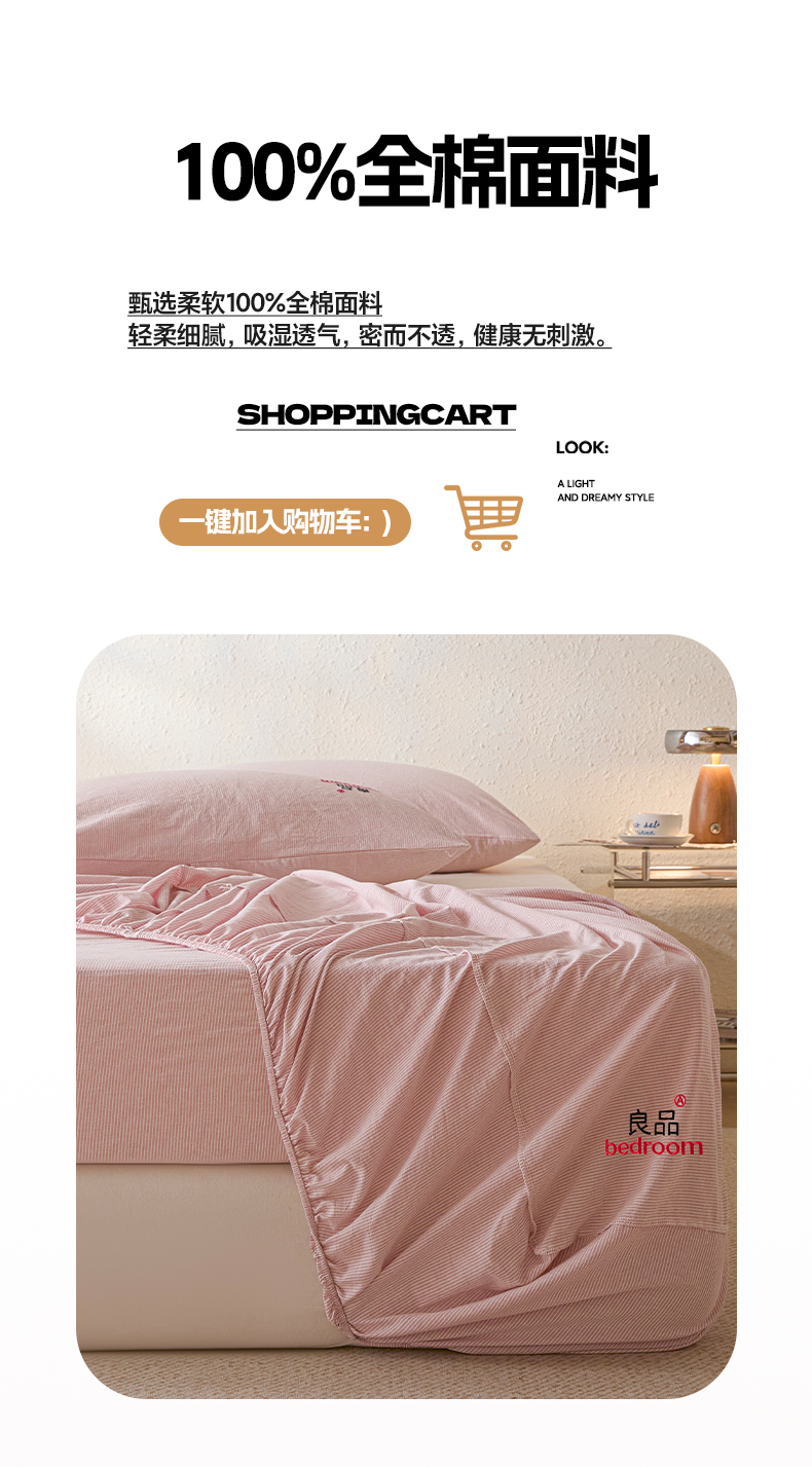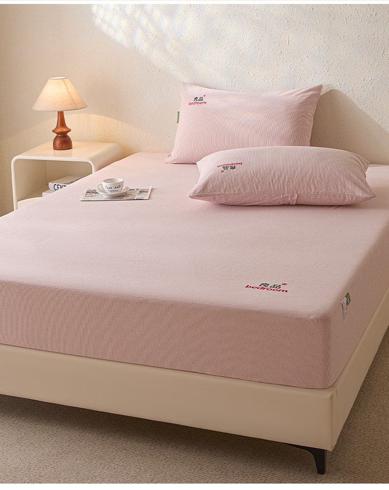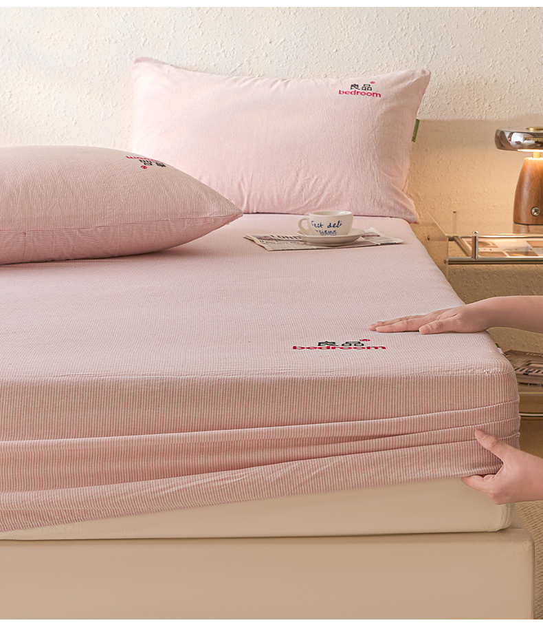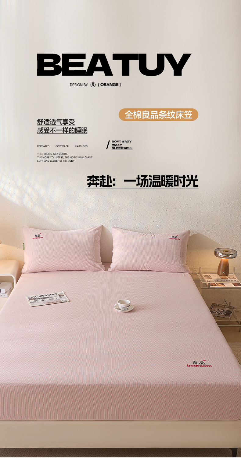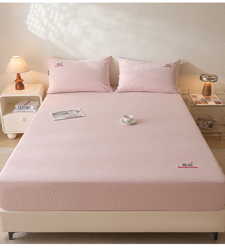 芬晴家纺 2026新款纯棉密条+纯色单层床笠 条纹-豆沙