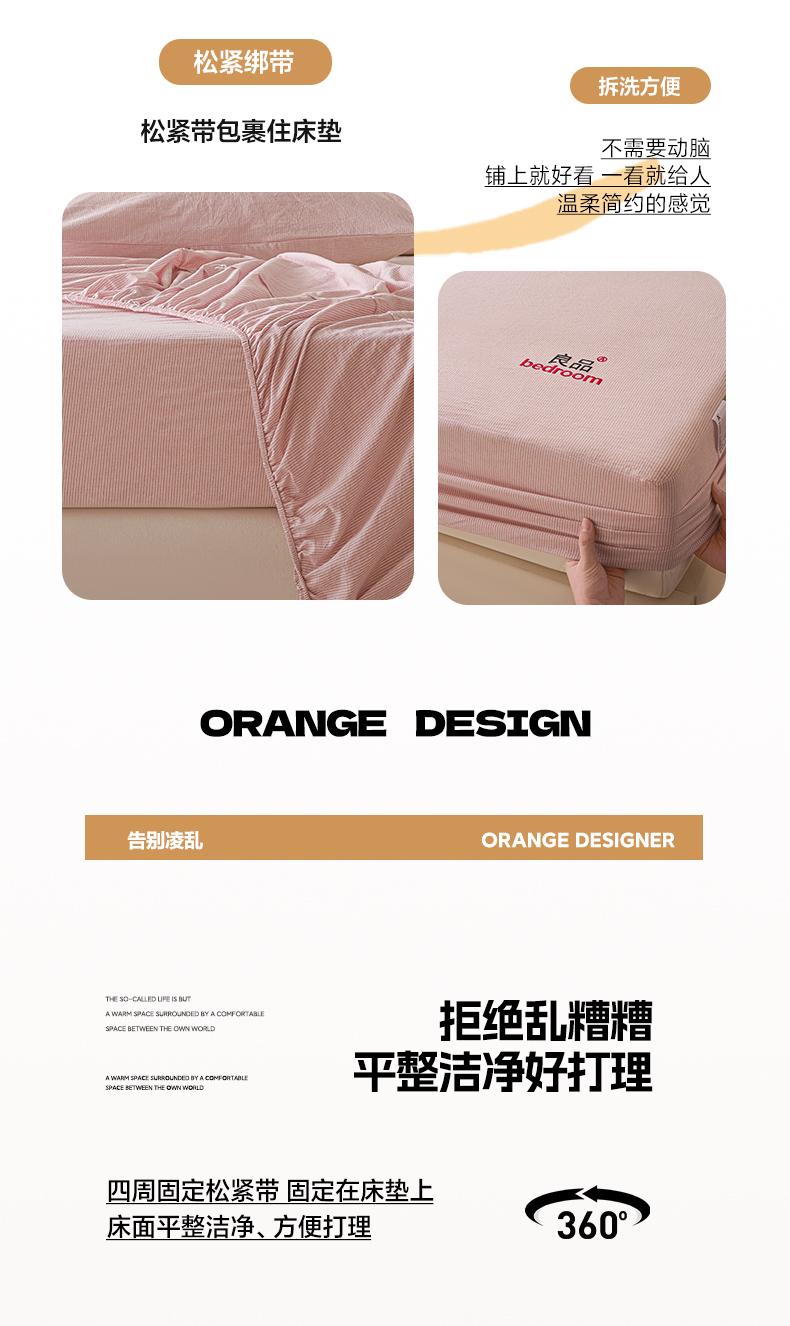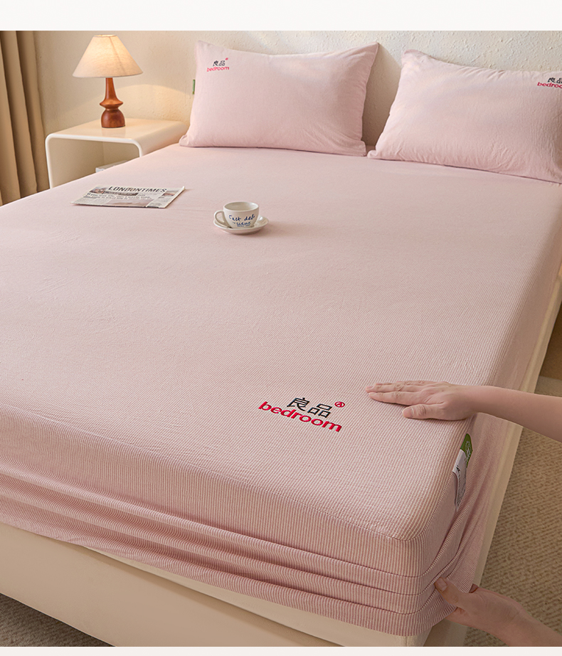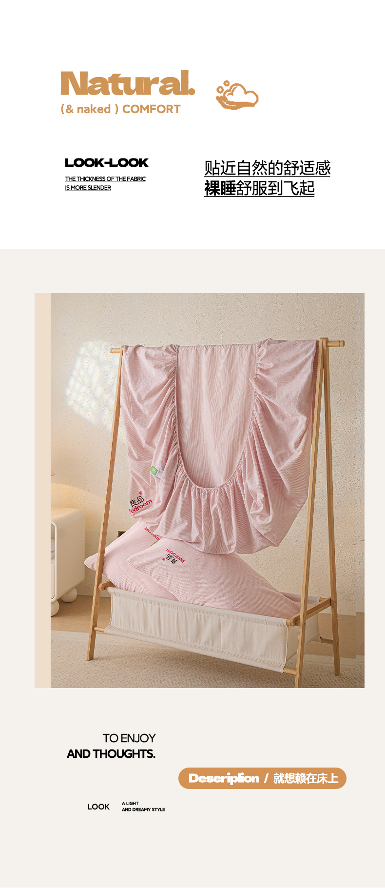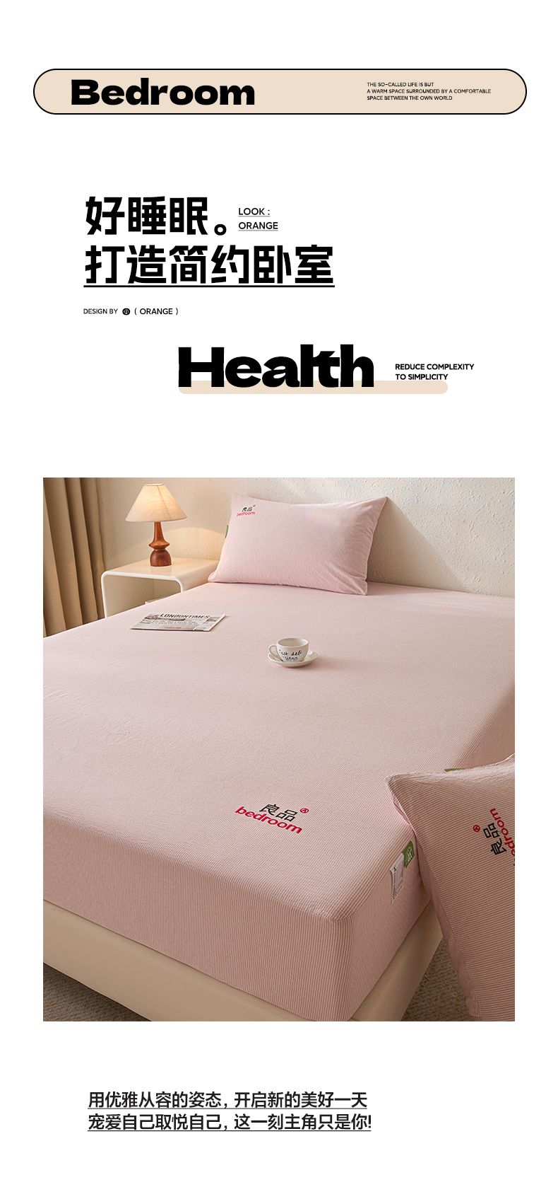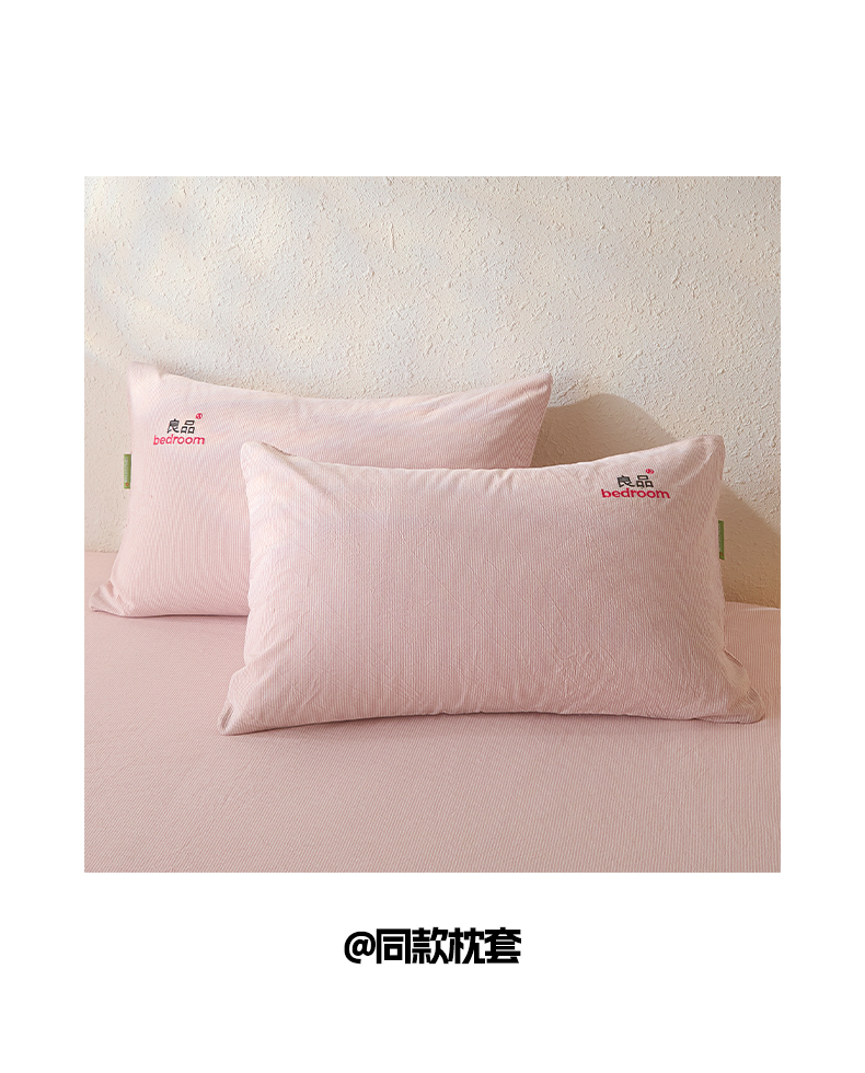 芬晴家纺 2026新款纯棉密条+纯色单层床笠 条纹-豆沙