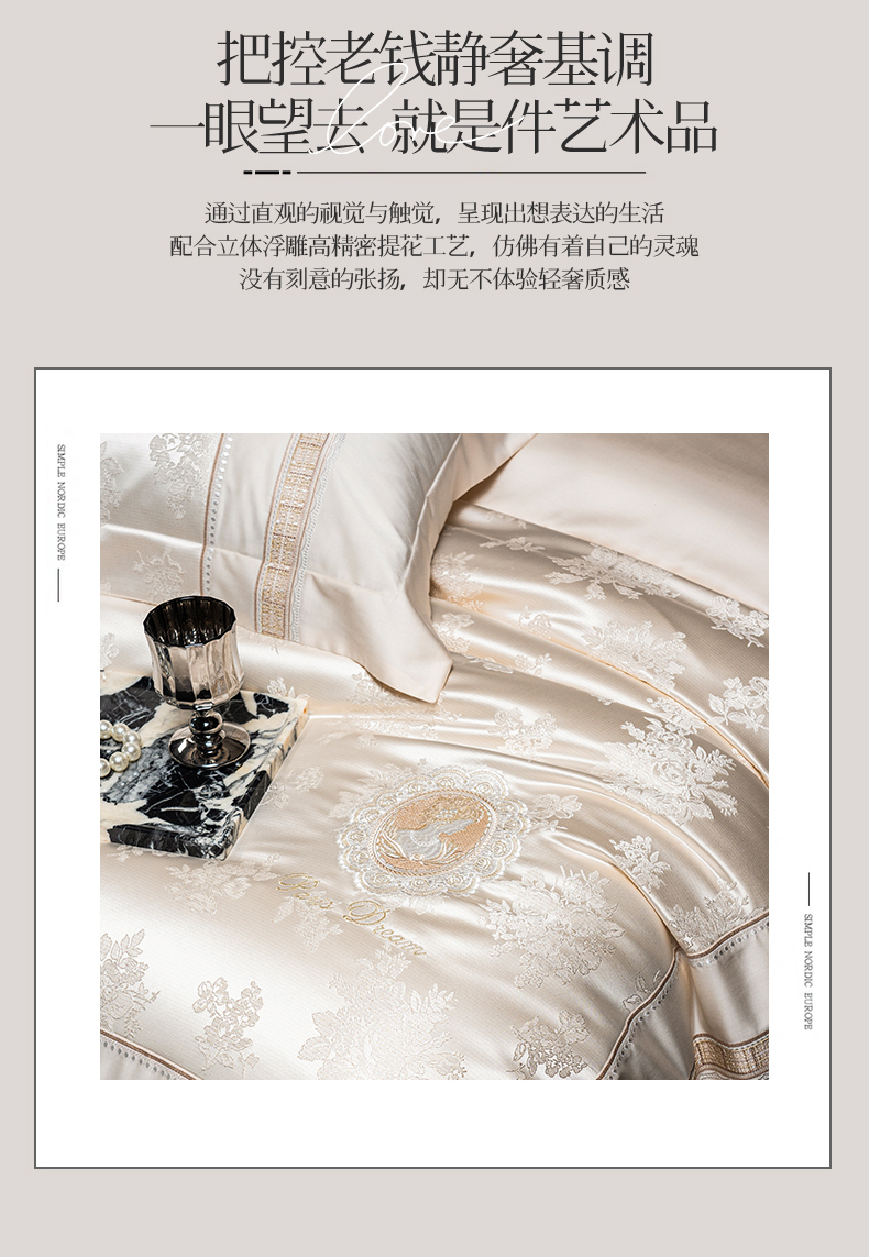 商品名称:鼎飞家纺 2026新款3D立体浮雕高精密长绒棉四件套--索菲尔系列 索菲尔-奶咖