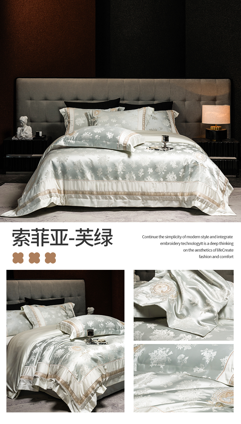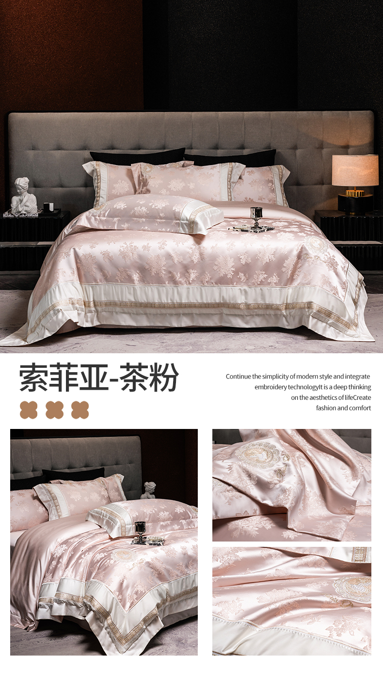 (总)鼎飞家纺 2026新款3D立体浮雕高精密长绒棉四件套--索菲尔系列,索菲尔-茶粉,索菲尔-芙绿,索菲尔-奶咖