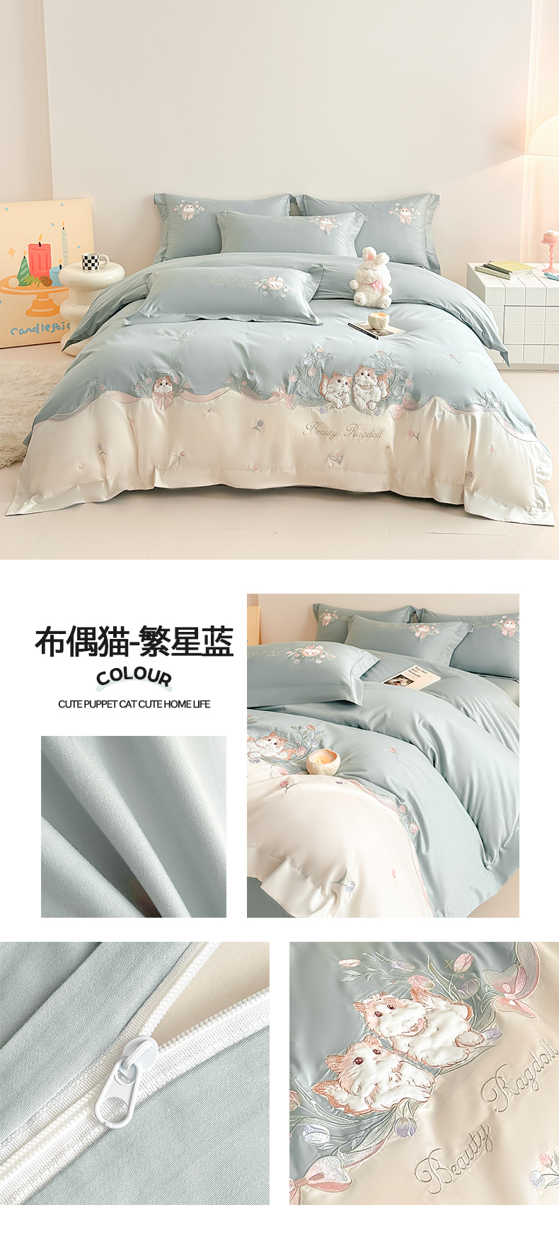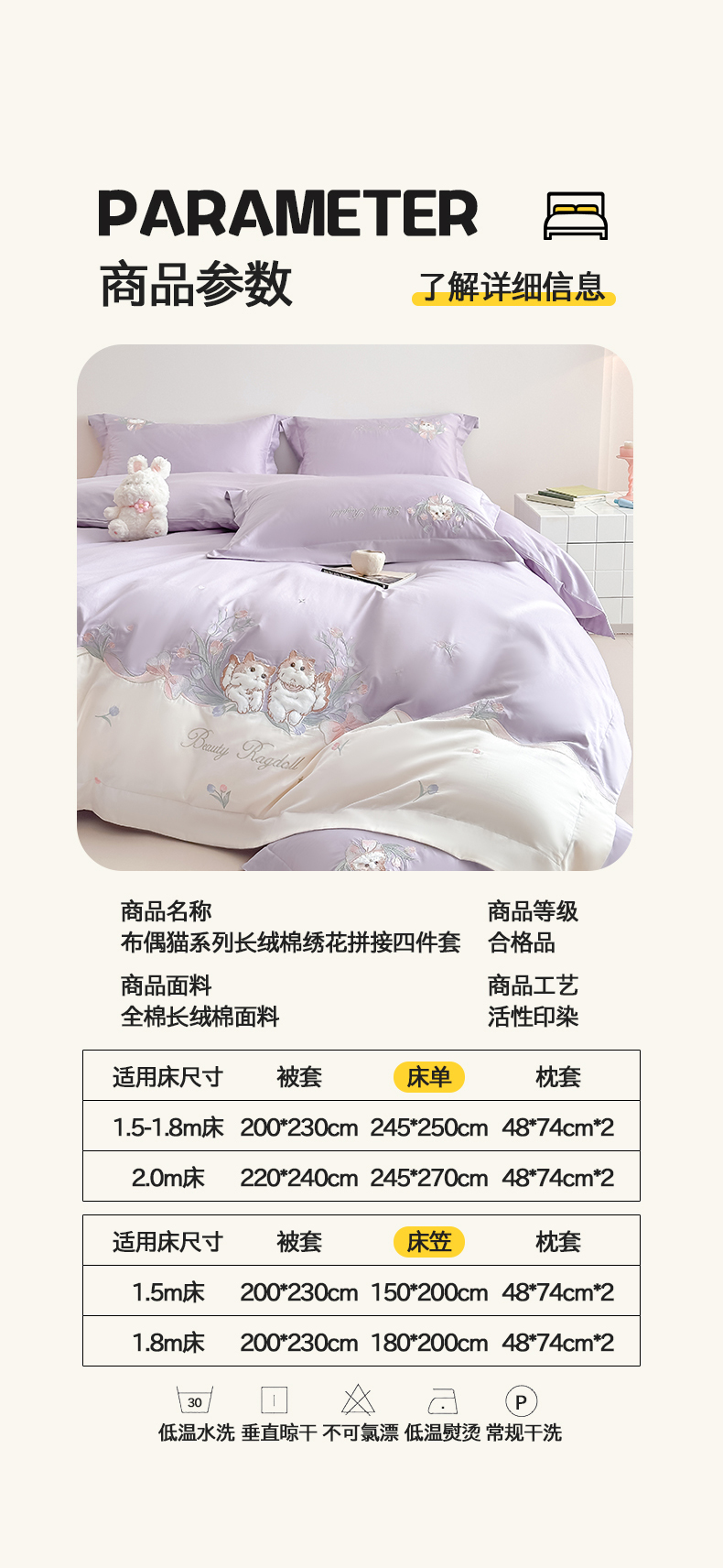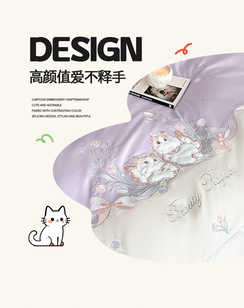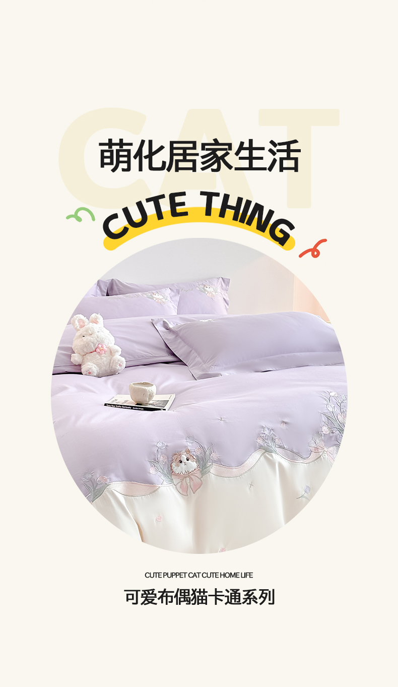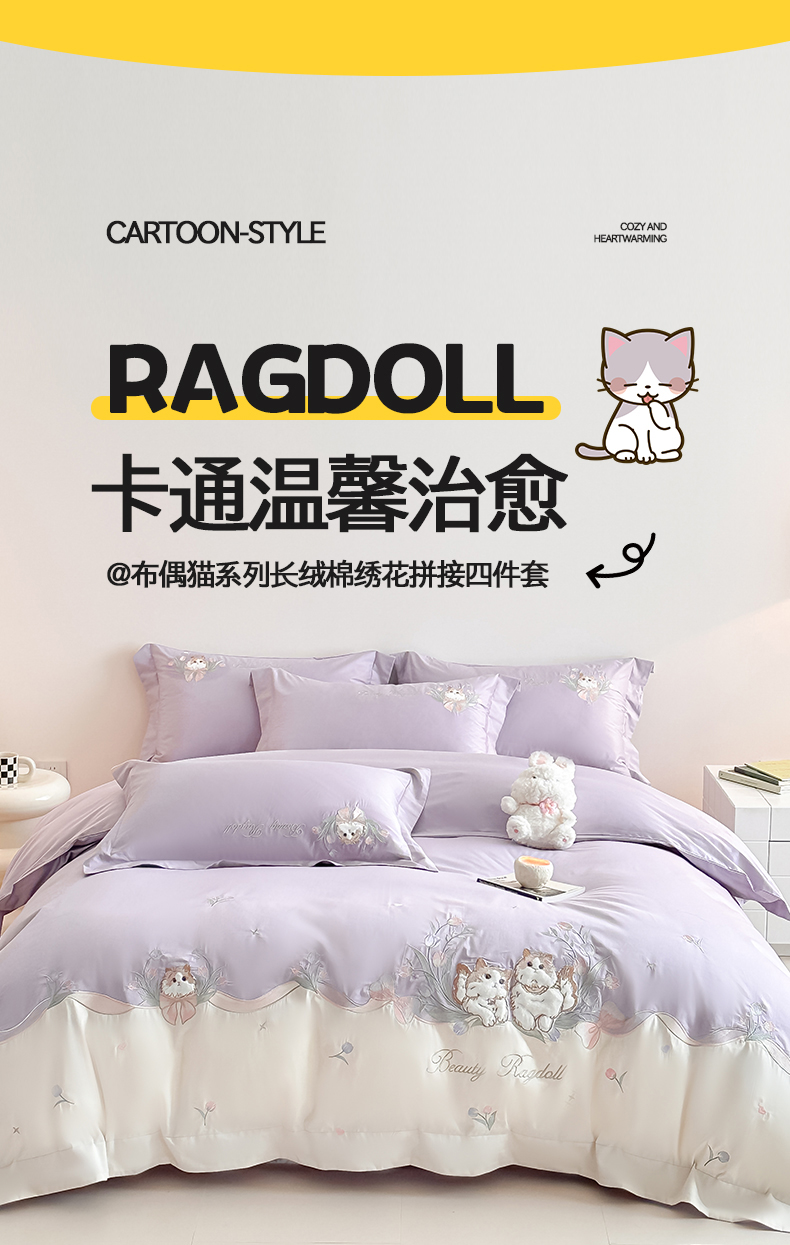 当前位置: 91家纺网 > 商品网购 > 床品套件 > 四件套 > 全棉普通四件套 > 置顶家纺 2026新款全棉刺绣系列四件套-布偶猫 布偶猫-香芋紫