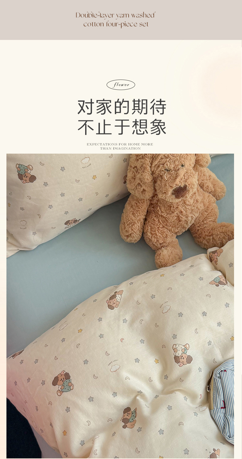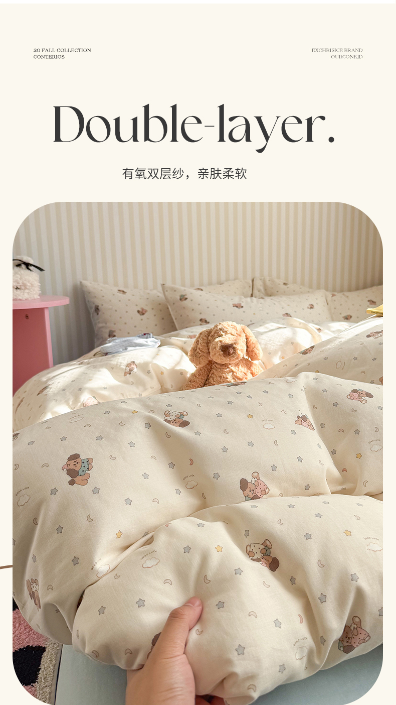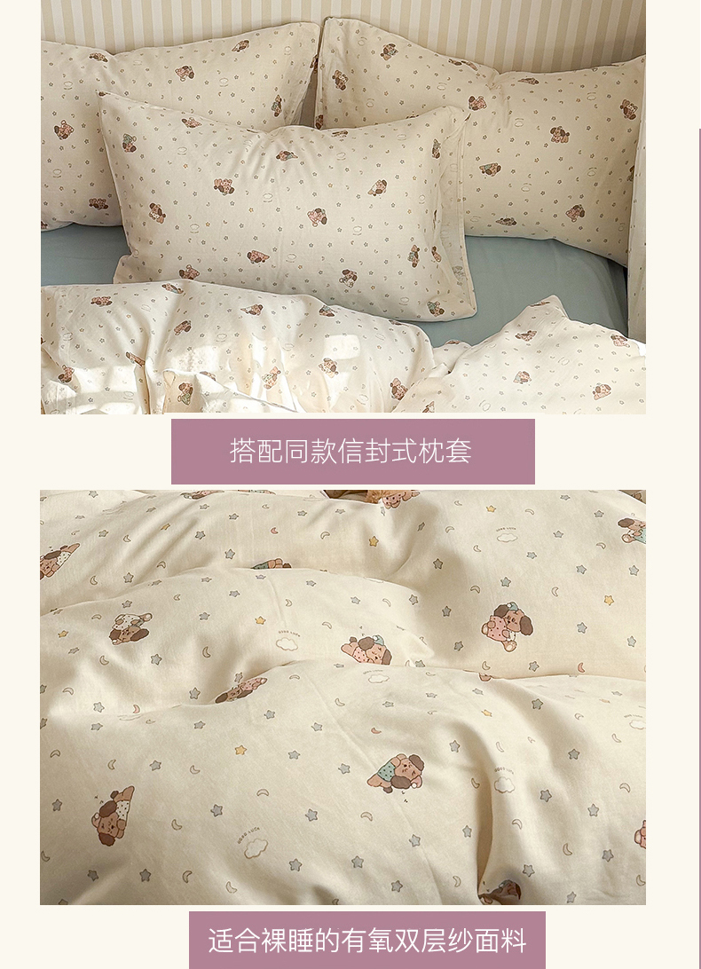 当前位置: 91家纺网 > 商品网购 > 床品套件 > 四件套 > 全棉普通四件套 > 麦伦家居 2026年春夏新款全棉纯棉有氧双层纱印花四件套-第二波 甜梦汪汪