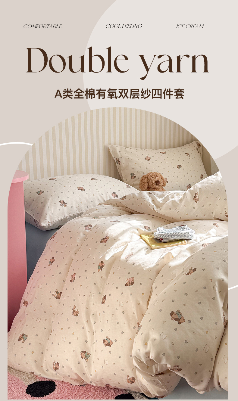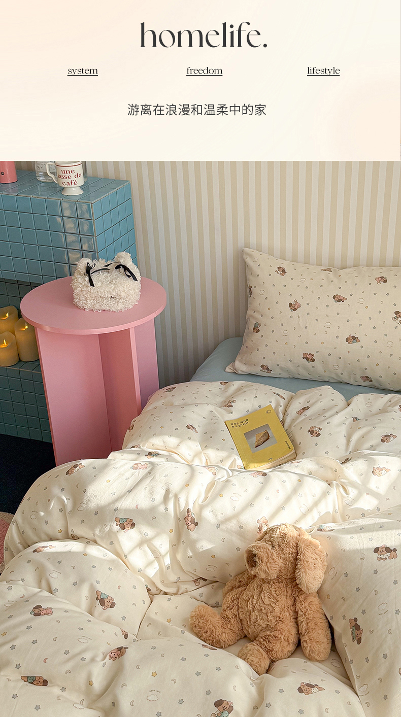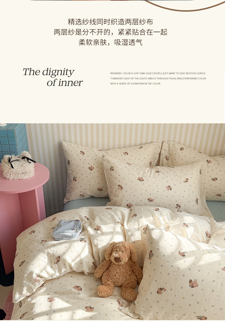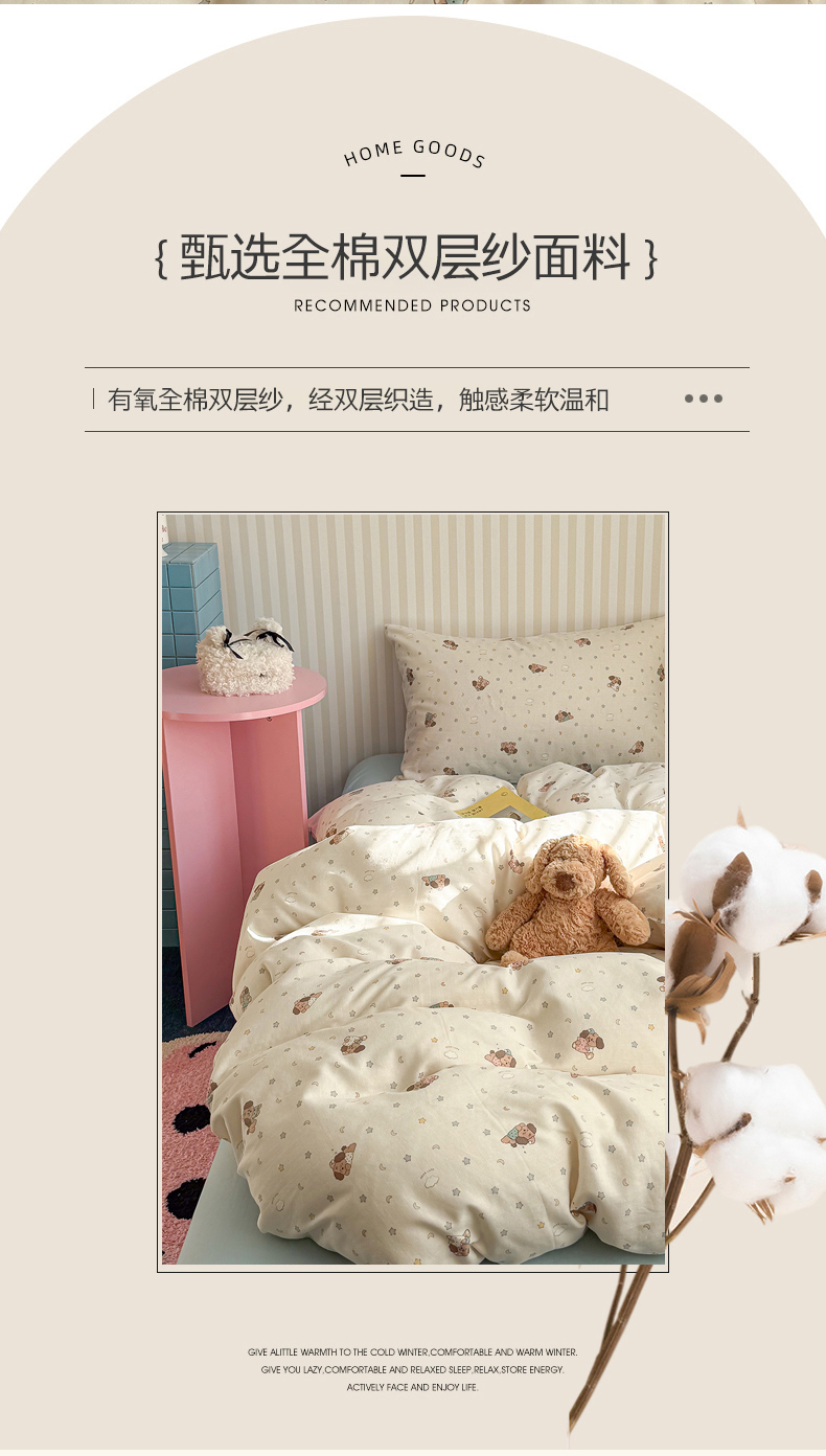当前位置: 91家纺网 > 商品网购 > 床品套件 > 四件套 > 全棉普通四件套 > 麦伦家居 2026年春夏新款全棉纯棉有氧双层纱印花四件套-第二波 甜梦汪汪