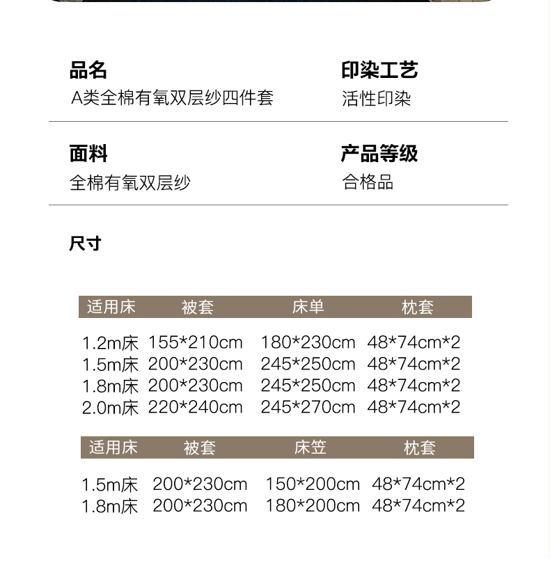 【床笠款】1.8四件套-被套200x230 | ¥140.00 |