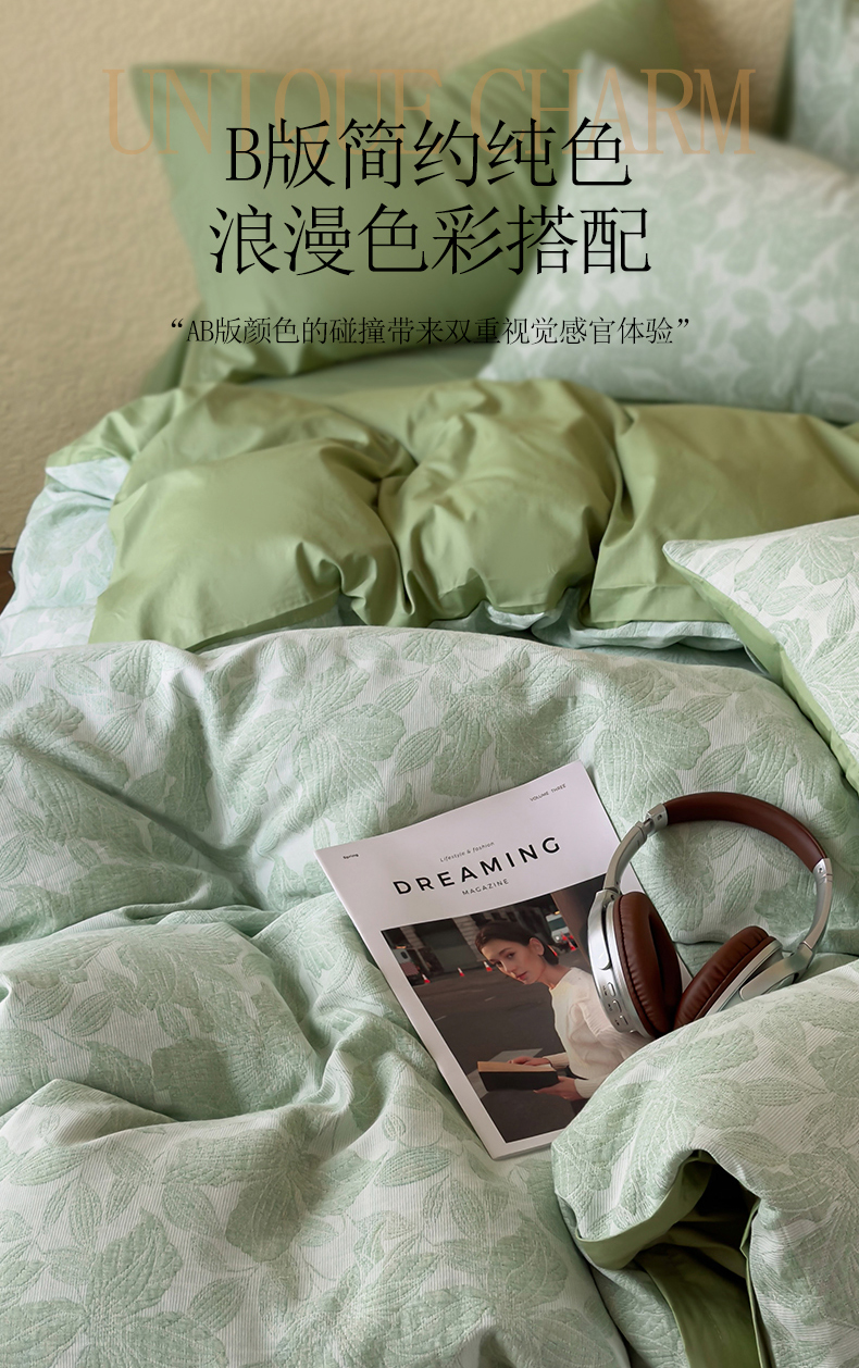 当前位置: 91家纺网 > 商品网购 > 床品套件 > 四件套 > 全棉普通四件套 > 琪格格纺织 2026新款60s纯棉加厚三层纱系列四件套 三层纱 唐顿庄园-绿