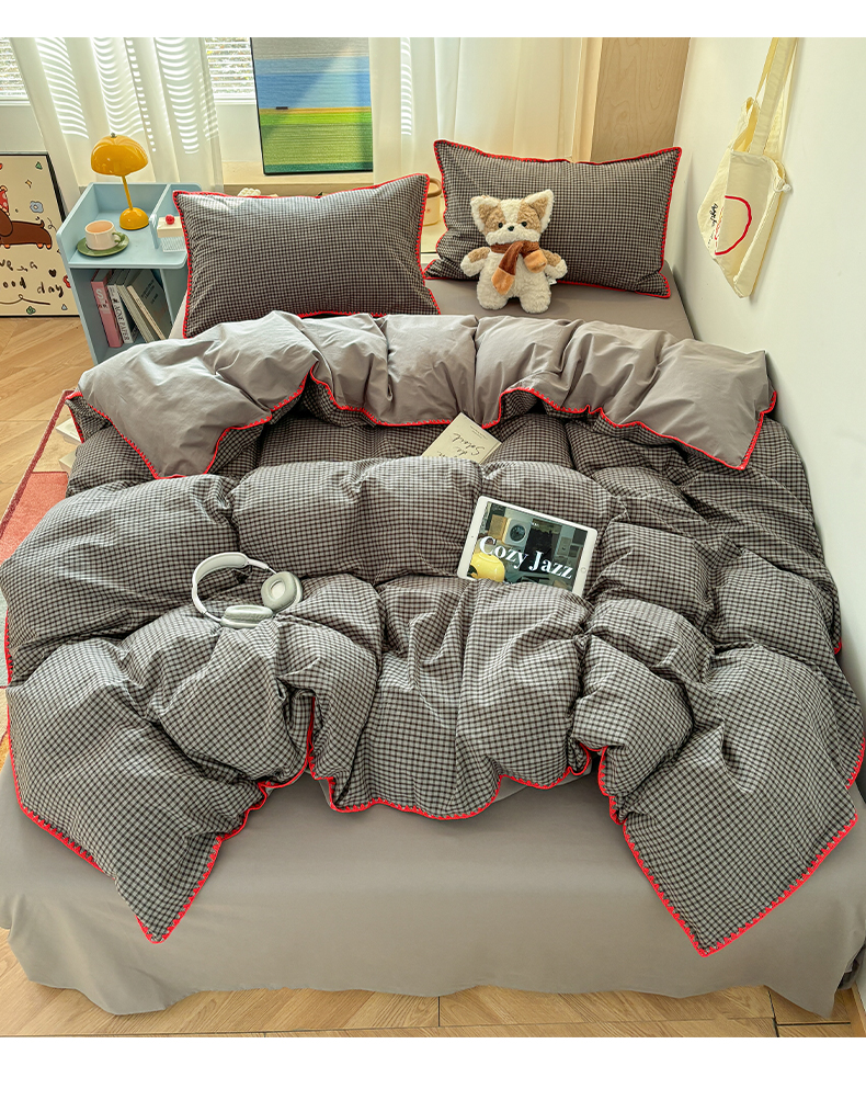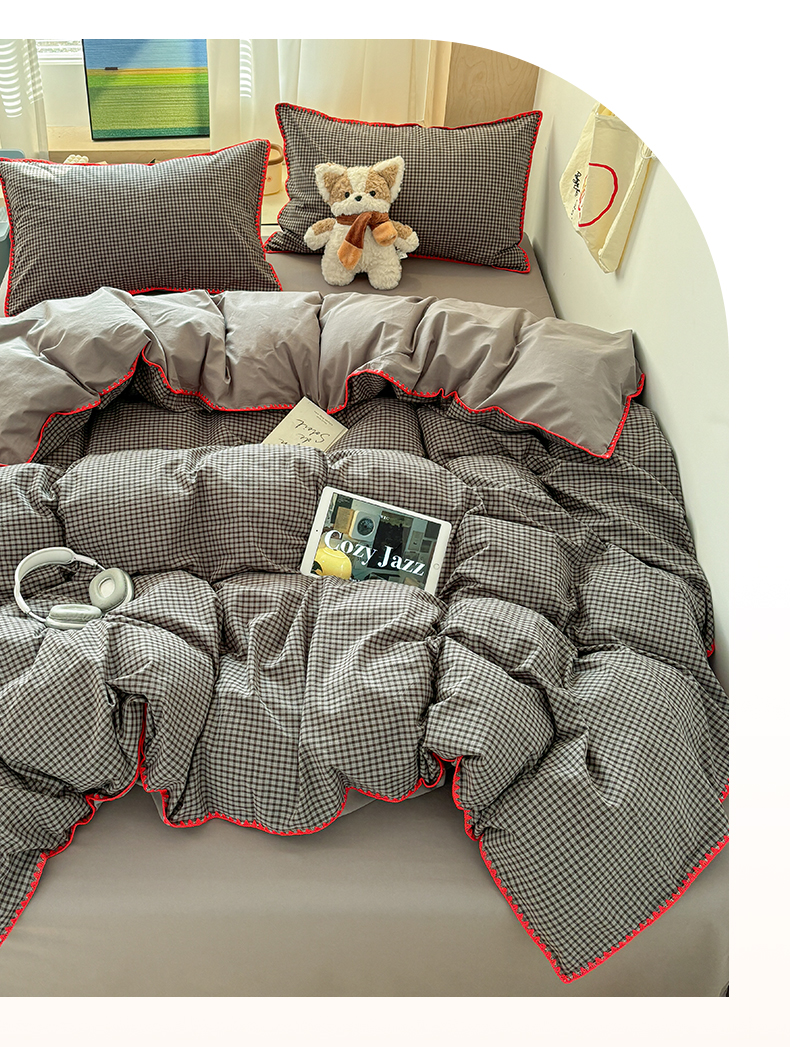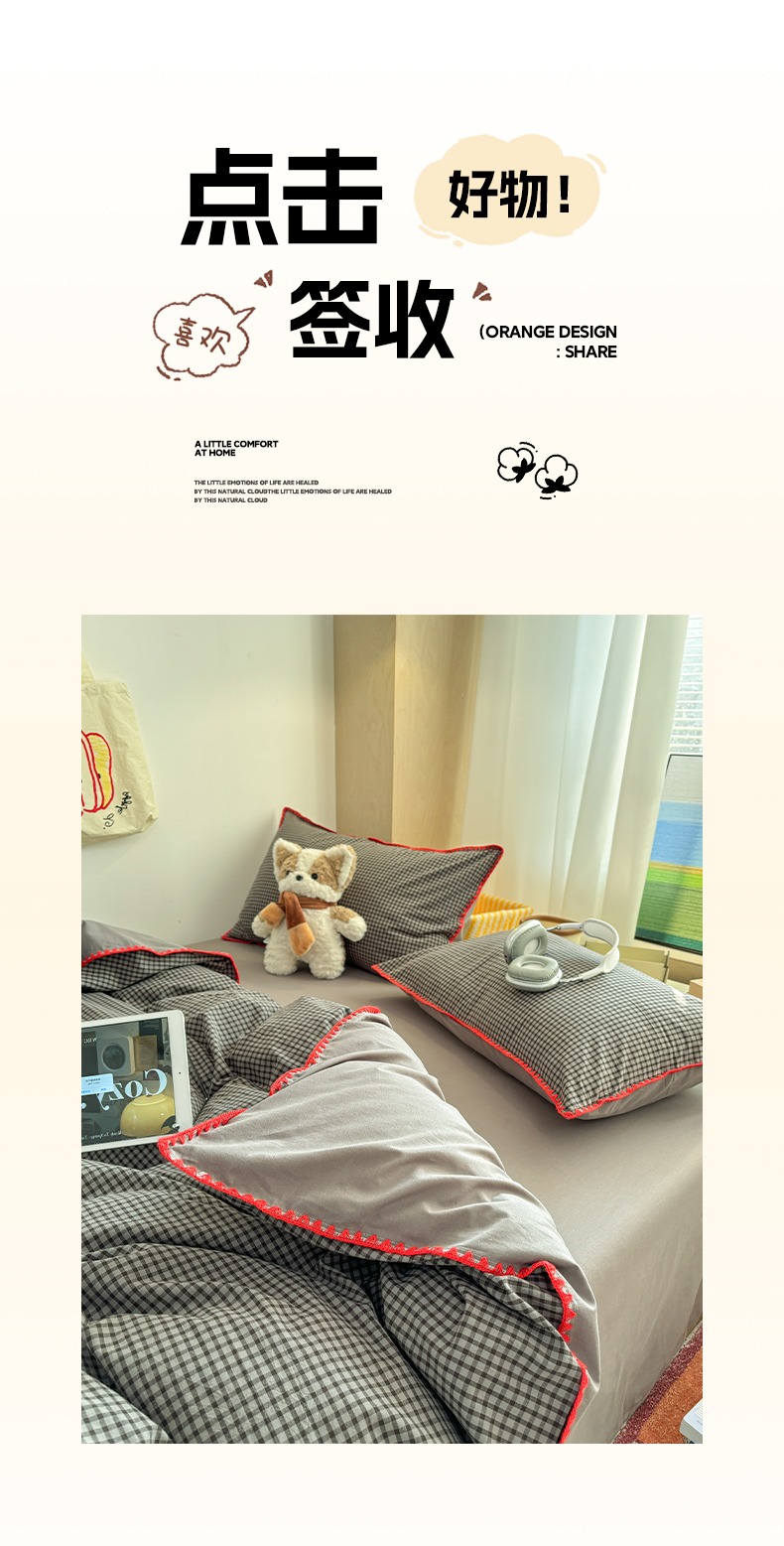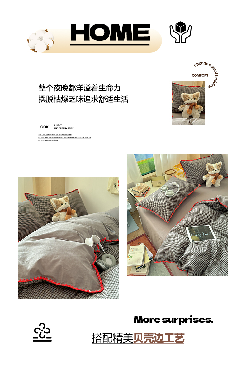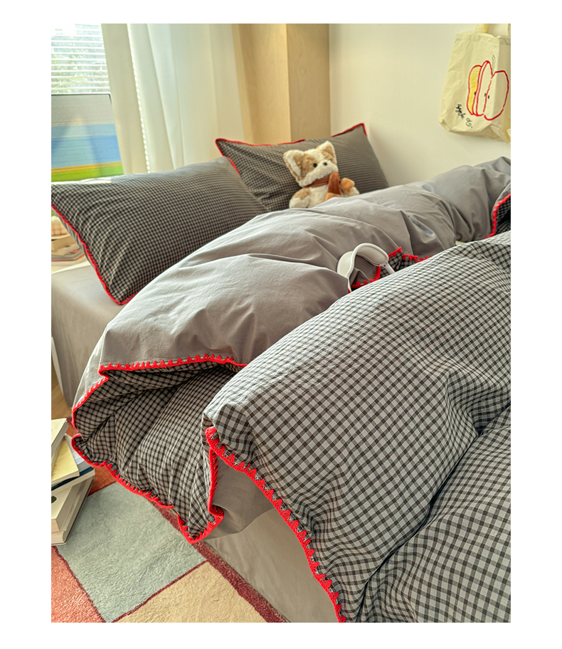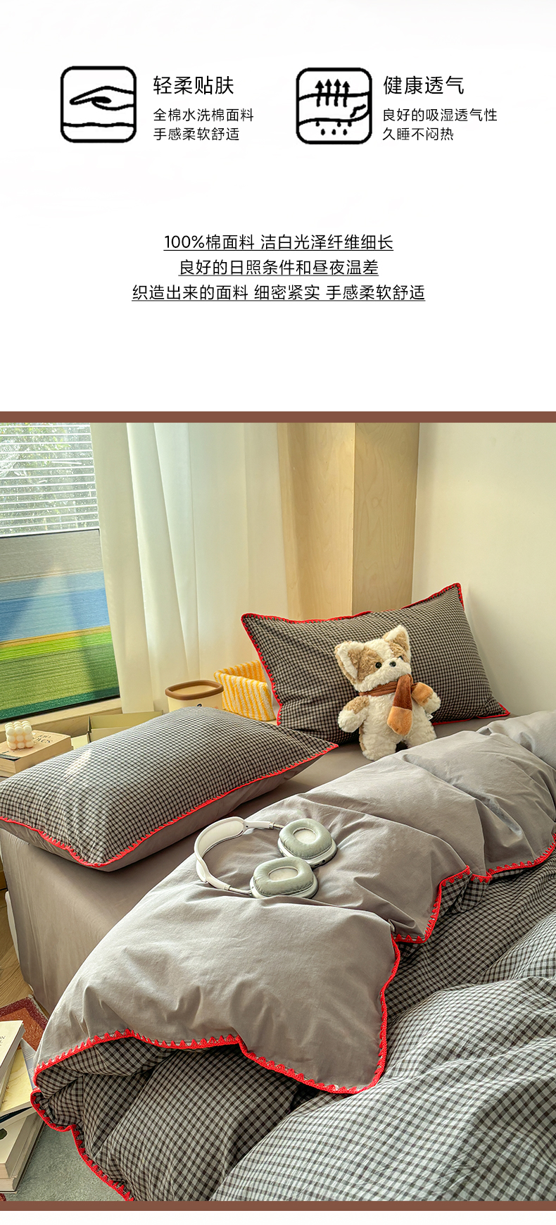 当前位置: 91家纺网 > 商品网购 > 床品套件 > 四件套 > 全棉普通四件套 > 雅居纺家纺 2026新款全棉色织水洗棉贝壳边四件套 贝壳边-灰小格