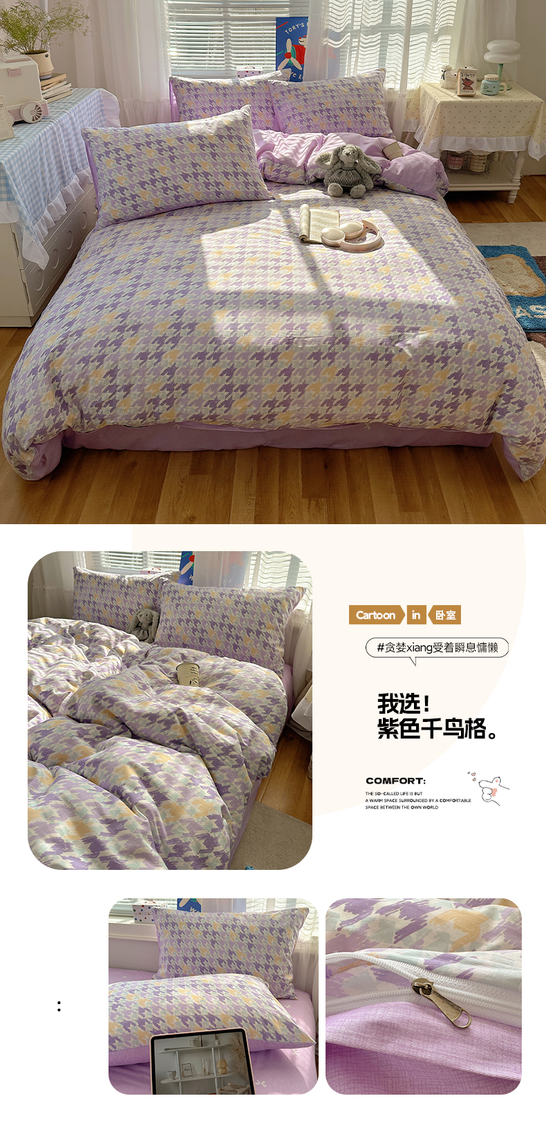 (总)雅居纺家纺 2026新款全棉小清新印花四件套,HI小狗,暴富,草莓蓝花,粉色熊熊,红红火火,简笔画小兔,蓝条花朵兔,绿色小兔,森林乐园,绅士快乐狗,贪睡猫猫,贪玩家族,贪玩小兔兔,祥瑞,小黑猫咪,幸福花朵,幸福兔-蓝,熊熊小汽车,紫色千鸟格