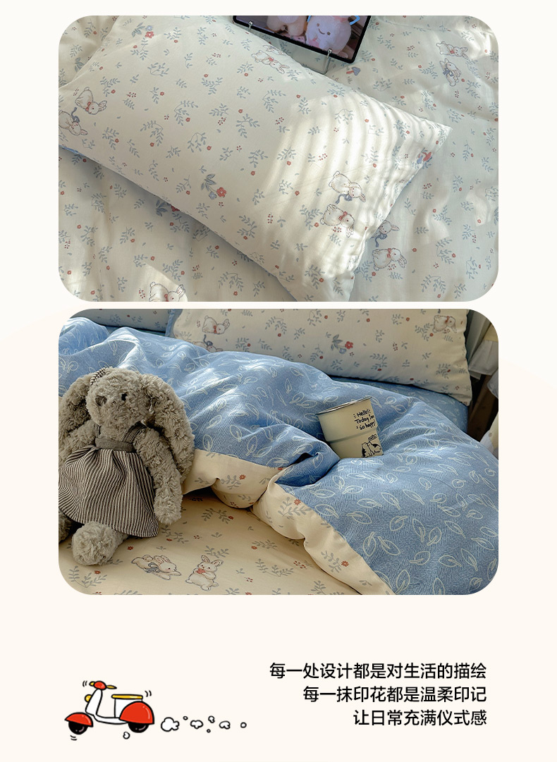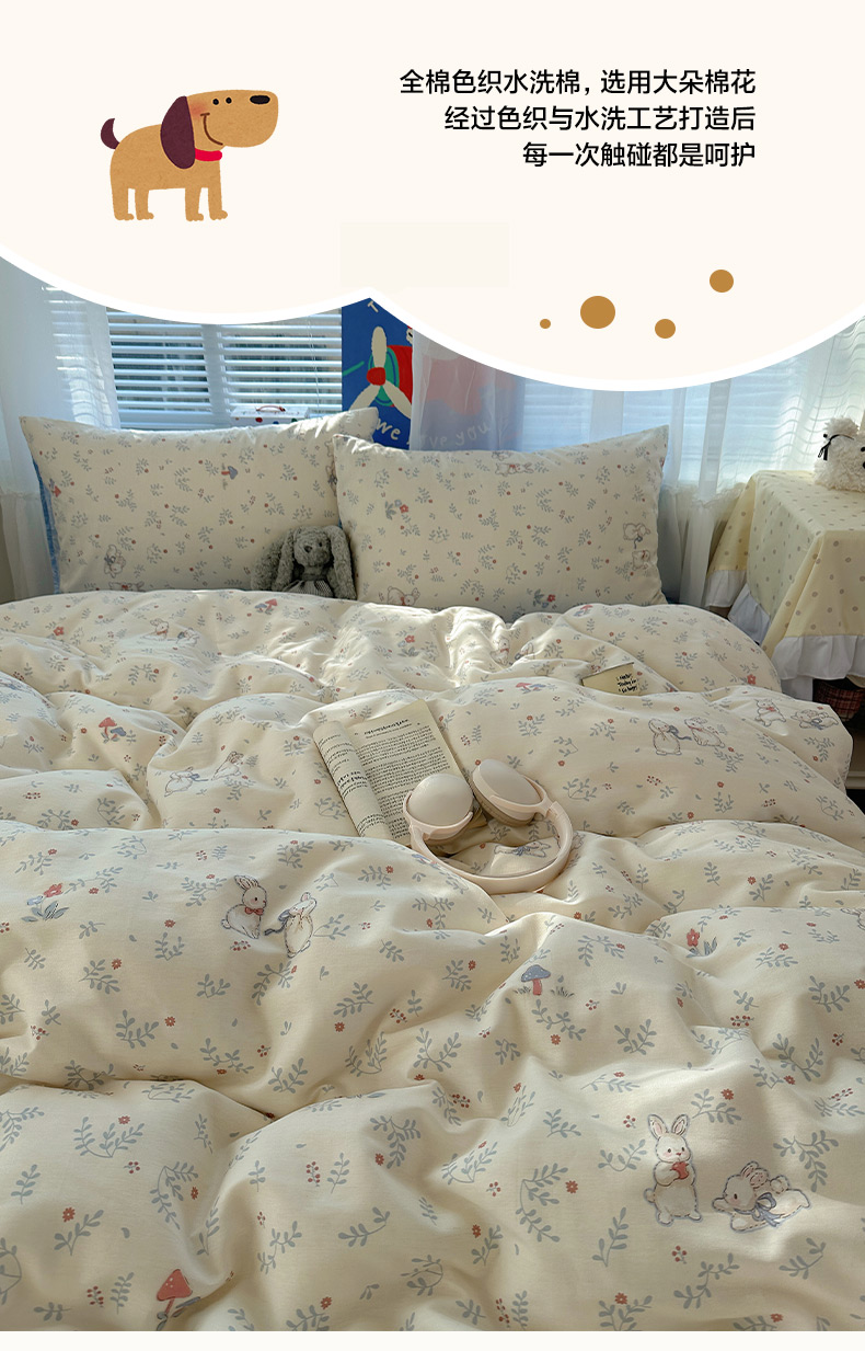 商品名称:雅居纺家纺 2026新款全棉小清新印花四件套 贪玩小兔兔