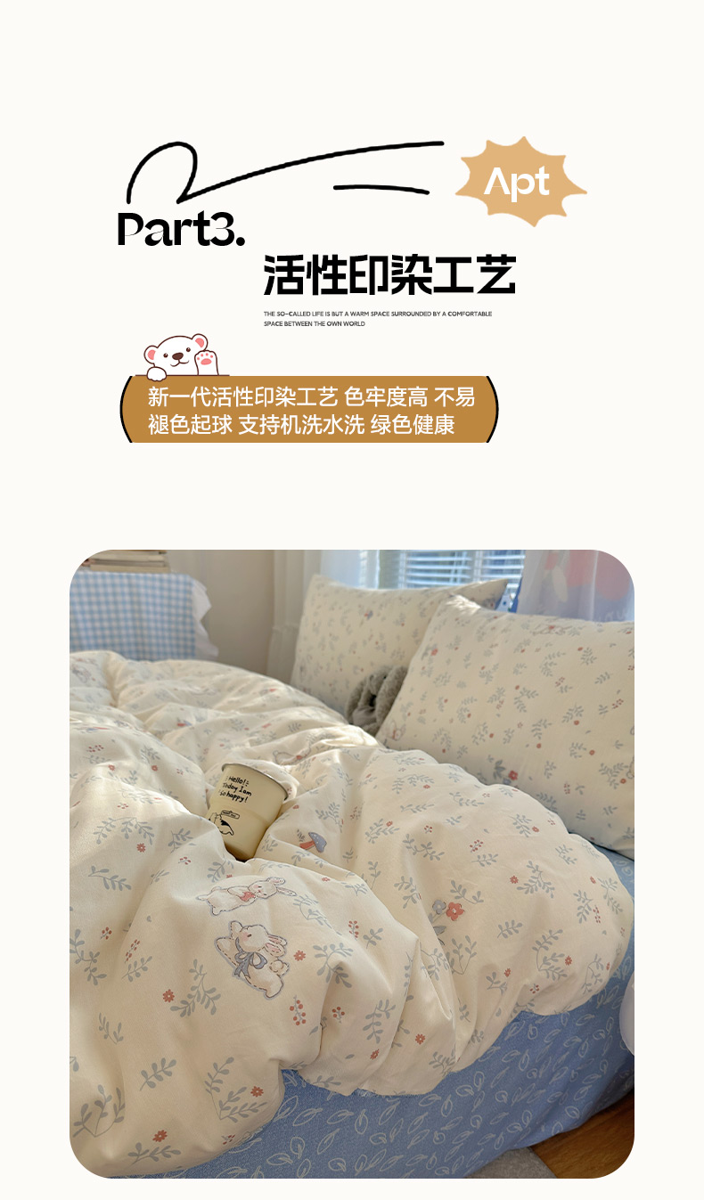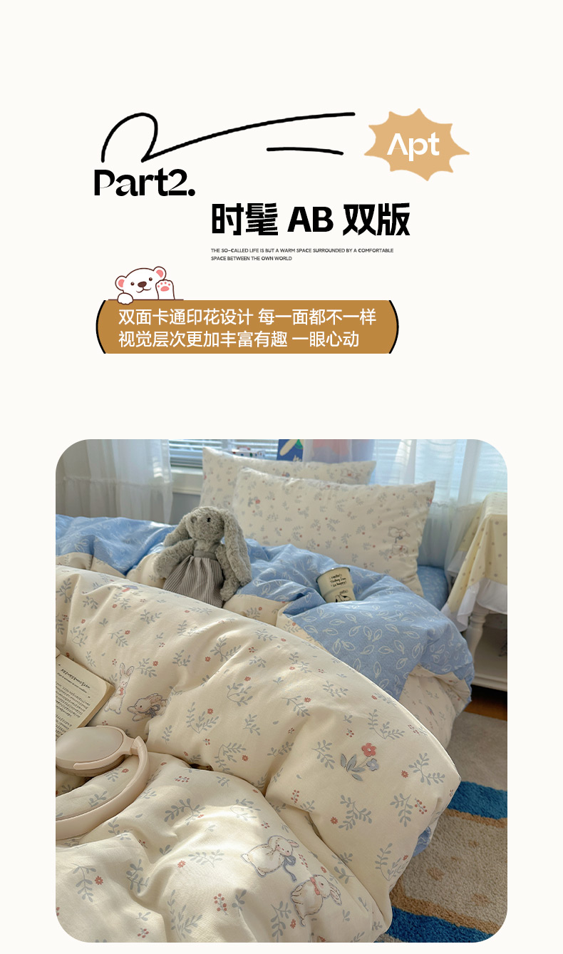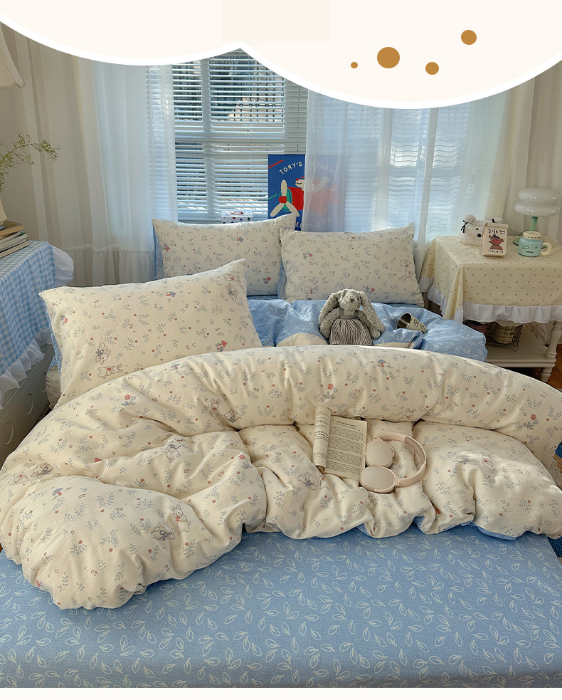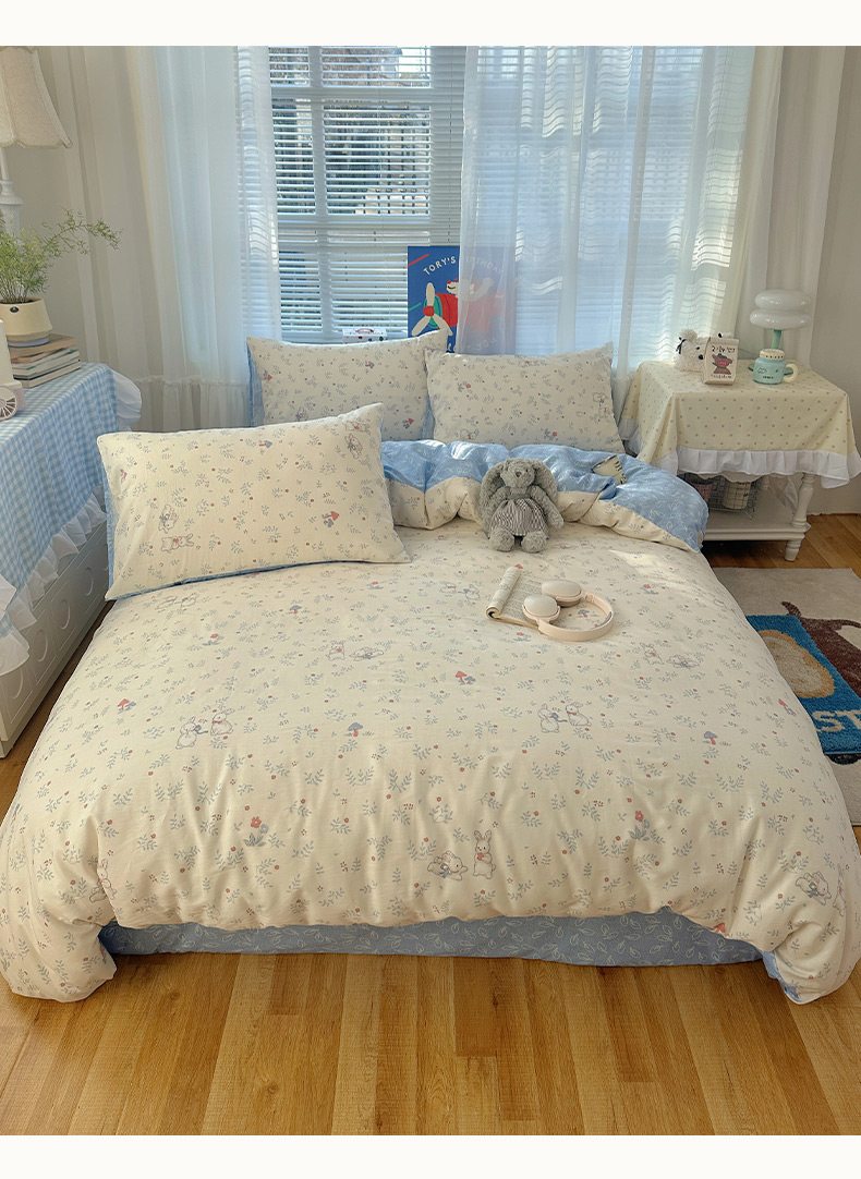 雅居纺家纺 2026新款全棉小清新印花四件套 贪玩小兔兔