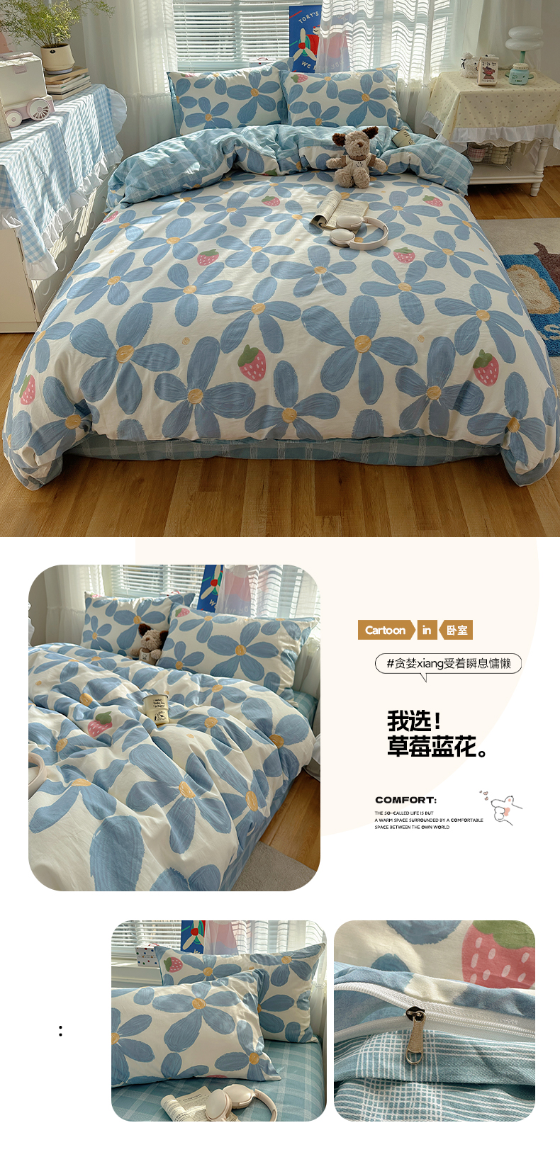 (总)雅居纺家纺 2026新款全棉小清新印花四件套,HI小狗,暴富,草莓蓝花,粉色熊熊,红红火火,简笔画小兔,蓝条花朵兔,绿色小兔,森林乐园,绅士快乐狗,贪睡猫猫,贪玩家族,贪玩小兔兔,祥瑞,小黑猫咪,幸福花朵,幸福兔-蓝,熊熊小汽车,紫色千鸟格