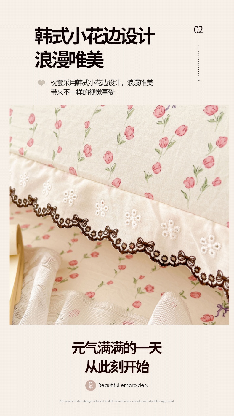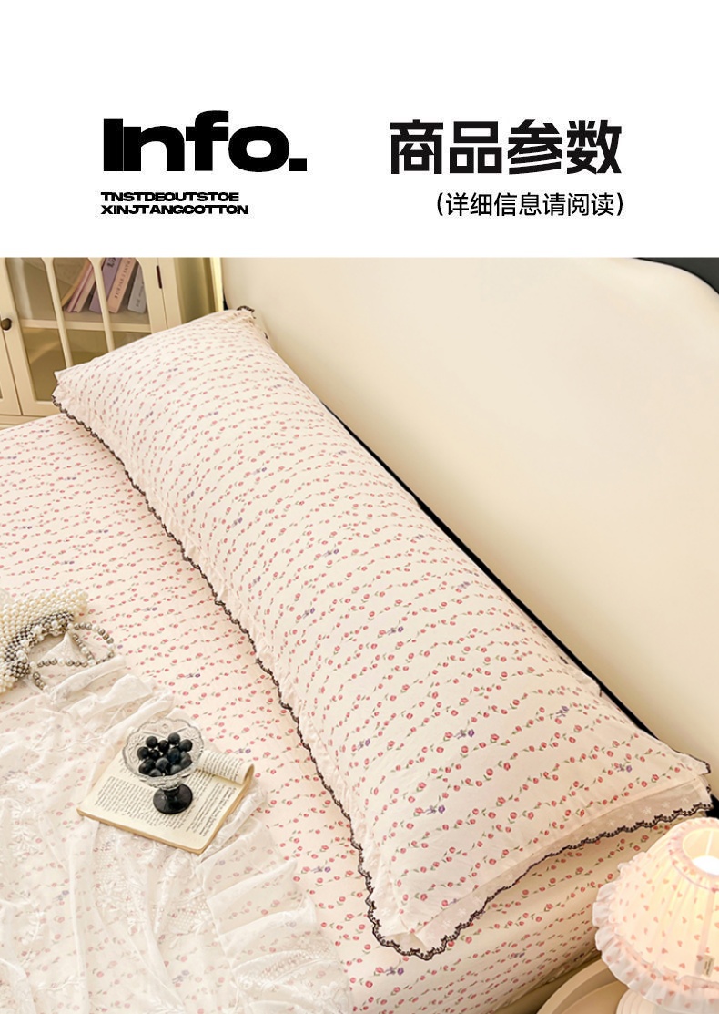 • 91家纺网 家纺一手货源 找家纺 圣比熊 2026新款A类云朵棉蕾丝花边枕套宿舍情侣双人加长枕芯内胆套 花漾甜心(单层蕾丝花边)